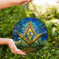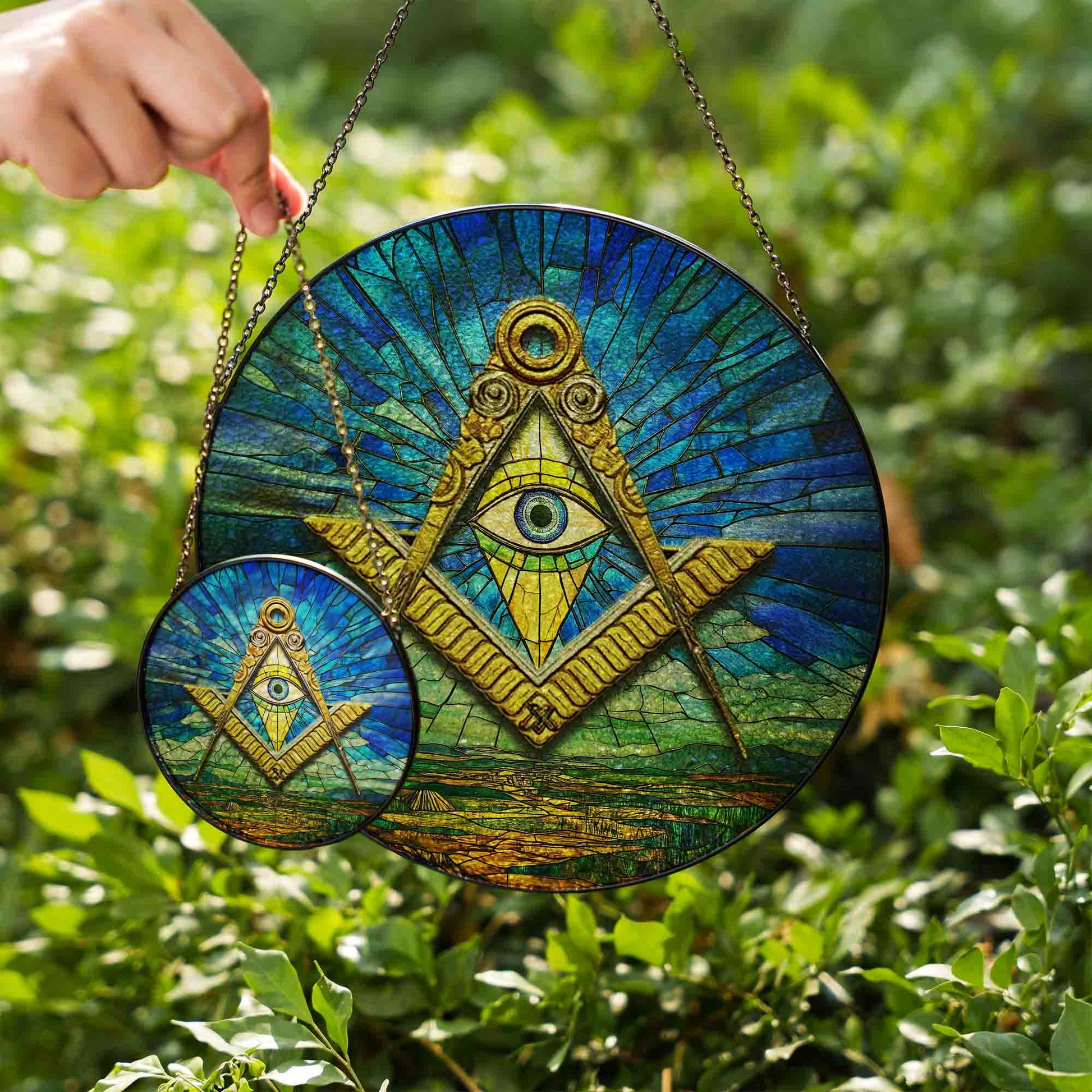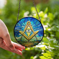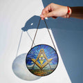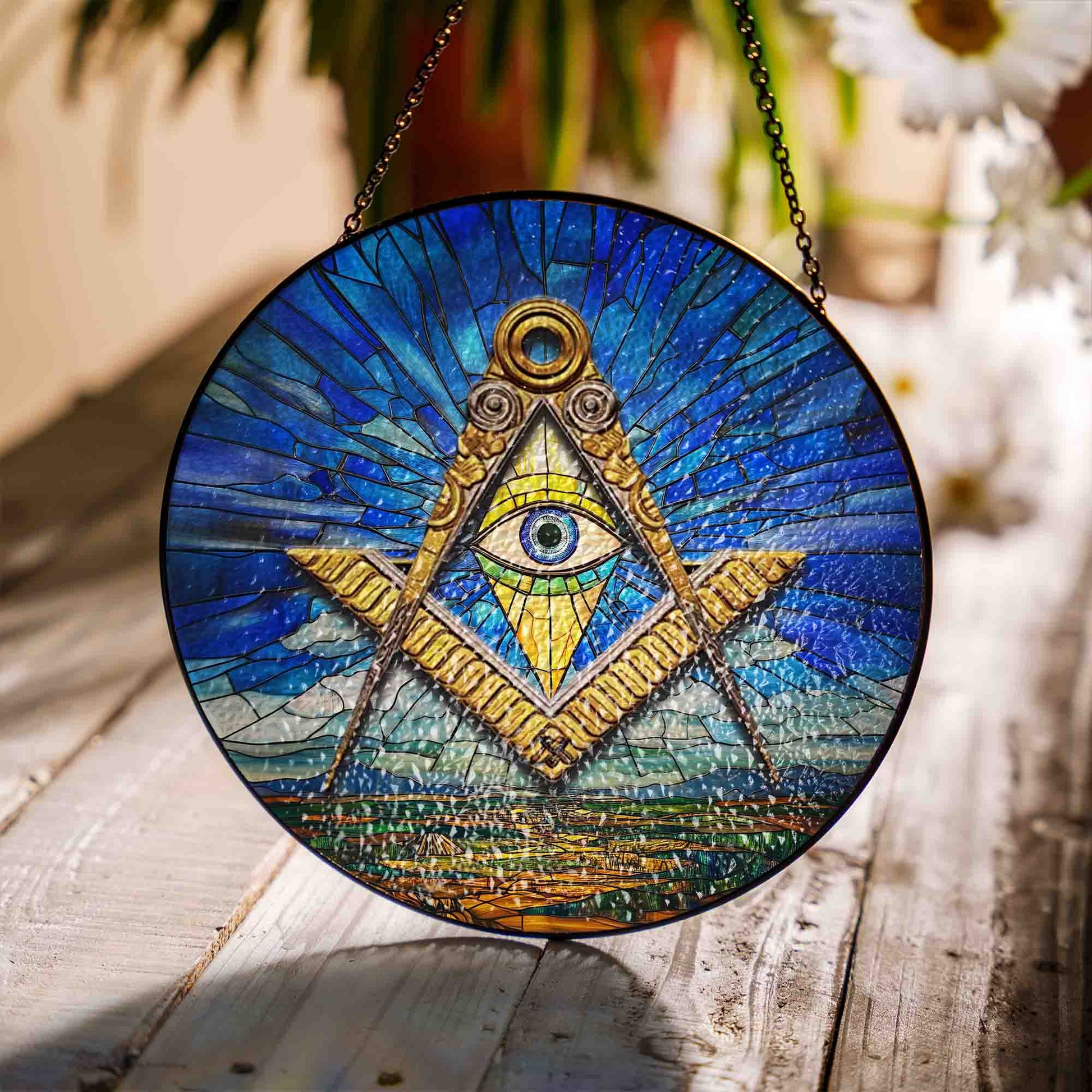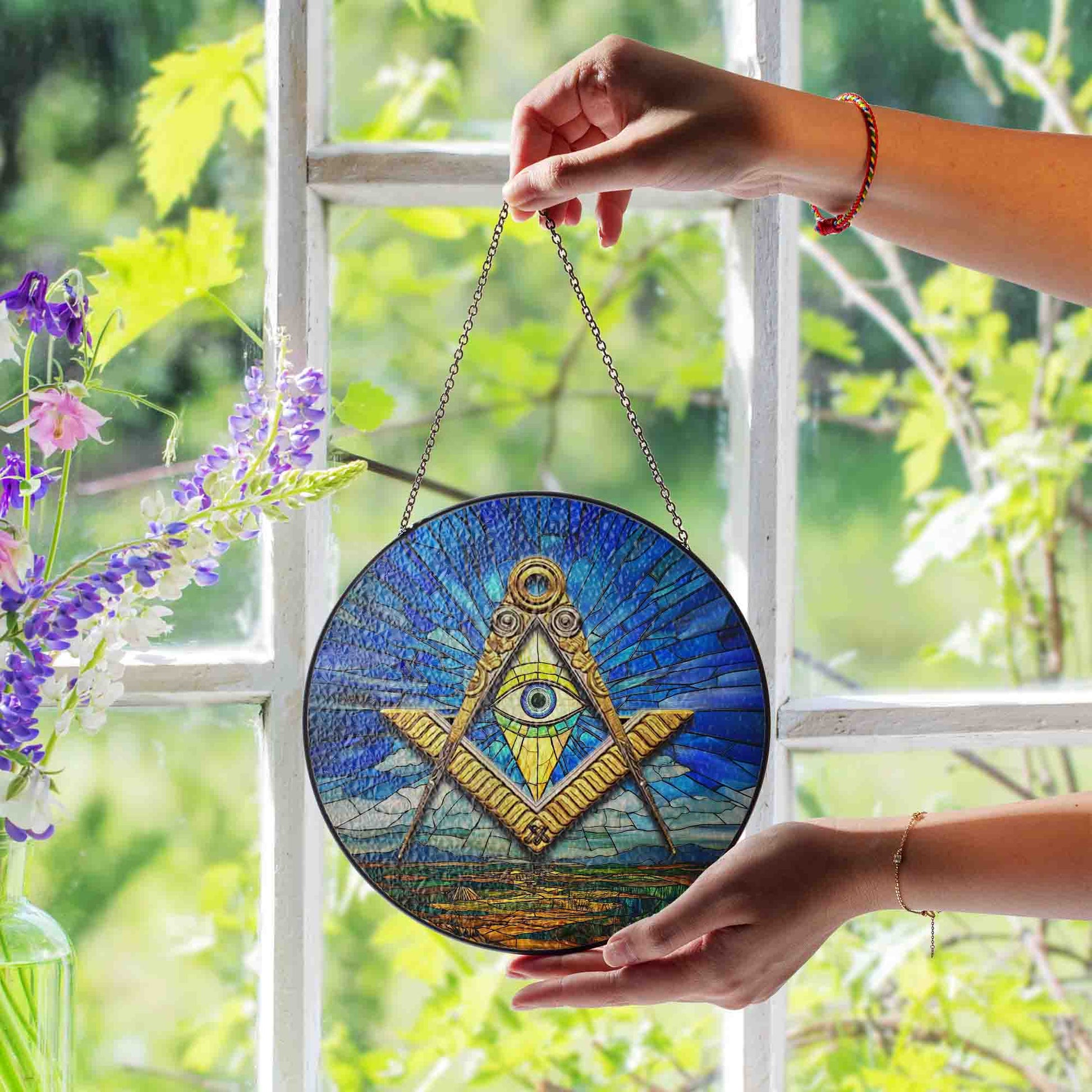 All Seeing Eye Earth Sky Blue Brown Masonic Glass Suncatcher