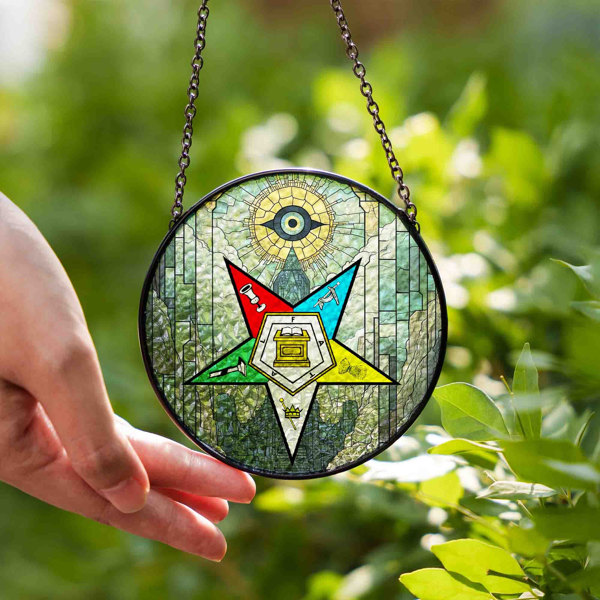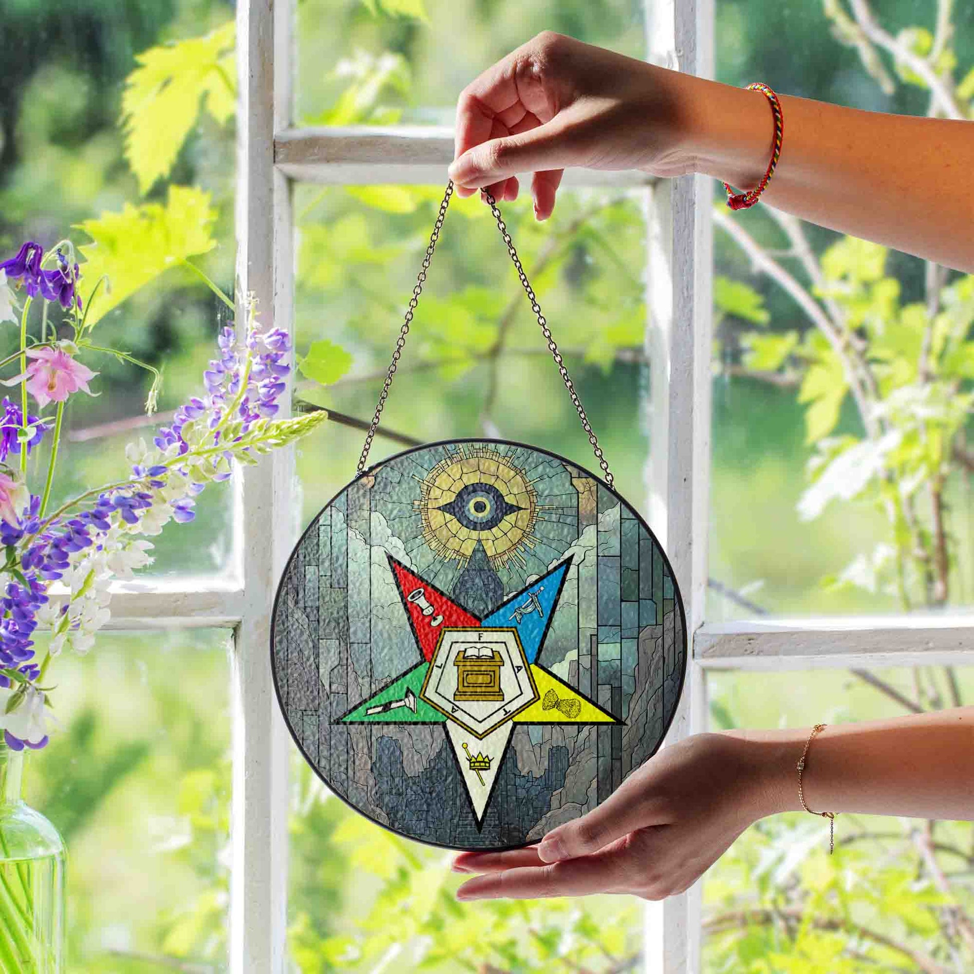 All Seeing Eye Temple OES Symbol Colorful Stained Glass Suncatcher