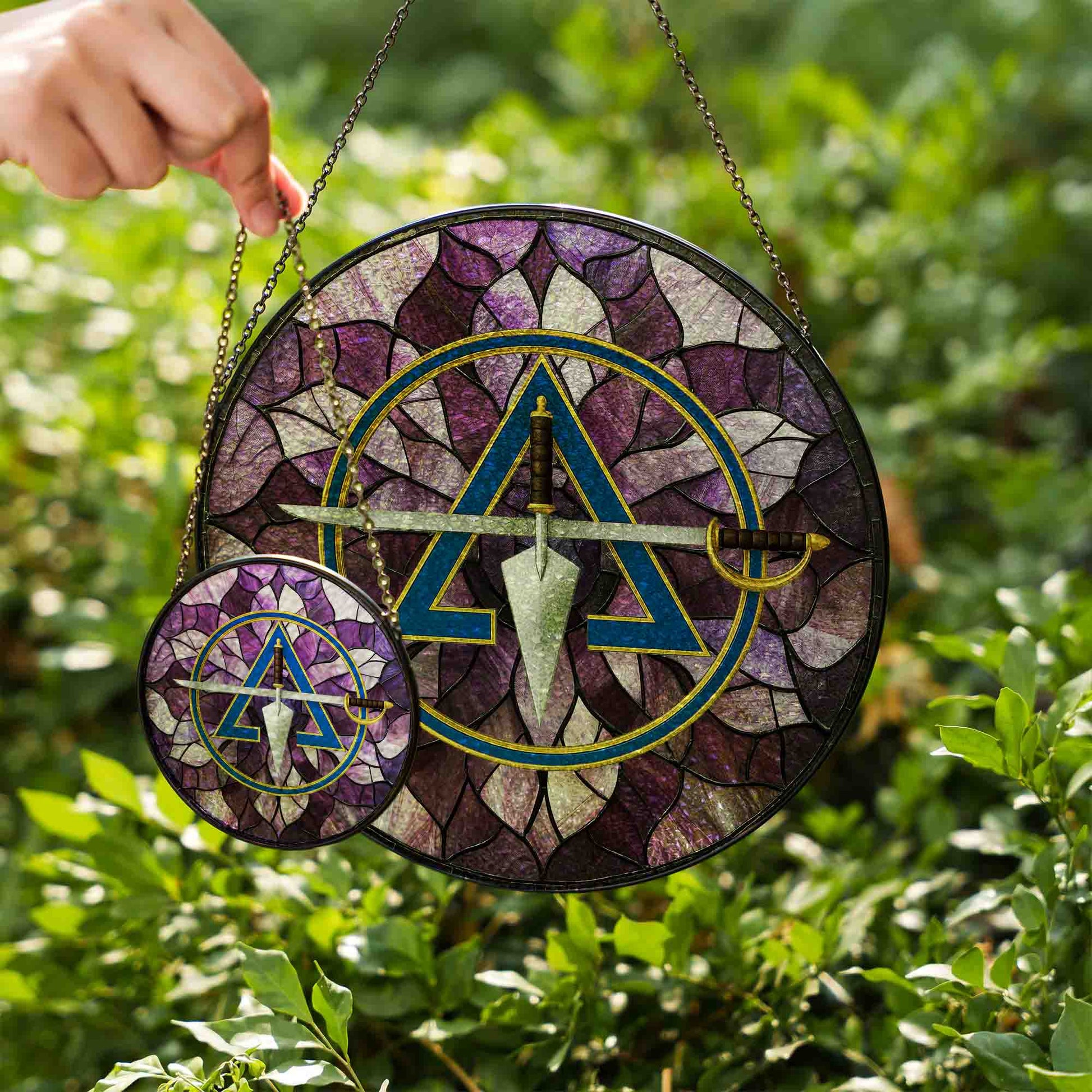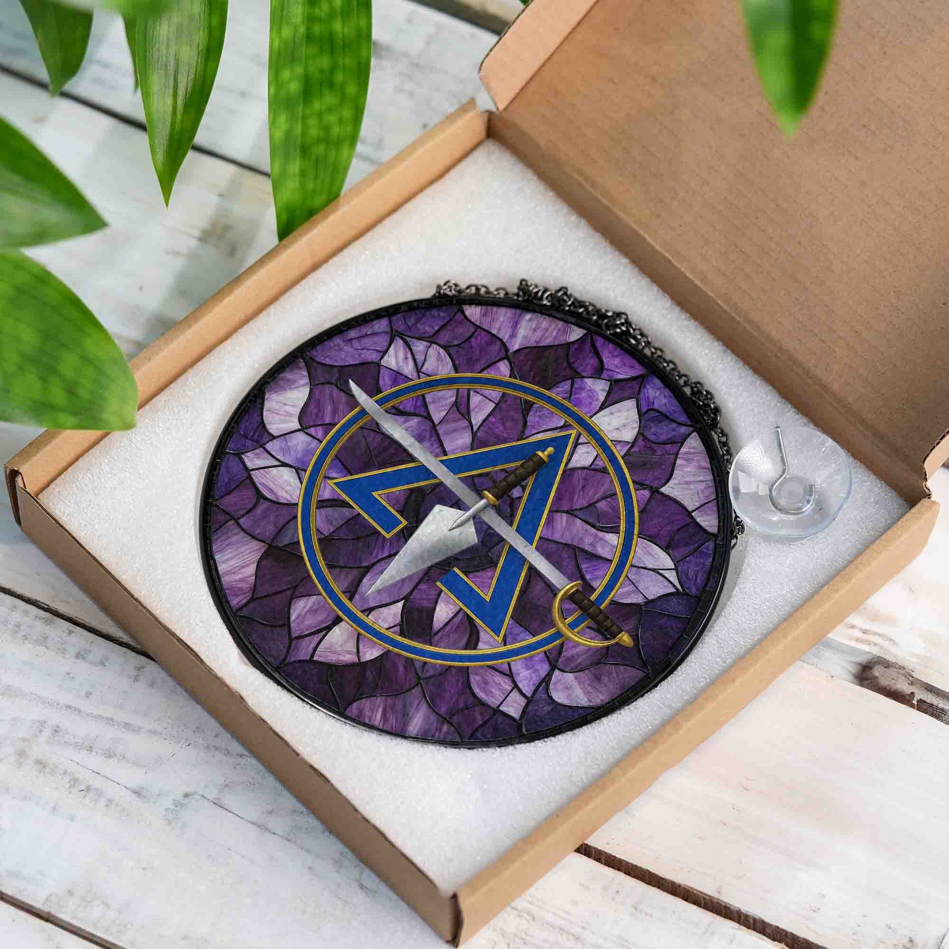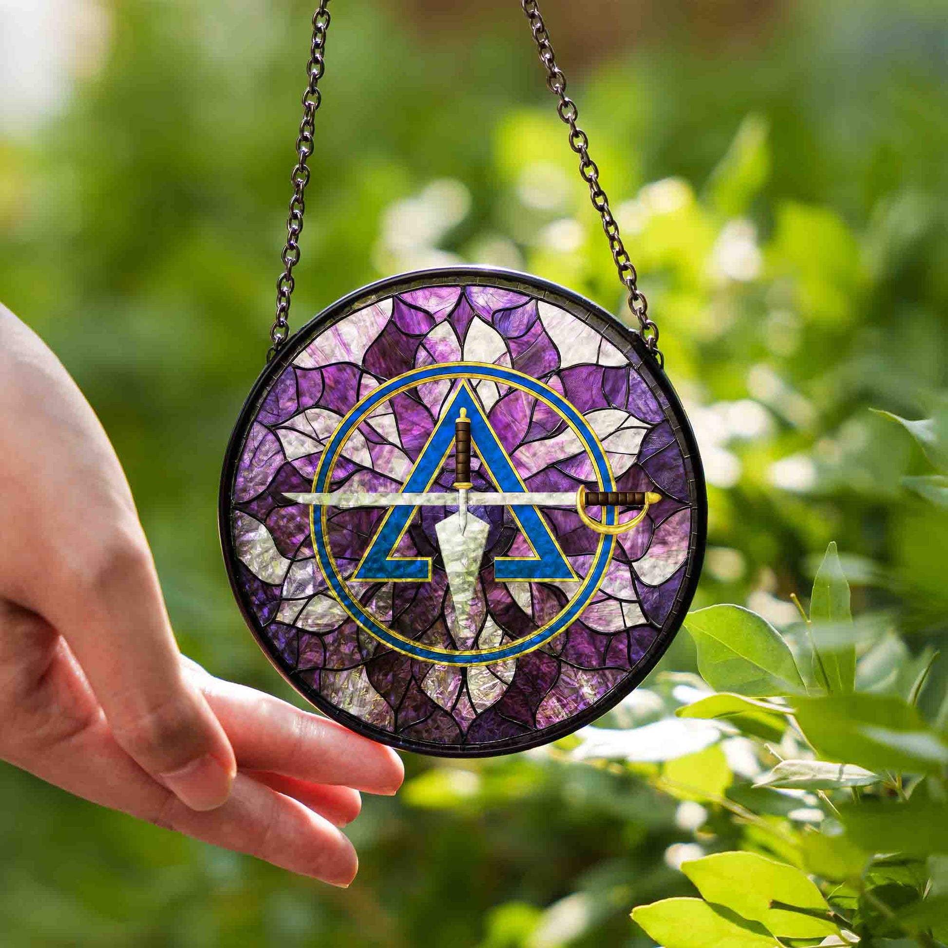 Cryptic Council Symbol Purple Floral Stained Glass Masonic Suncatcher