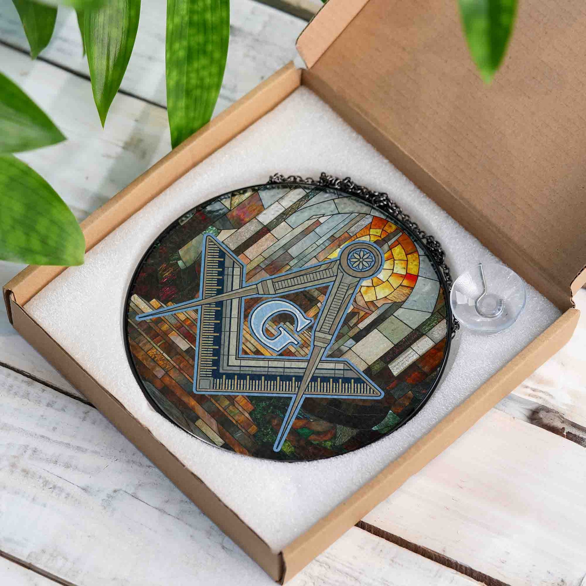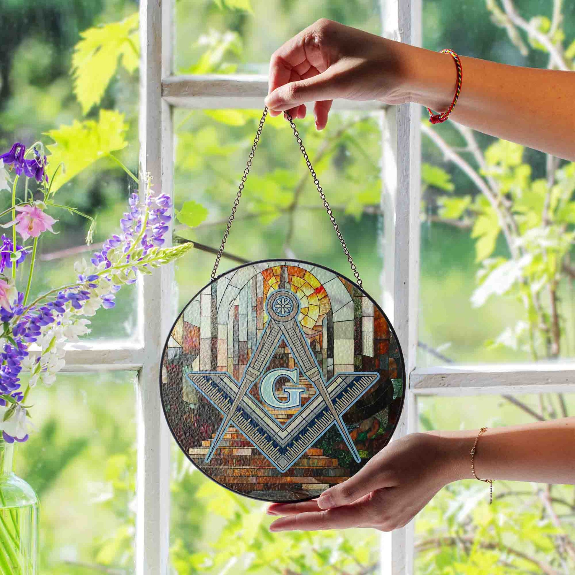 Freemasonry Blue Lodge Upward Stairways Colorful Masonic Glass Suncatcher