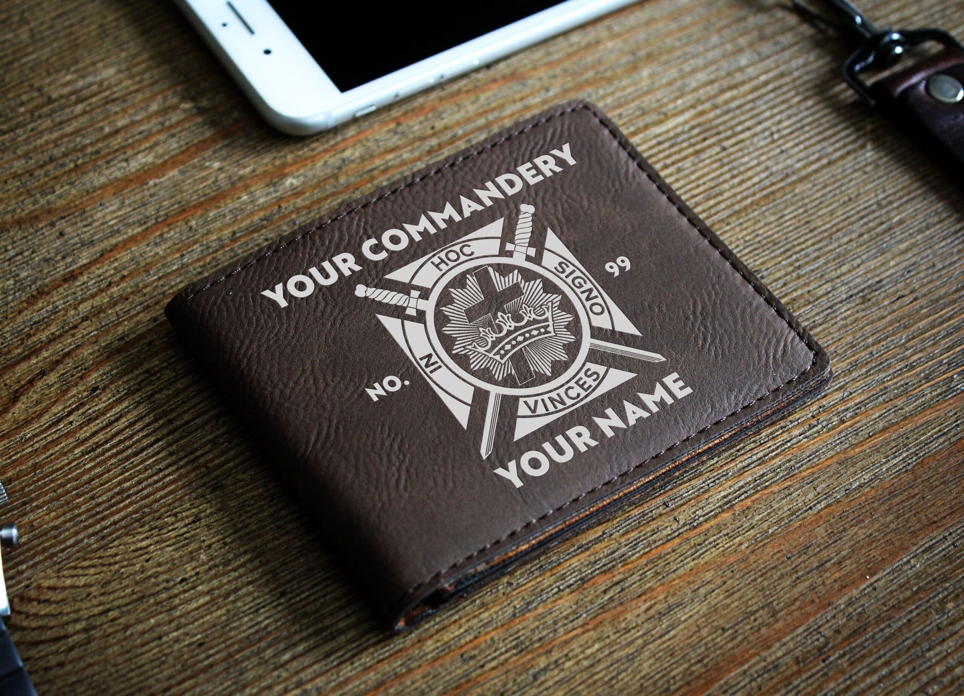 Customized Knights Templar Symbol Mason Commander Gift Leatherette Bifold Wallet