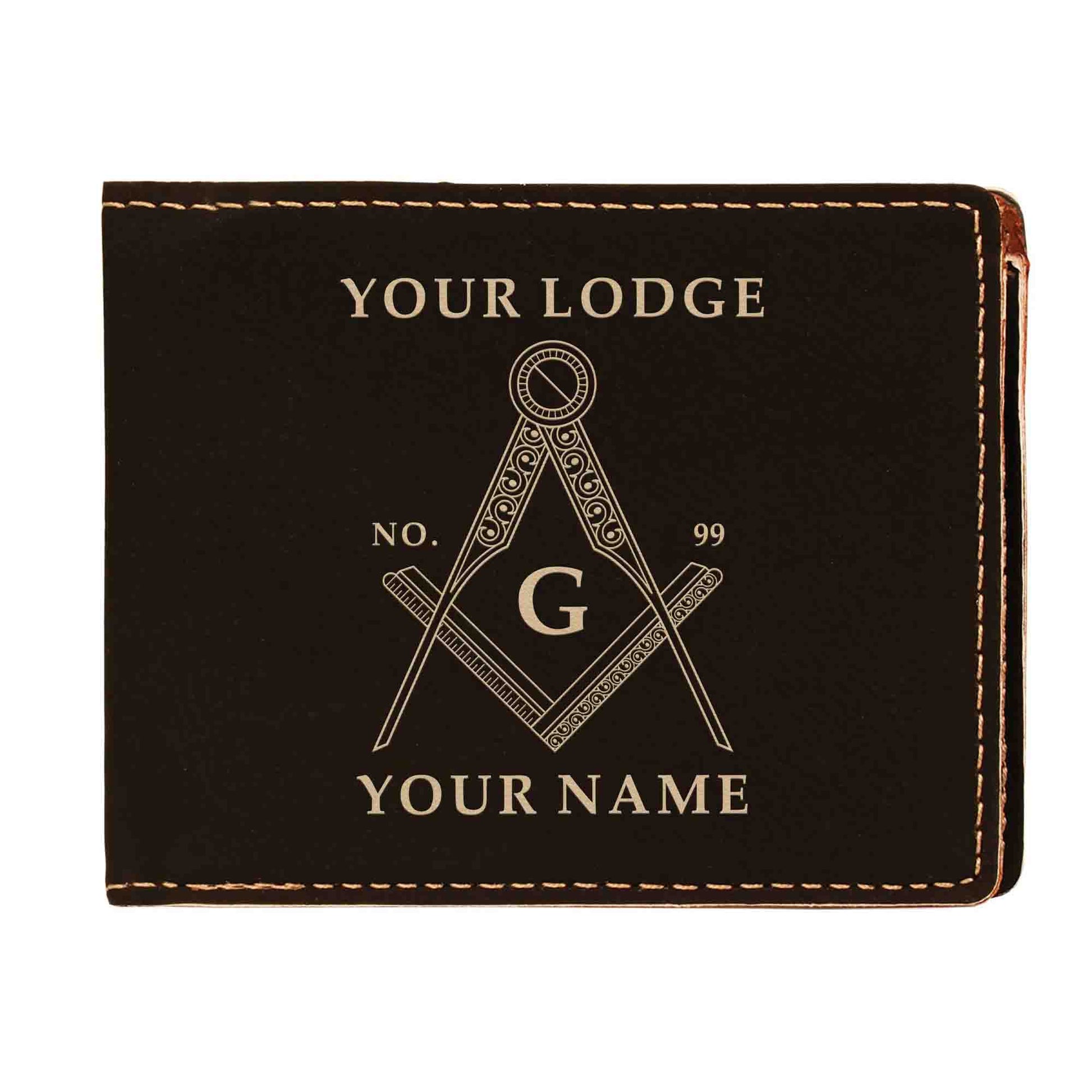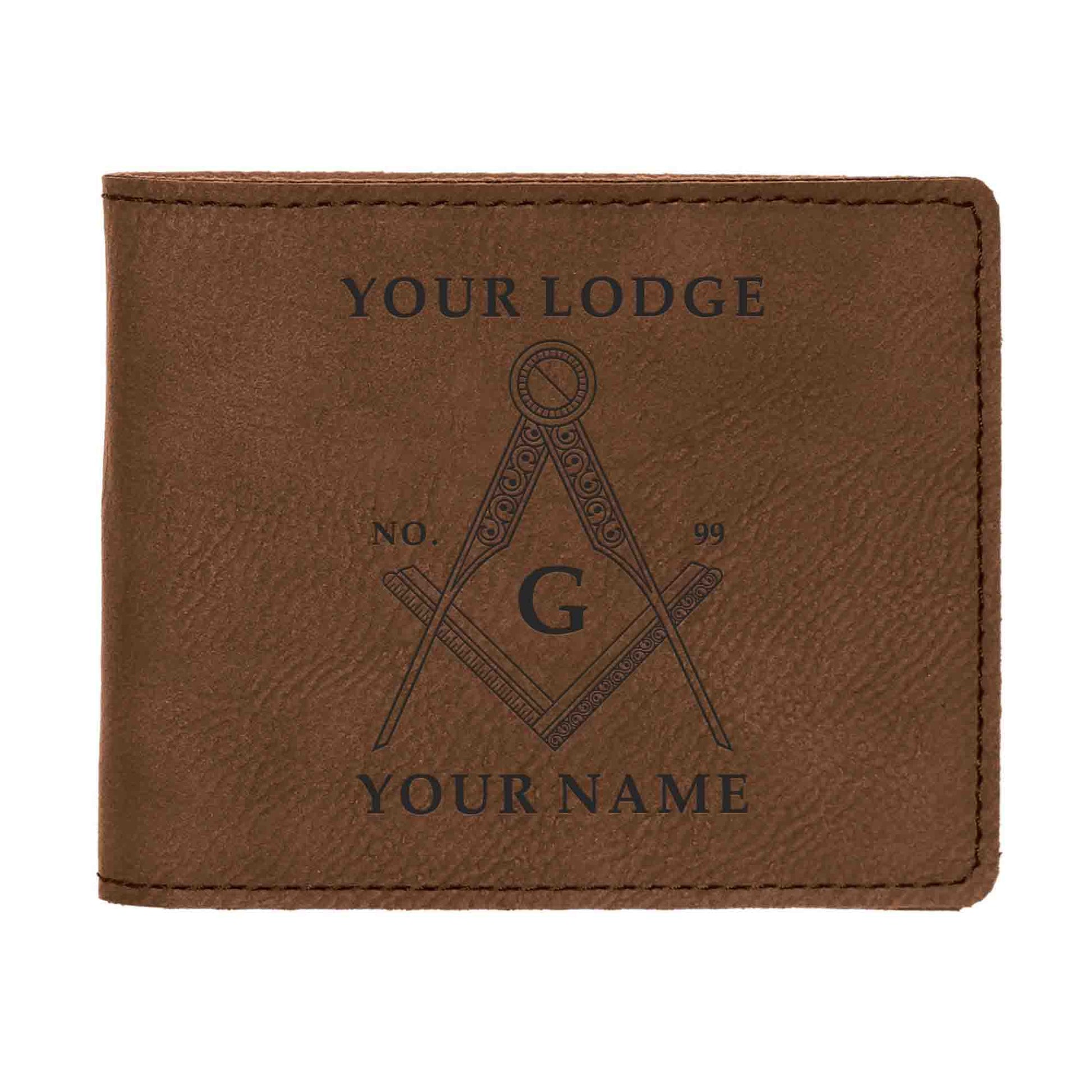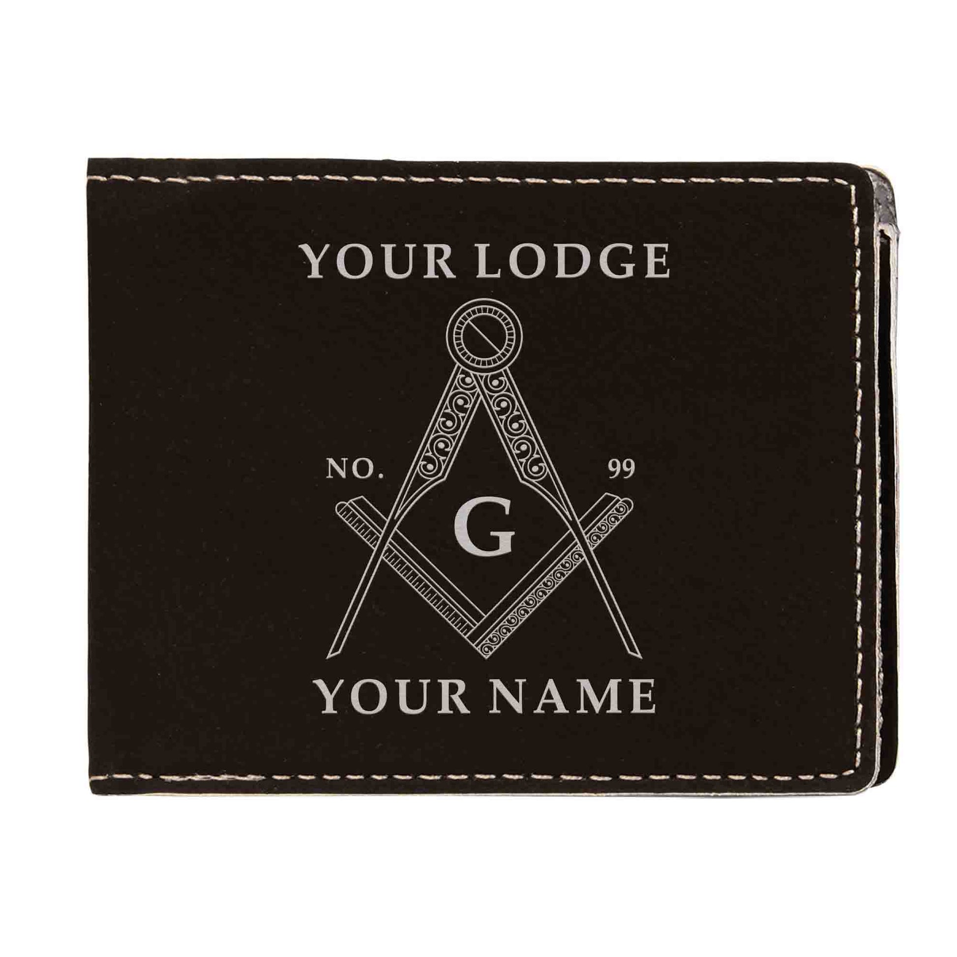 Customized Masonic Curve Pattern Leatherette Bifold Wallet