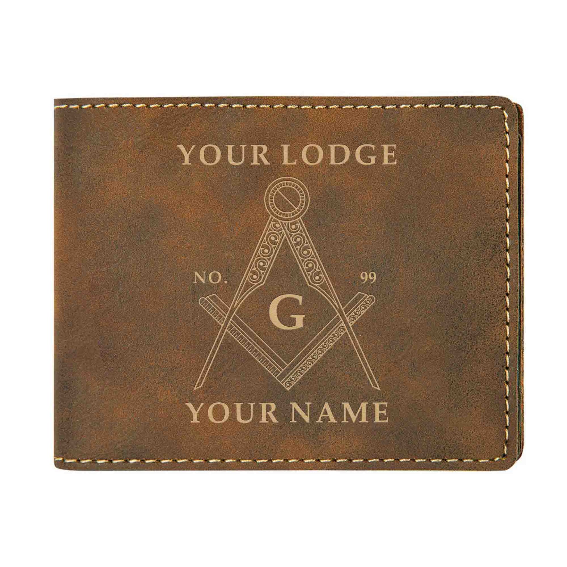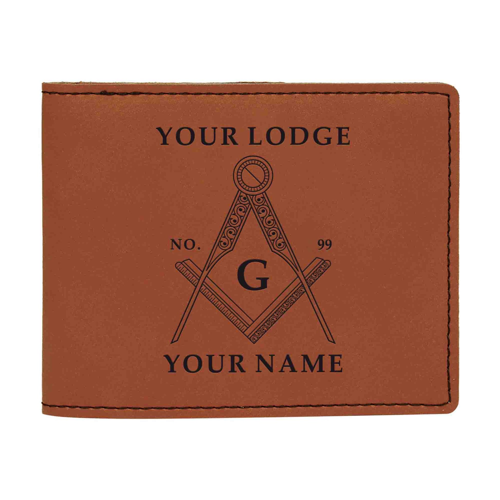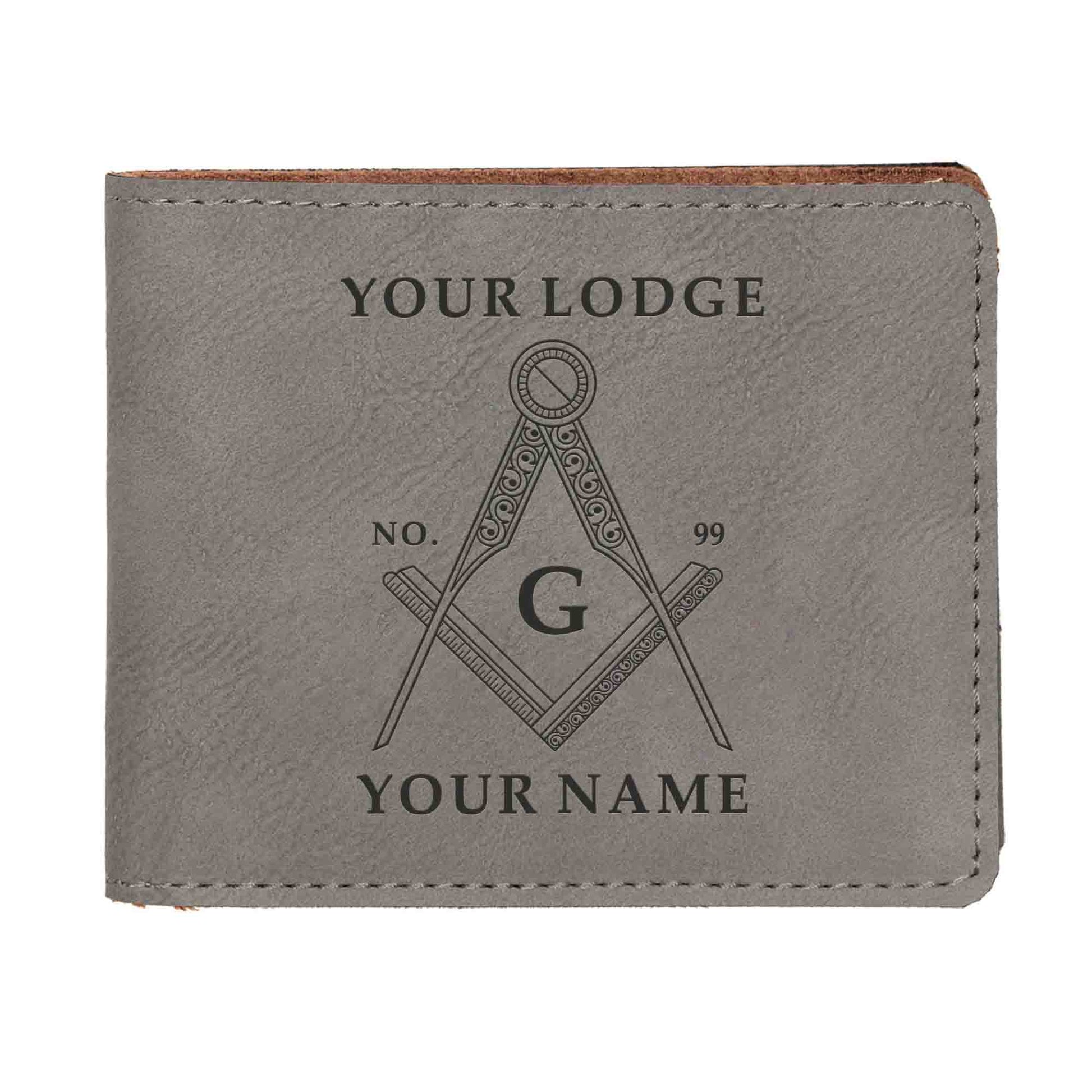 Customized Masonic Curve Pattern Leatherette Bifold Wallet