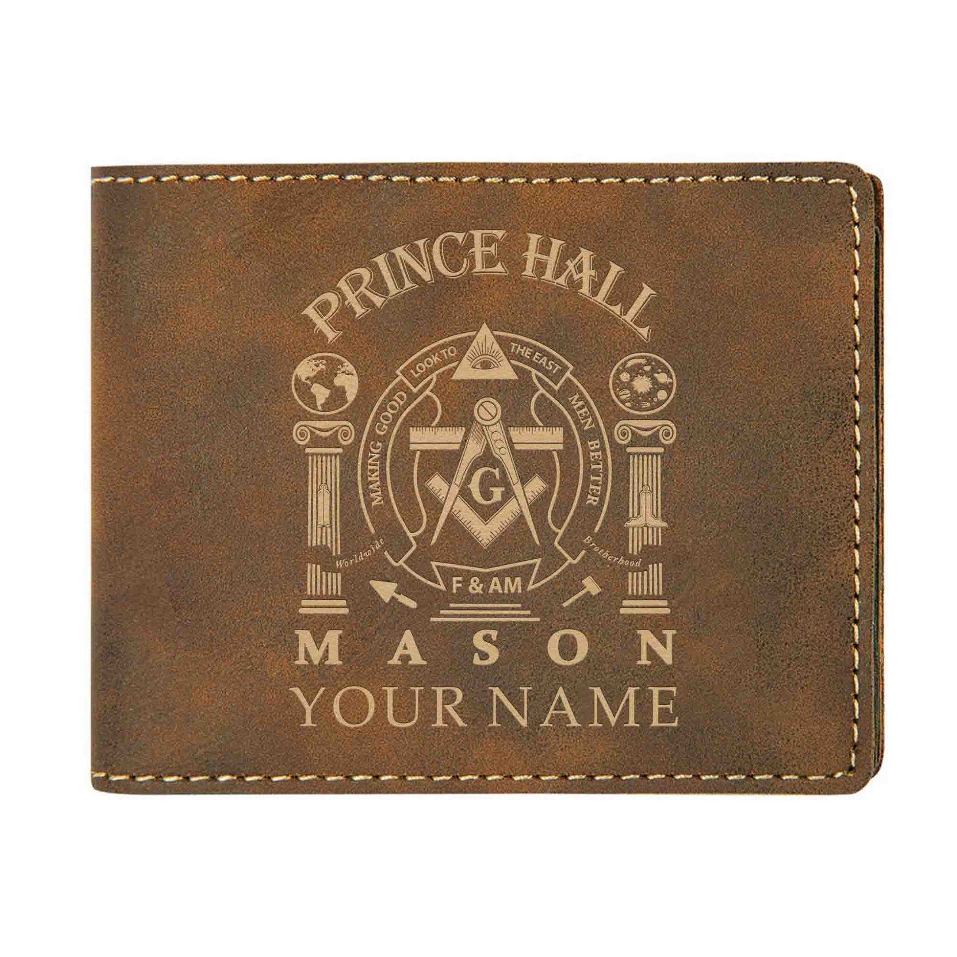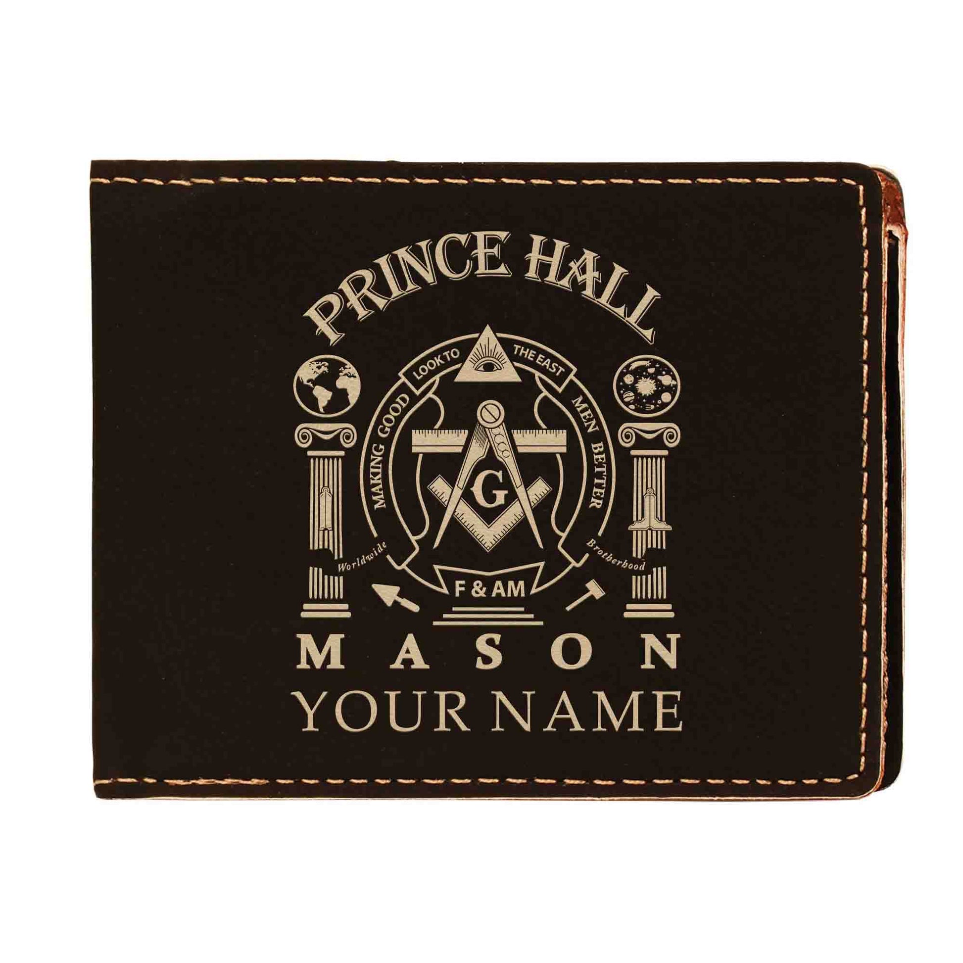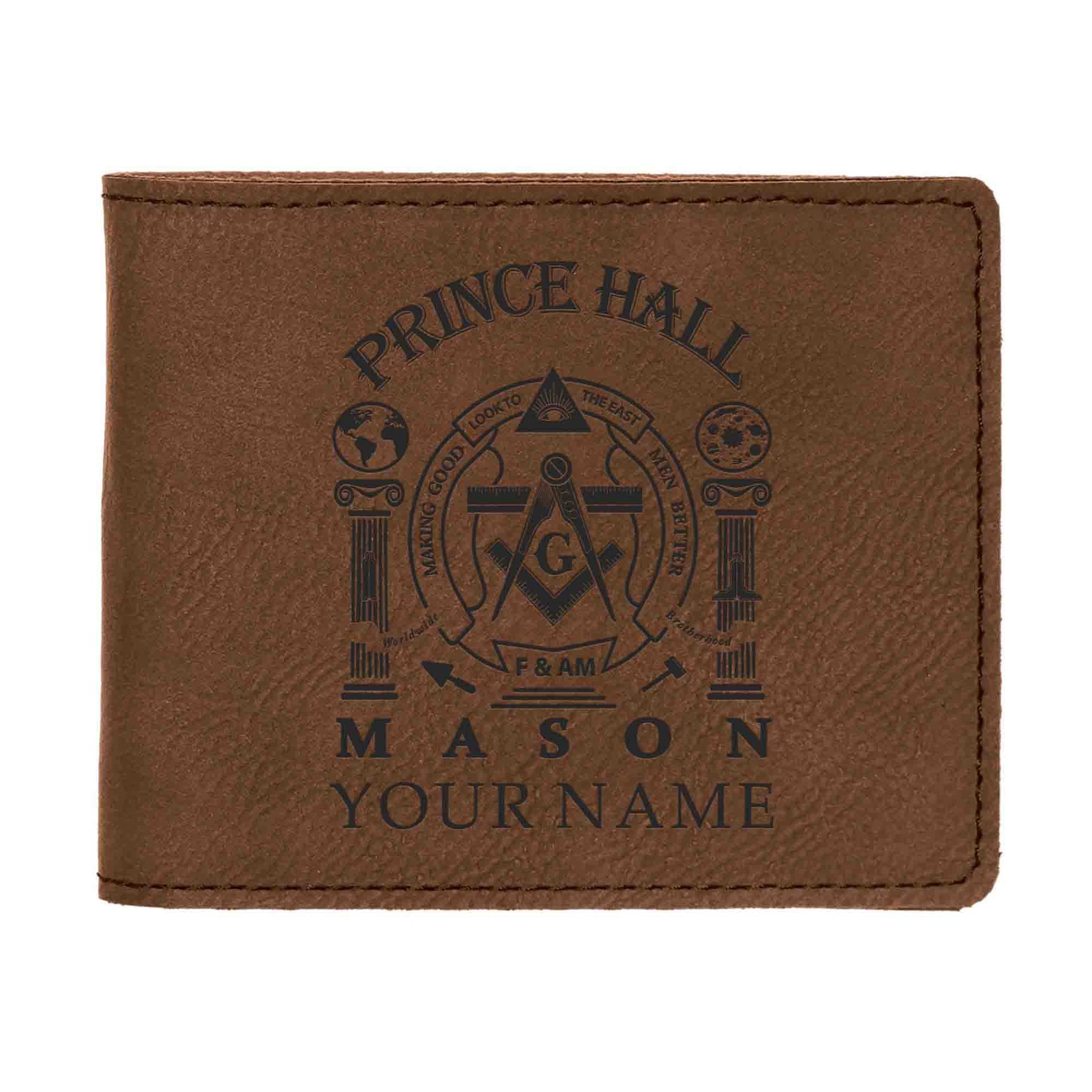 Customized Masonic Symbol Prince Hall Leatherette Bifold Wallet