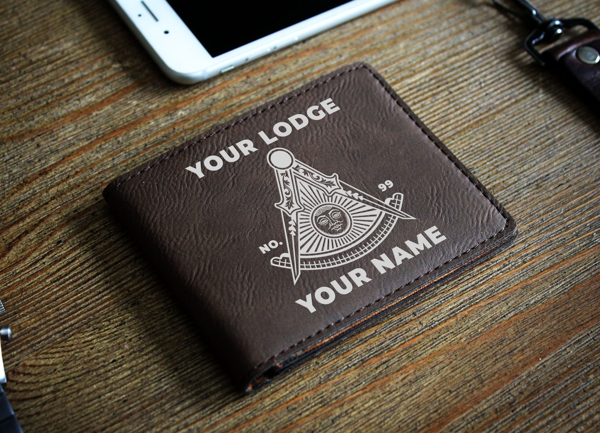 Customized Past Master Symbol Masonic Radiant Pattern Leatherette Bifold Wallet
