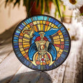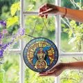 Daughters Of Sphinx Mosaic Pattern, Blue Gold Stained Glass Suncatcher