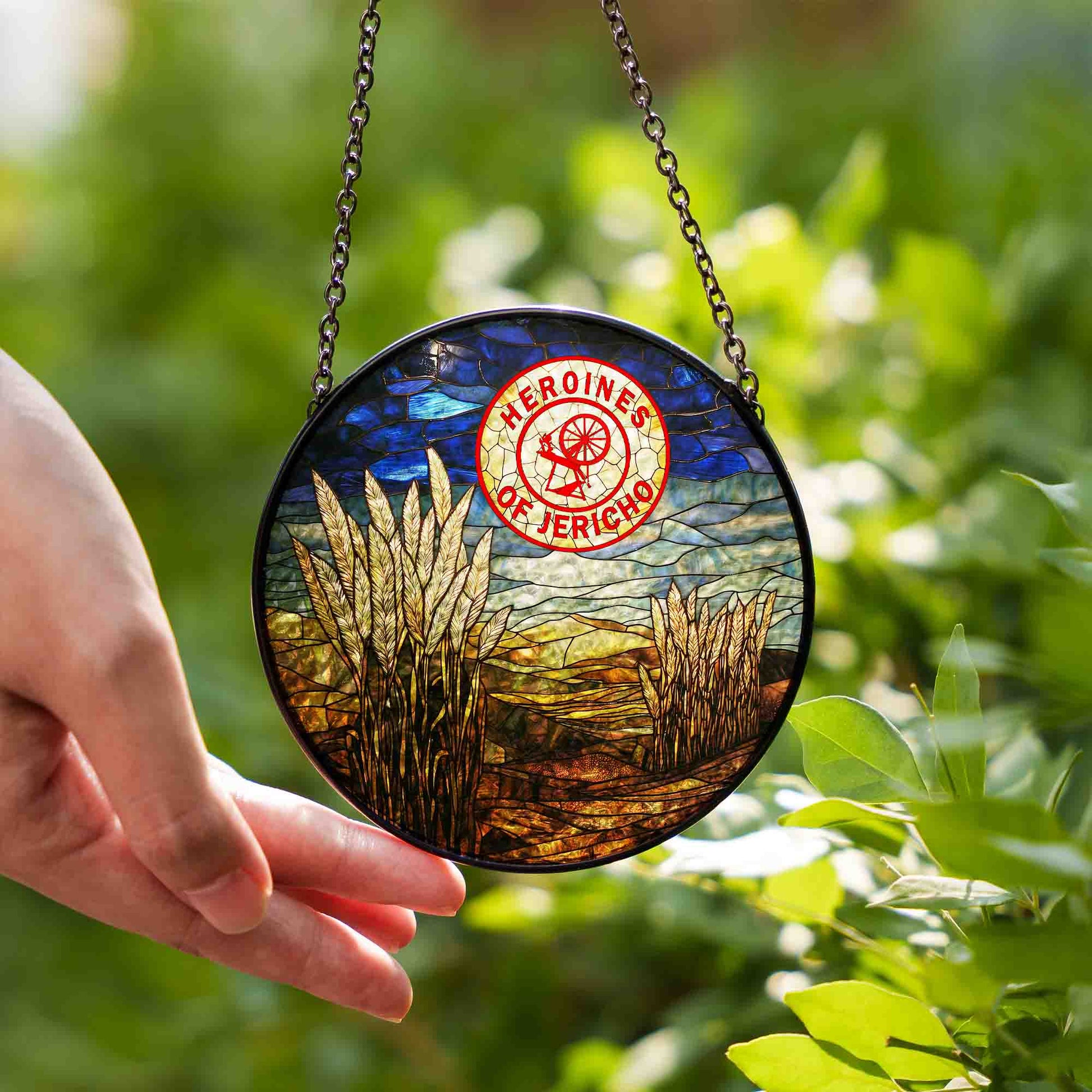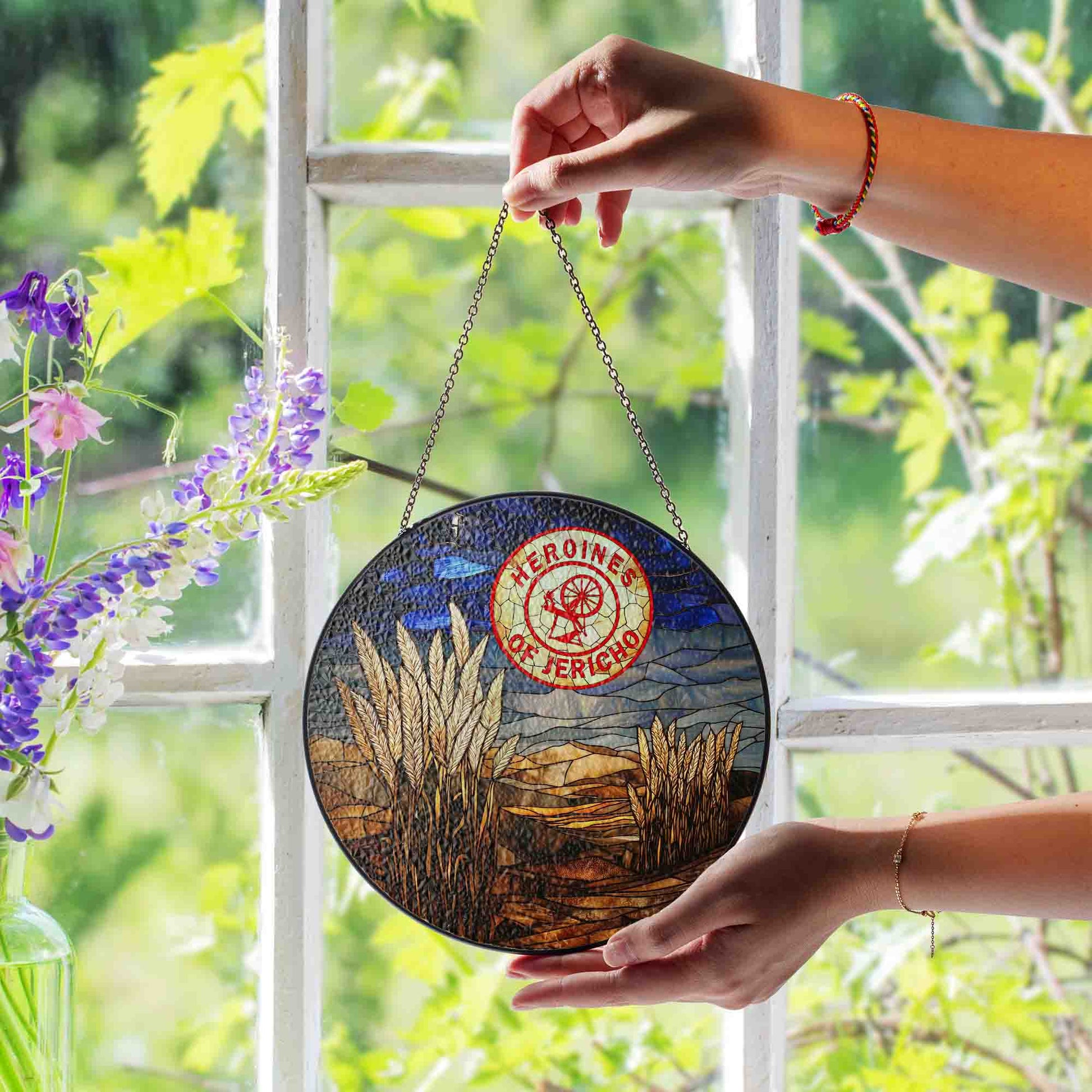 Flax Field Moon Night Jericho Masonic Glass Suncatcher