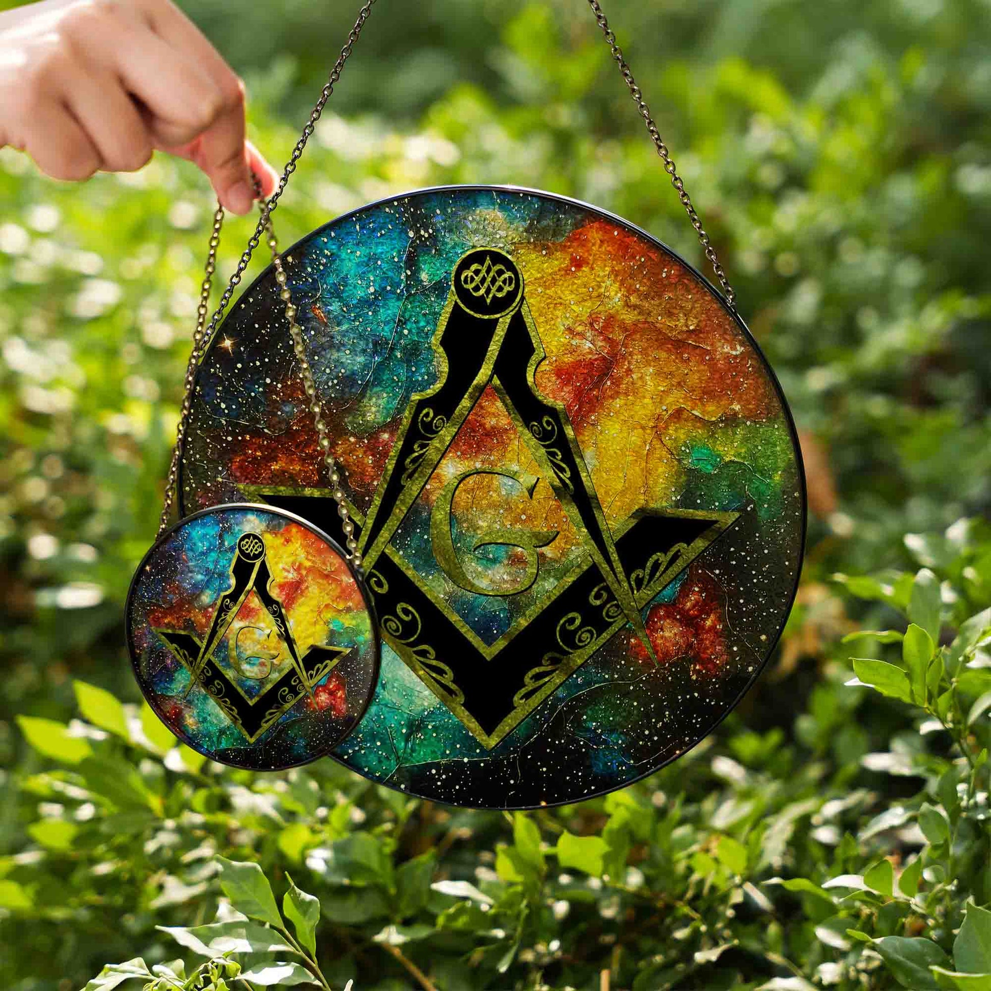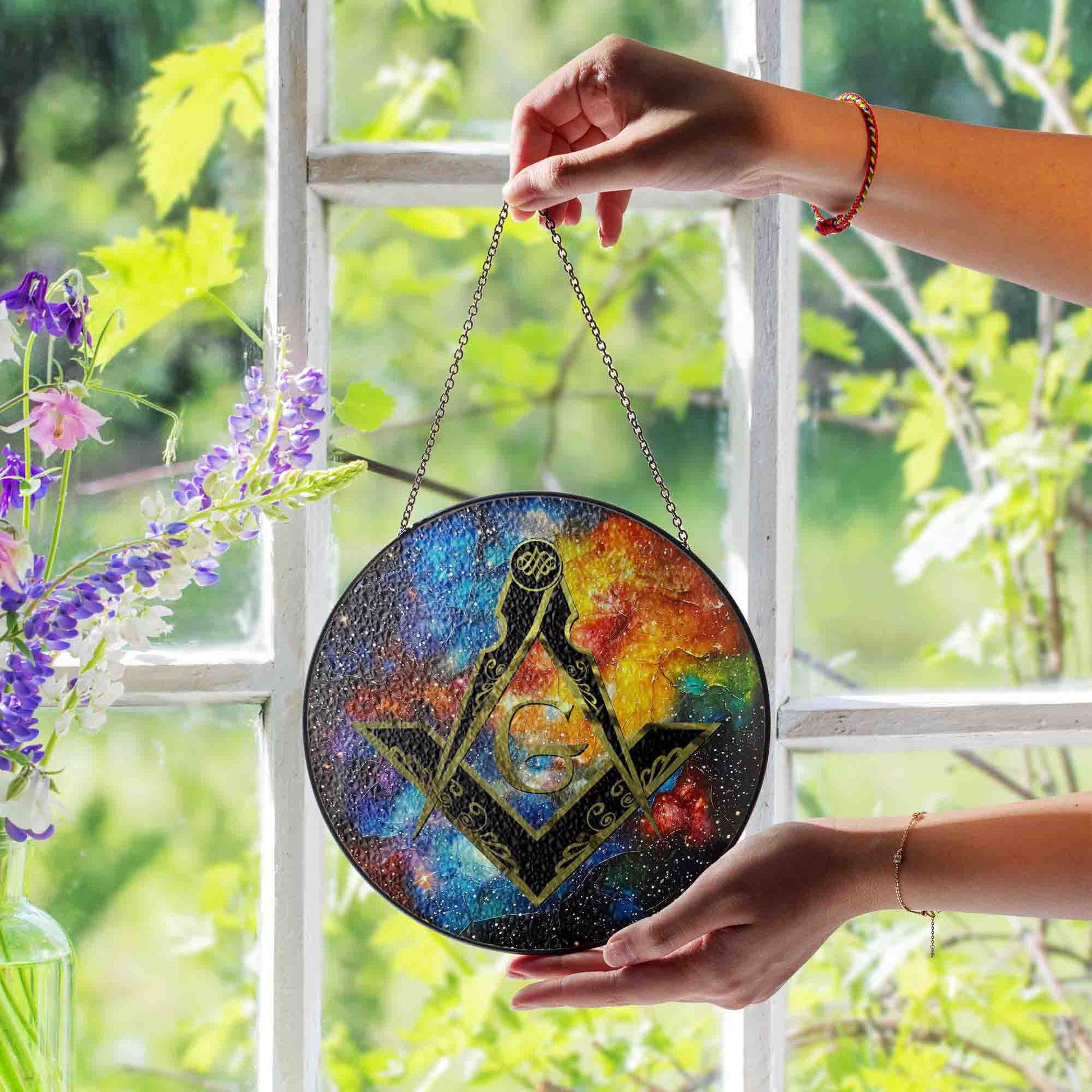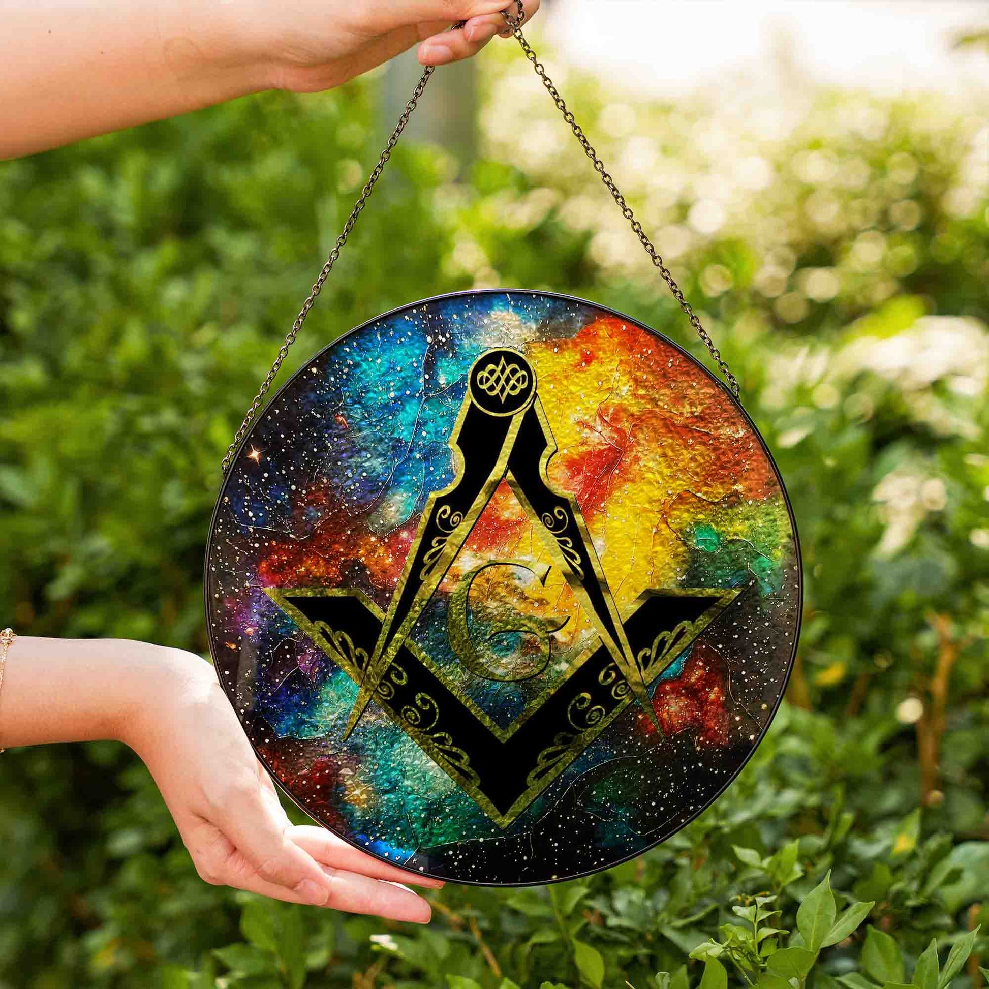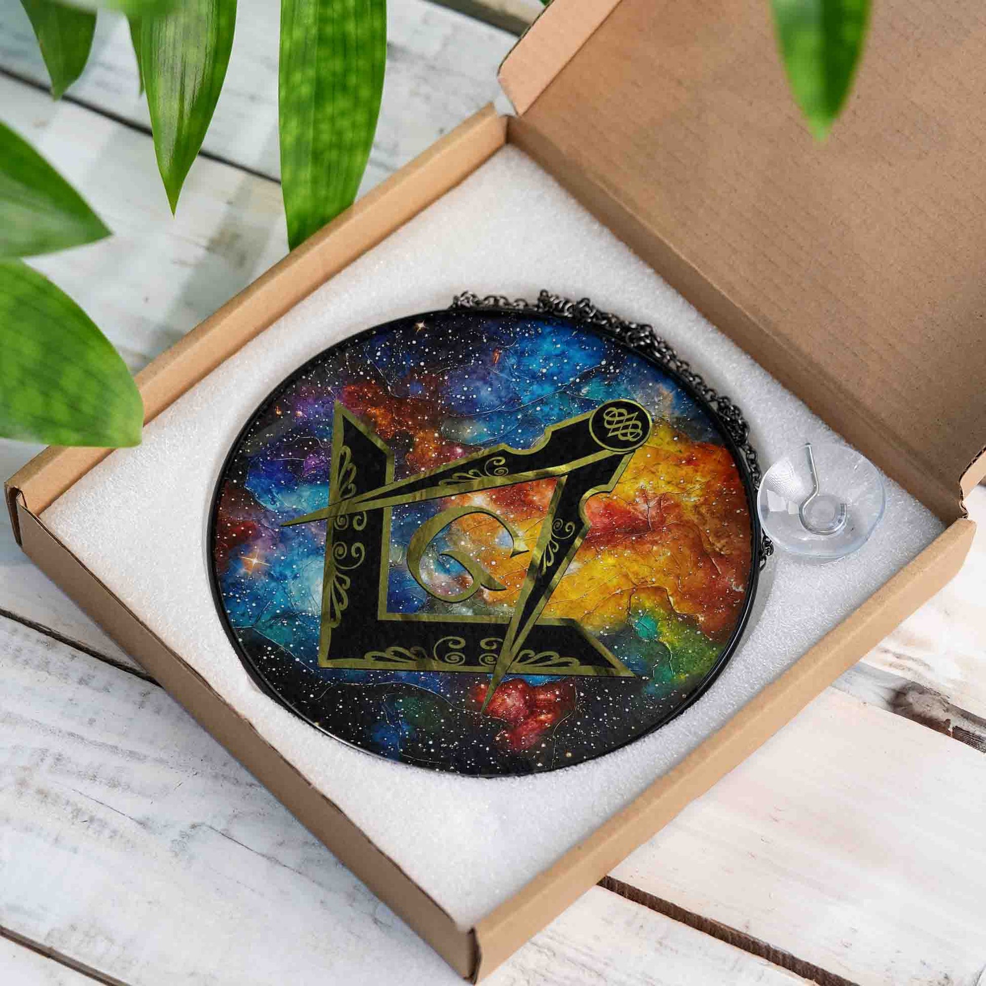 Freemason Galaxy Pattern Masonic Colorful Stained Glass Suncatcher