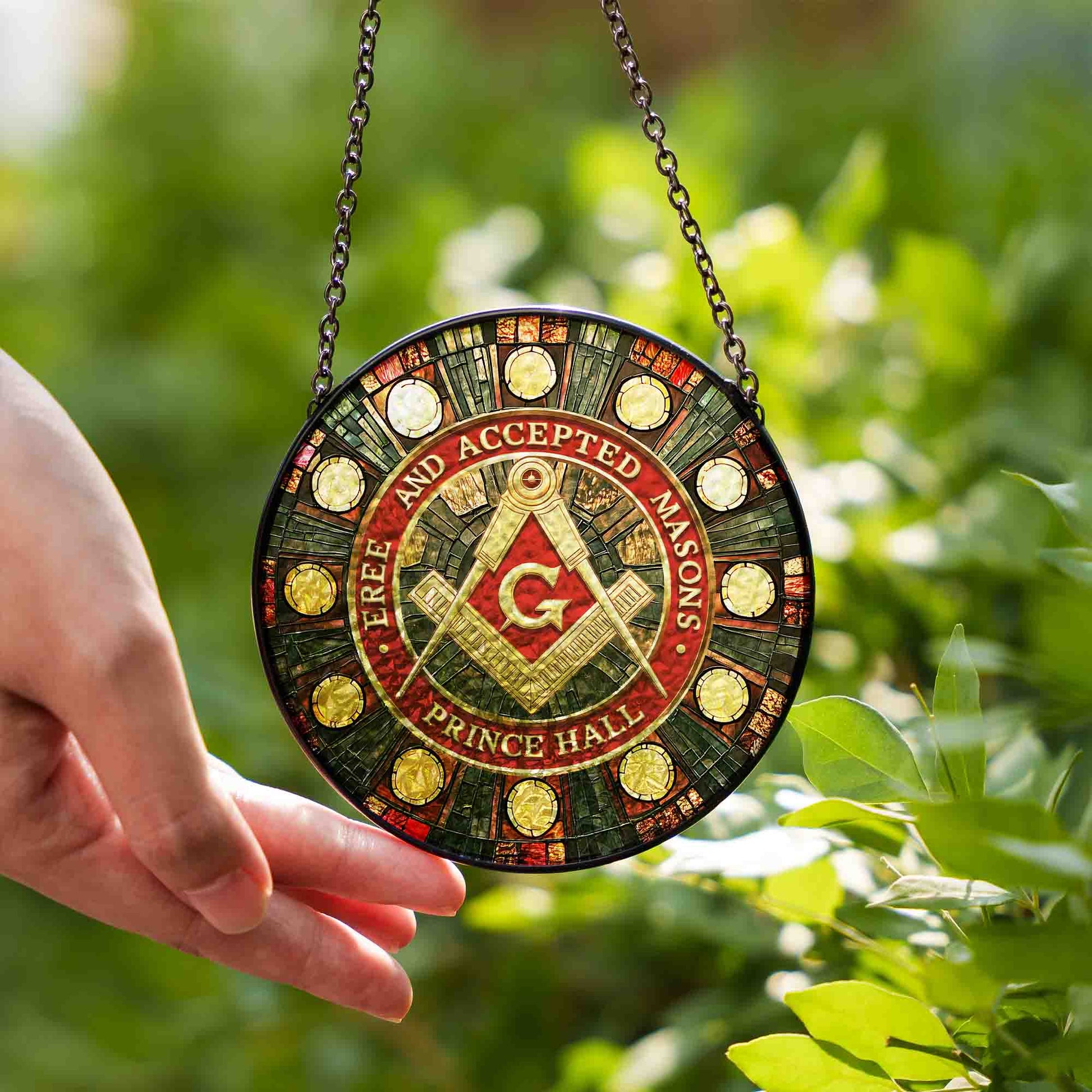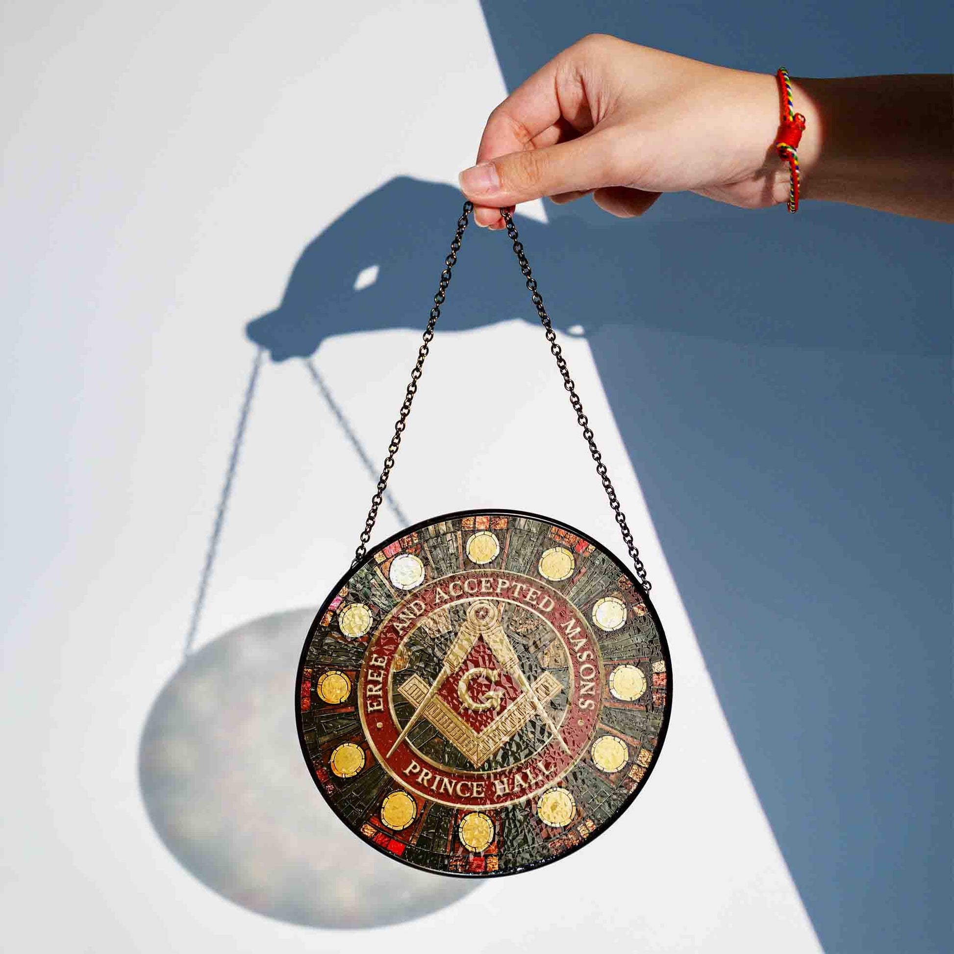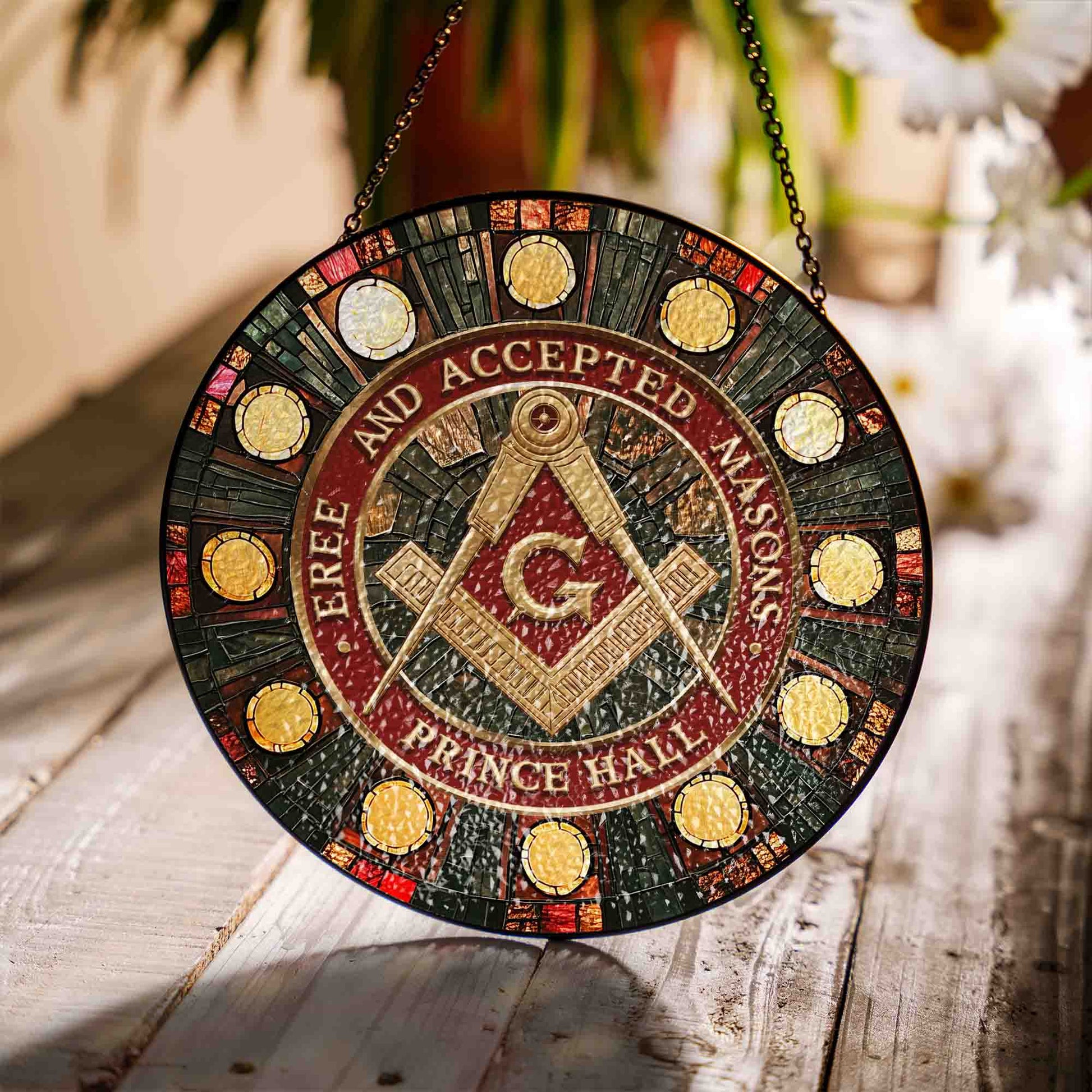 Freemason Prince Hall Mason Round Table Red Gold Masonic Stained Glass Suncatcher