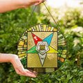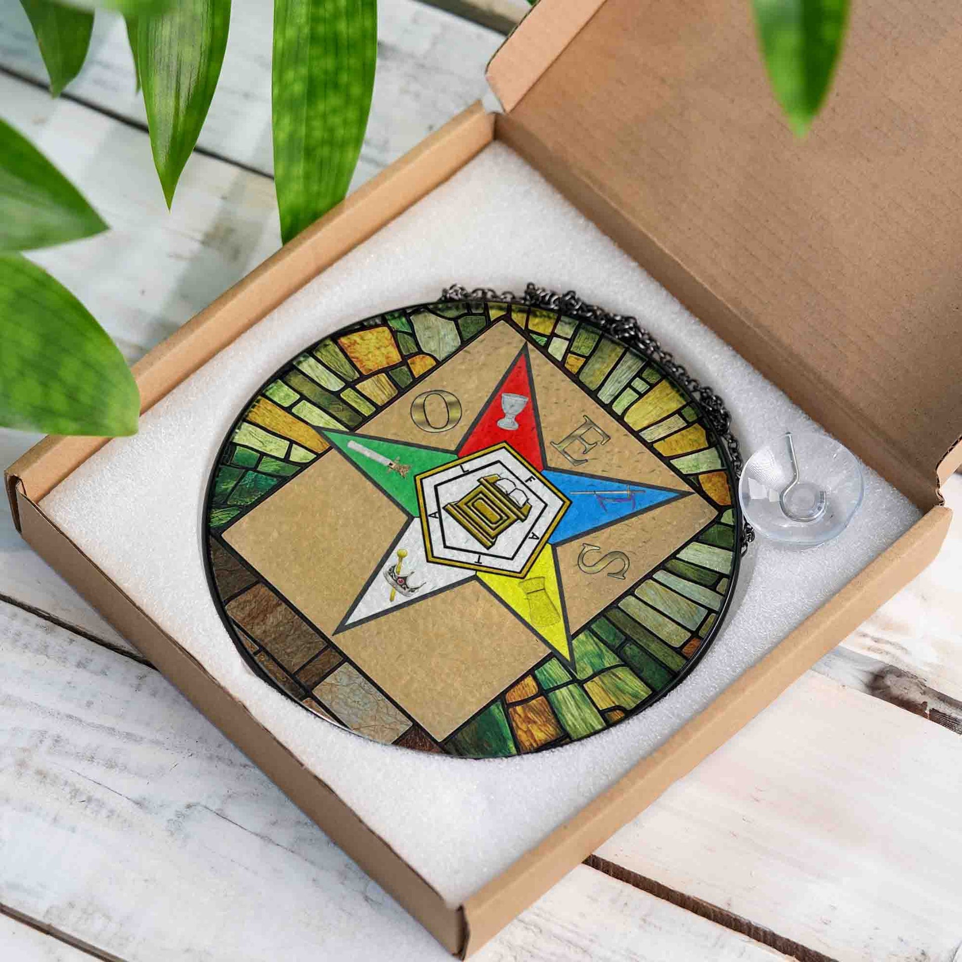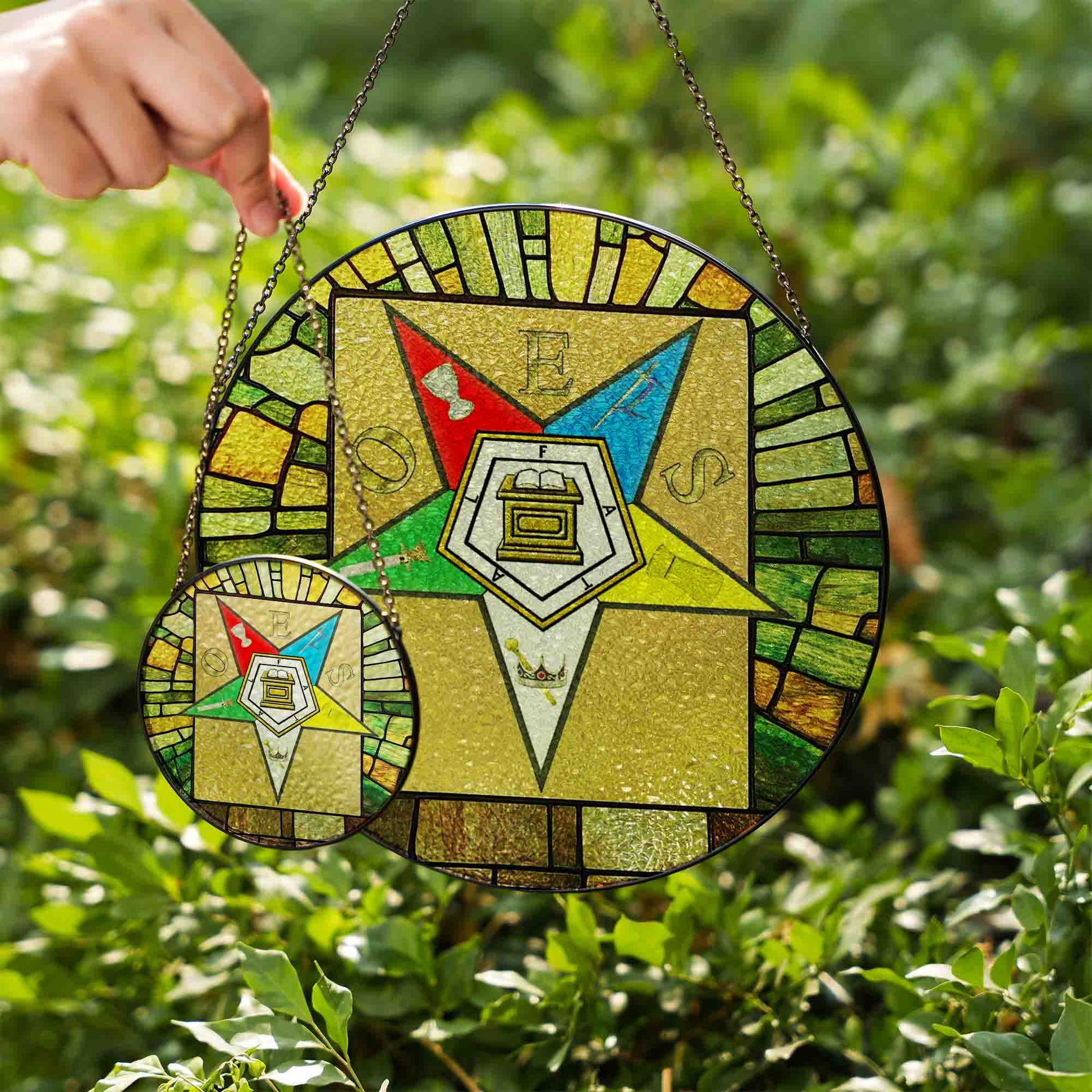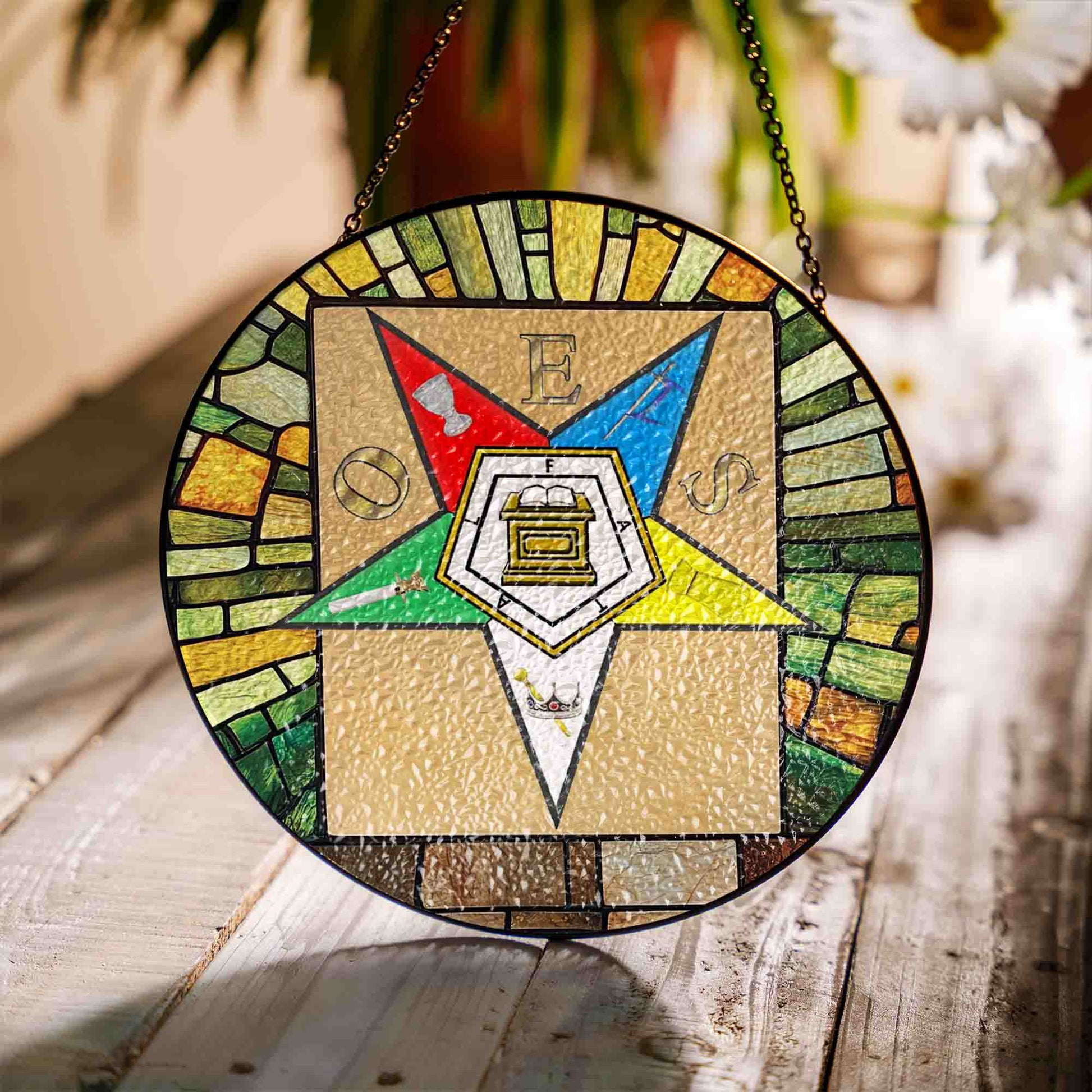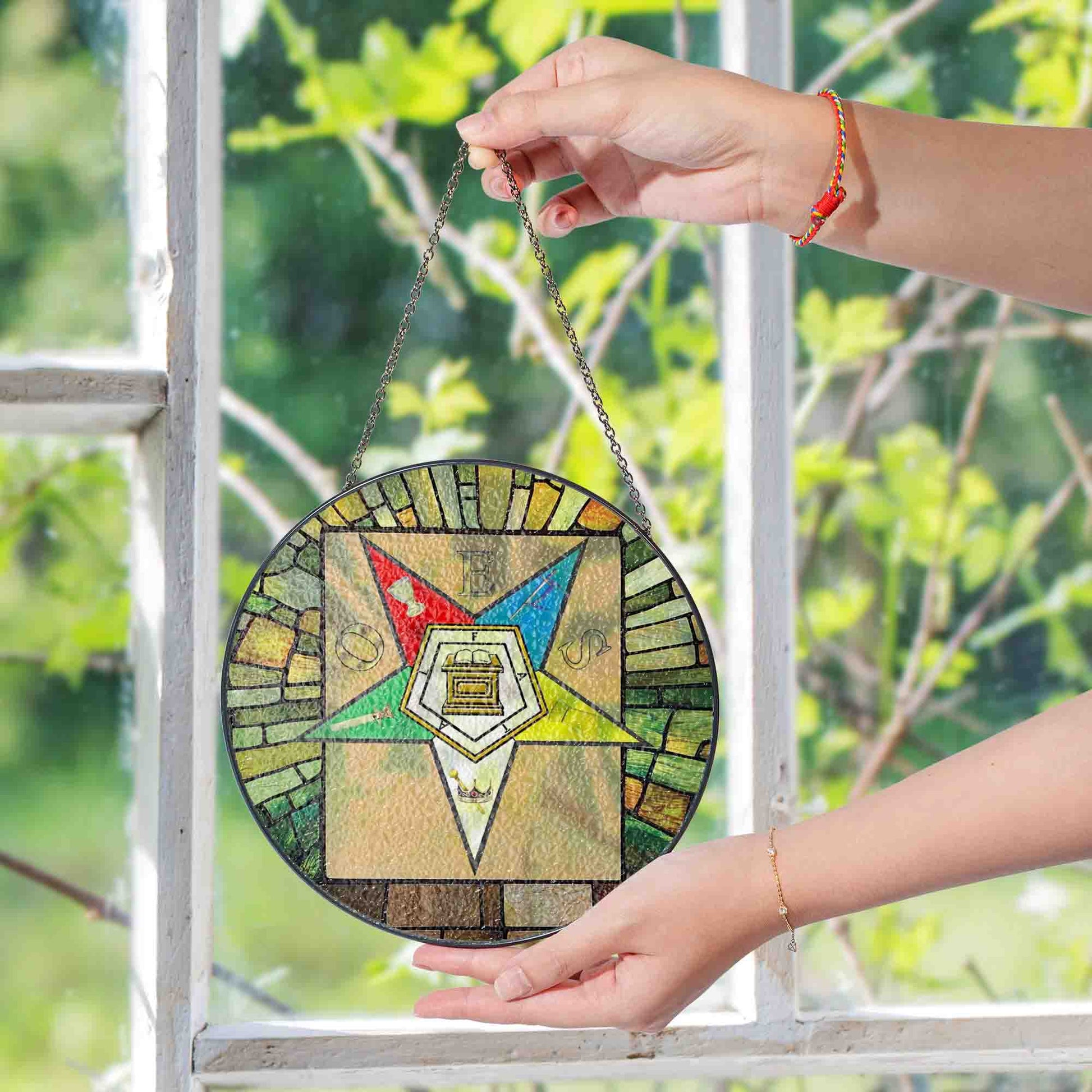 Freemason Wall Tablet OES Symbol Beige Green Glass Suncatcher