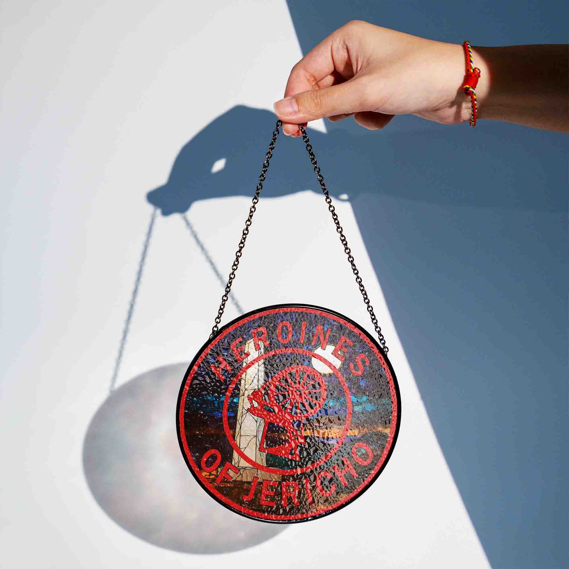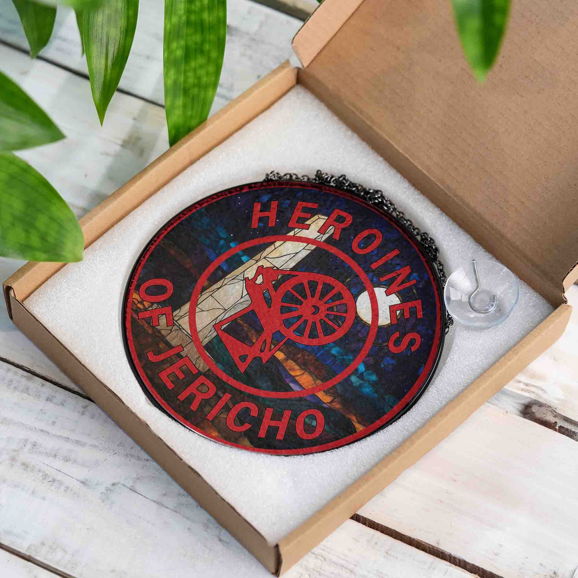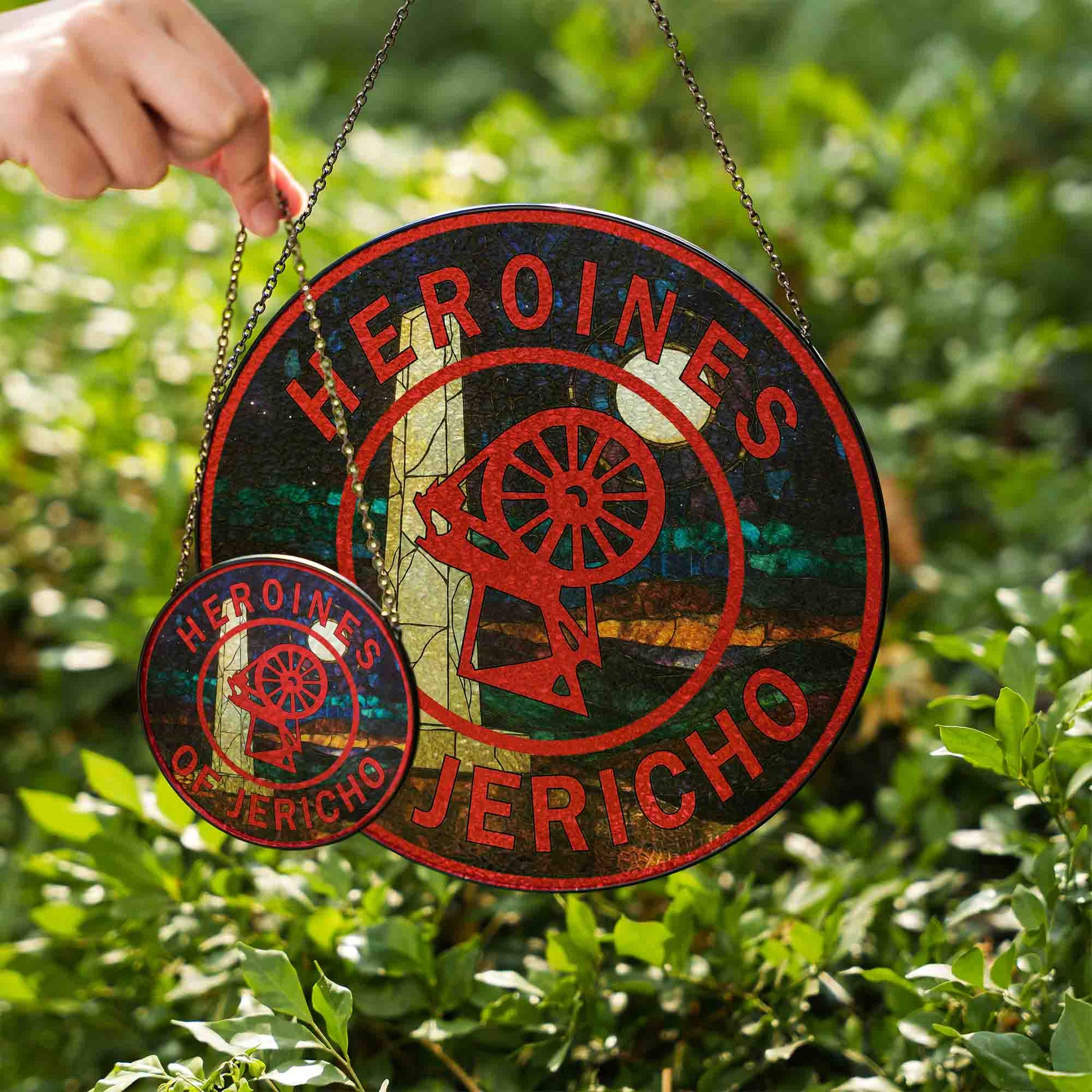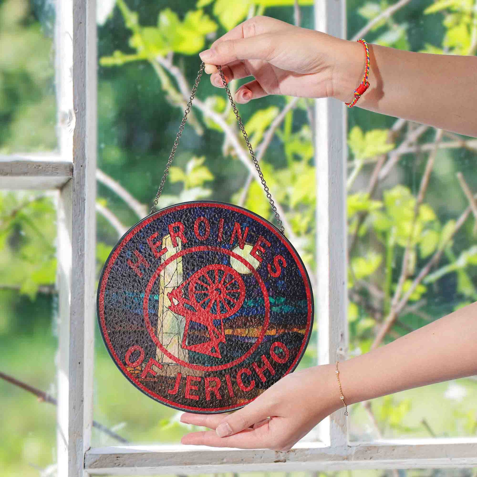 Jericho Symbol Stone Obelisk Red Blue Masonic Glass Suncatcher