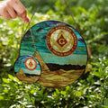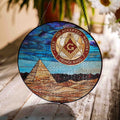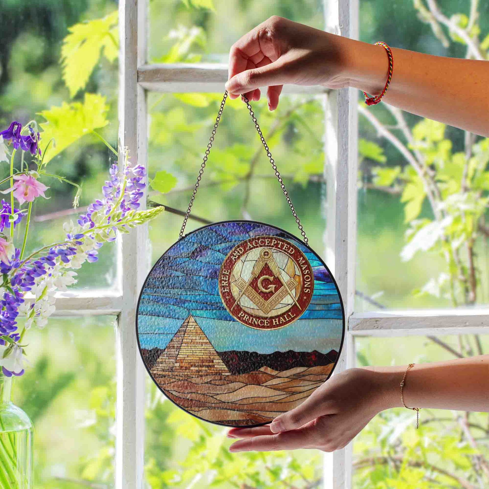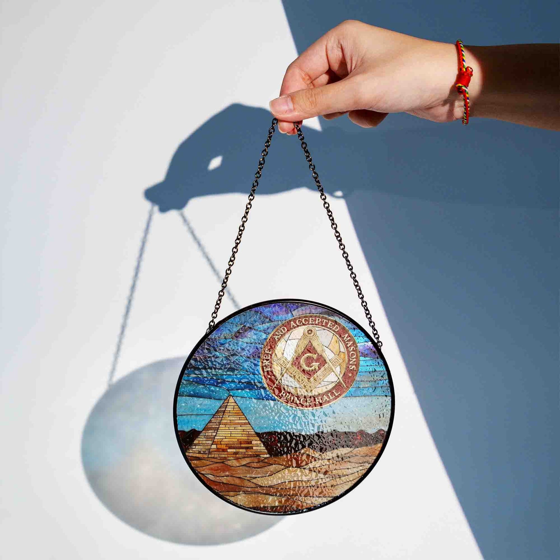 Masonic Prince Hall Mason Pyramid Sun Emblem Circle Yellow Red Blue Glass Suncatcher