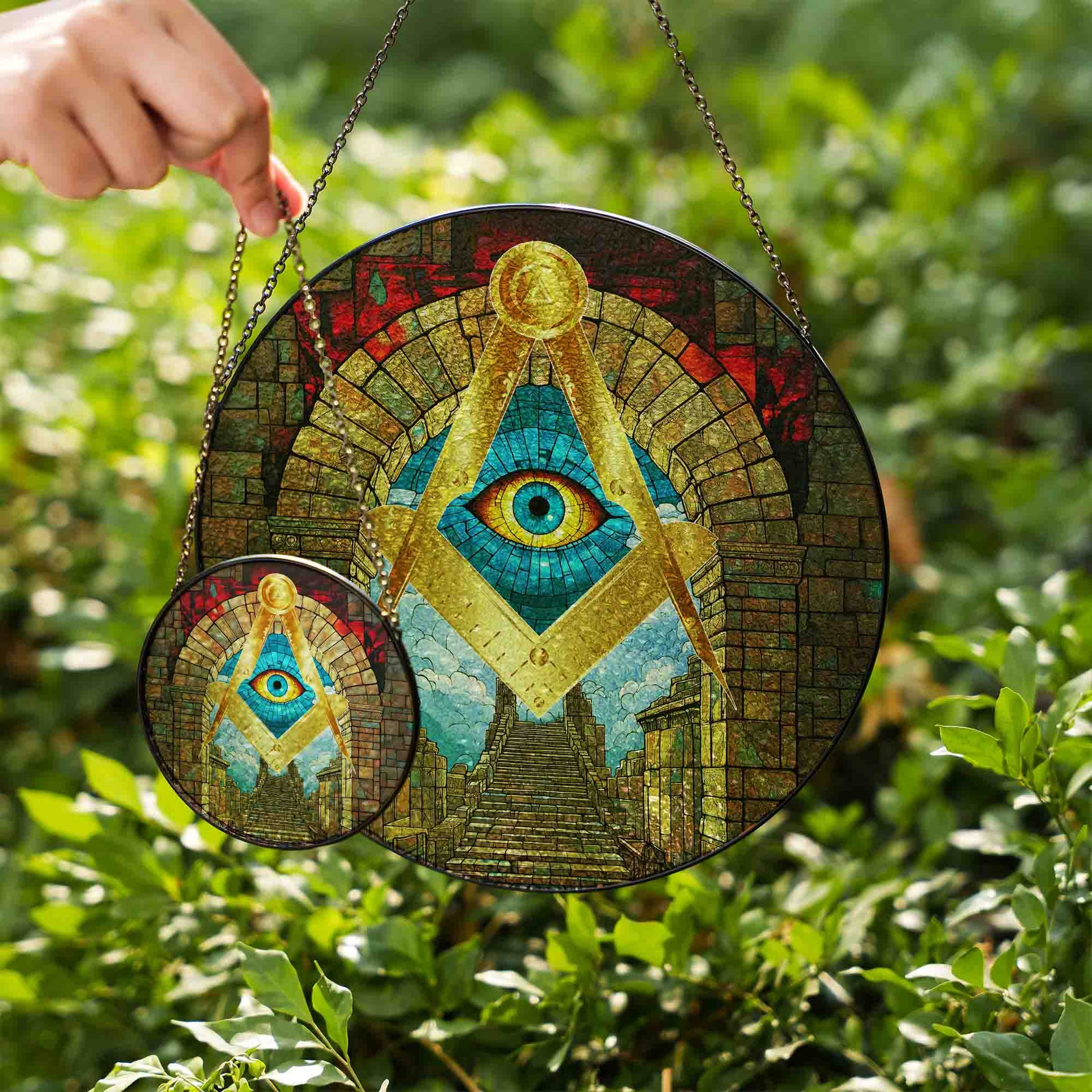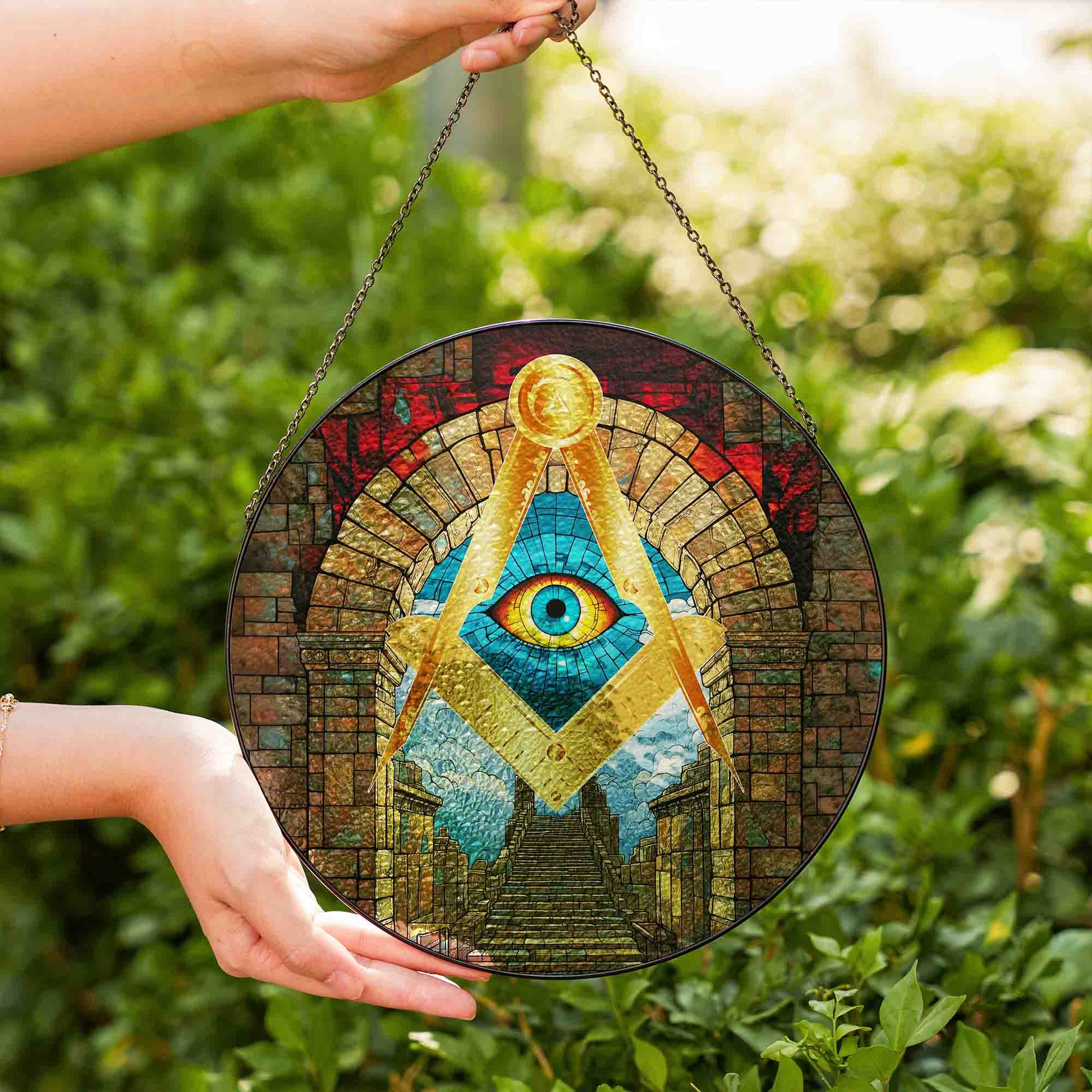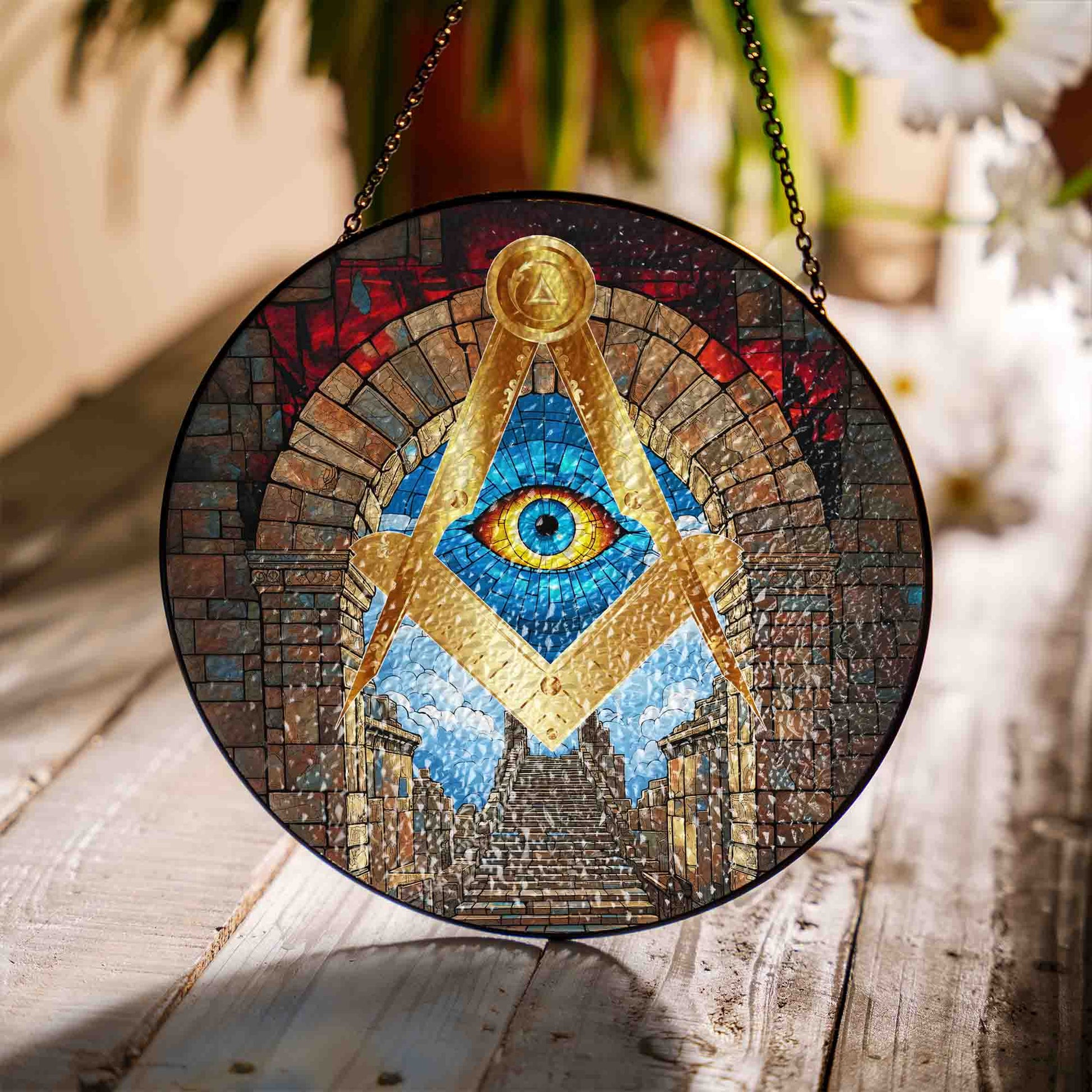 Masonic Stairs Arch Eye Symbol Gold Blue Glass Suncatcher