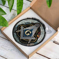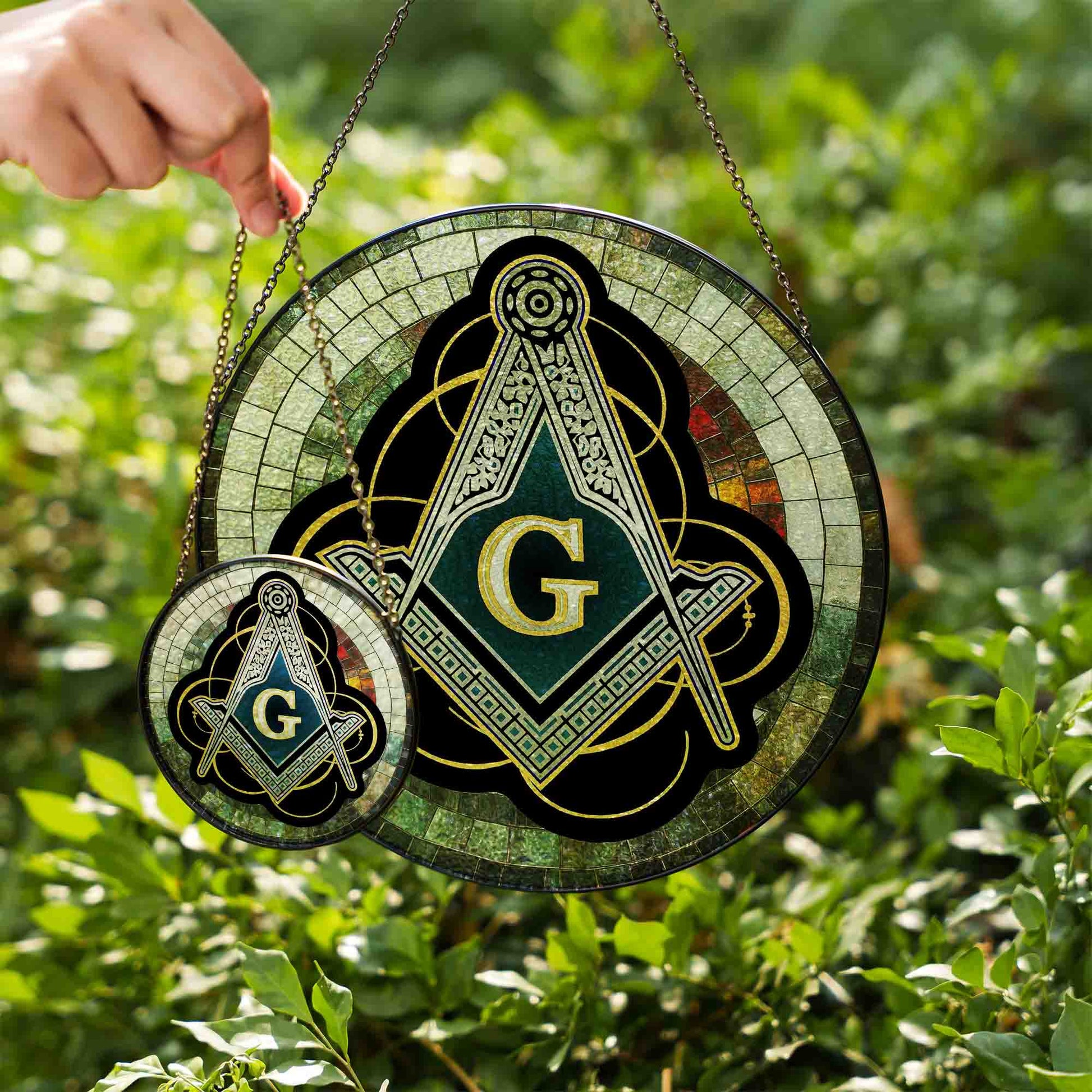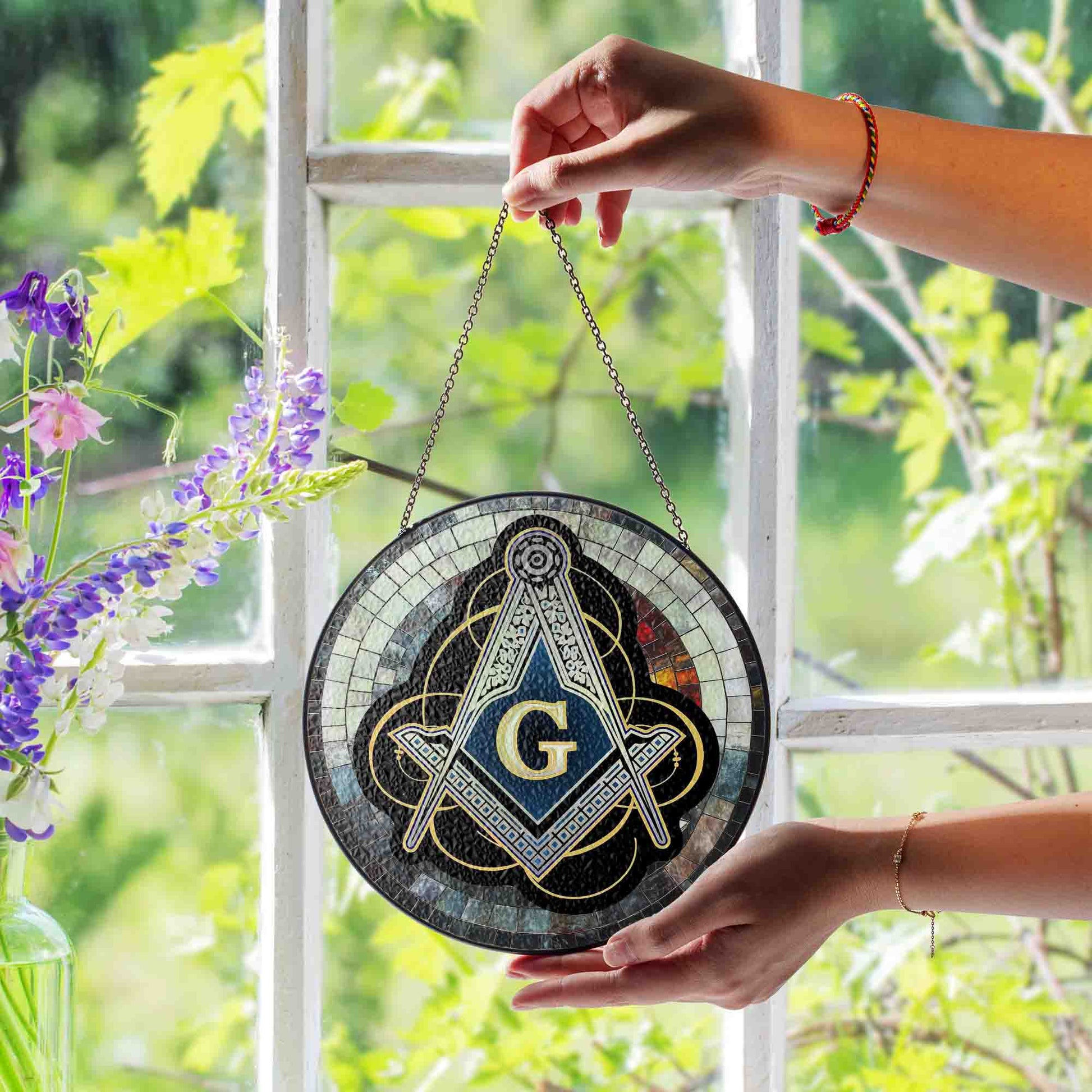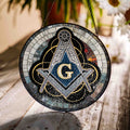 Masonic Symbol Mosaic Stone, Silver Stained Glass Suncatcher, Lodge Gift