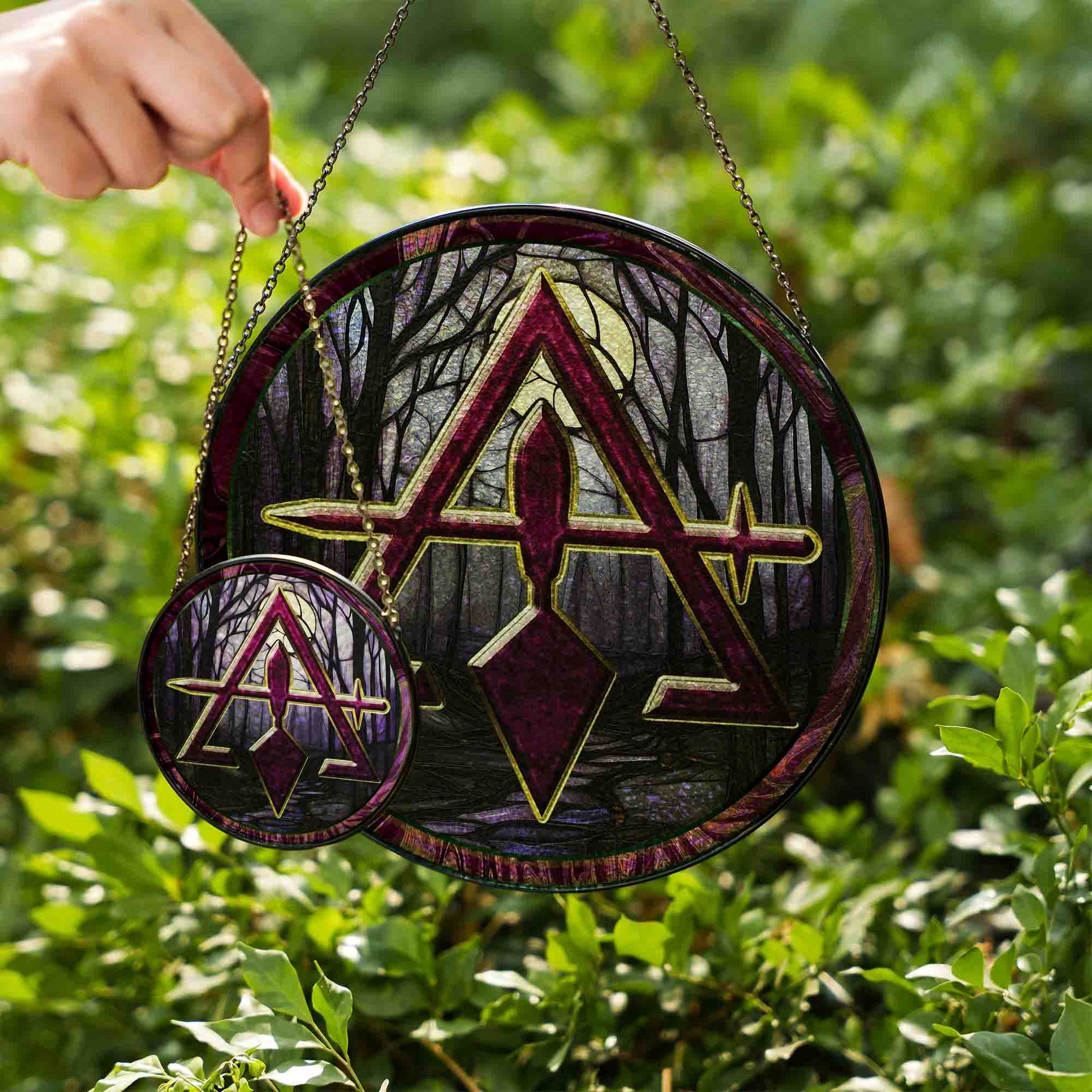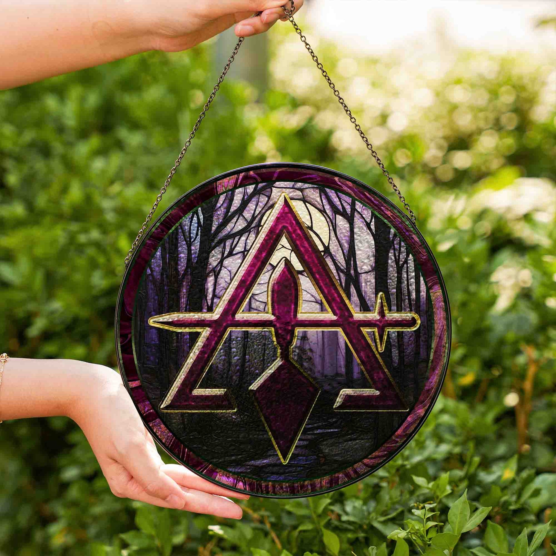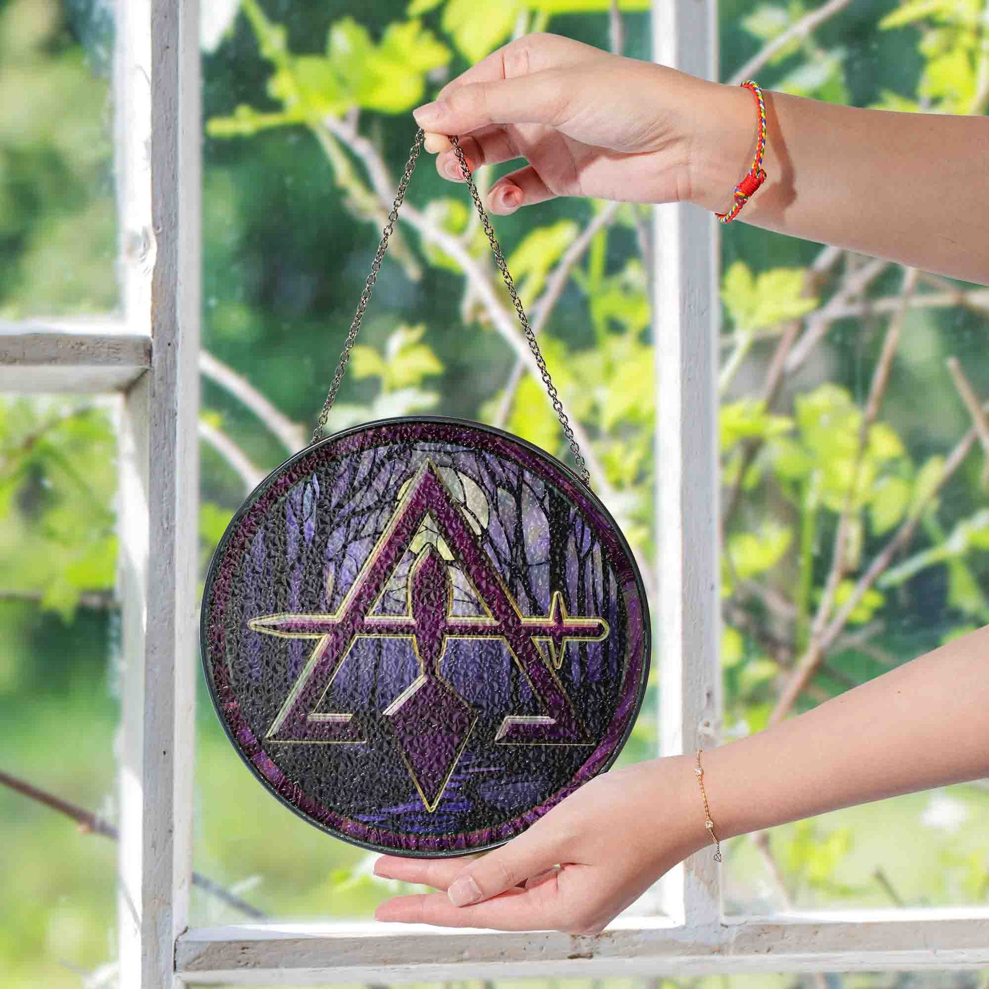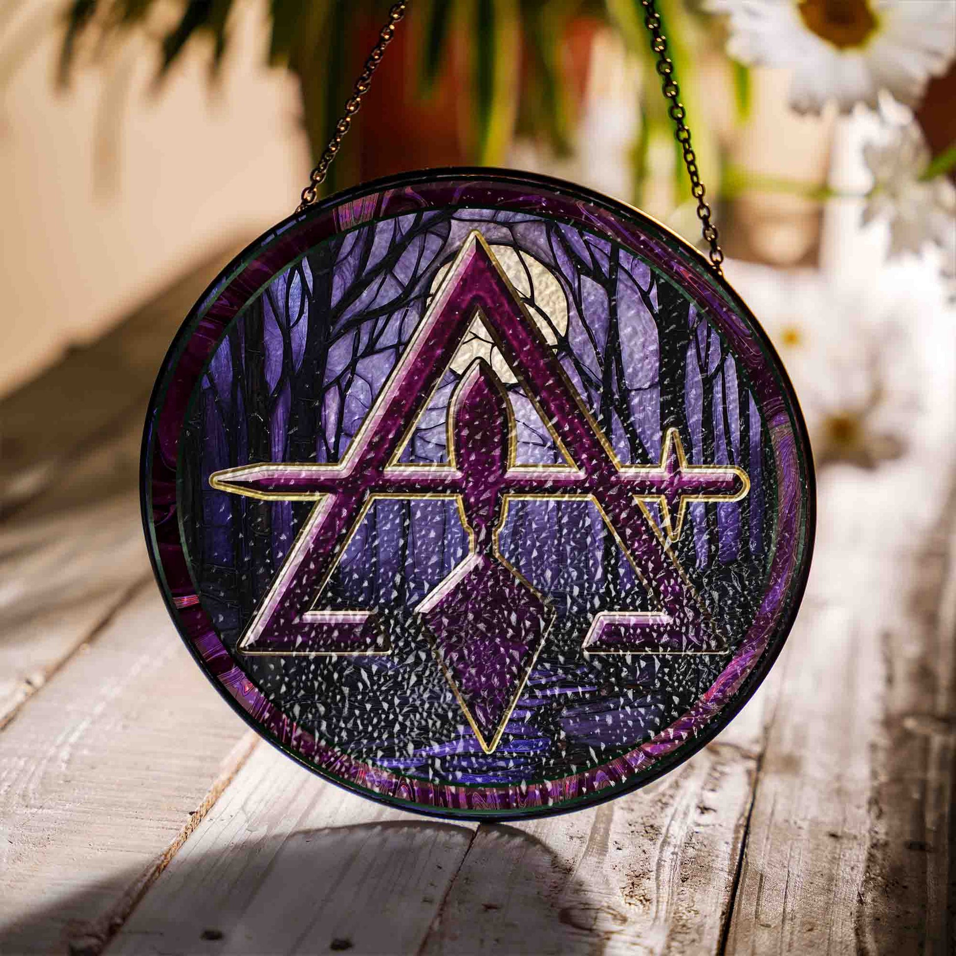 Moon Night Forest Cryptic Council Symbol Purple Glass Suncatcher