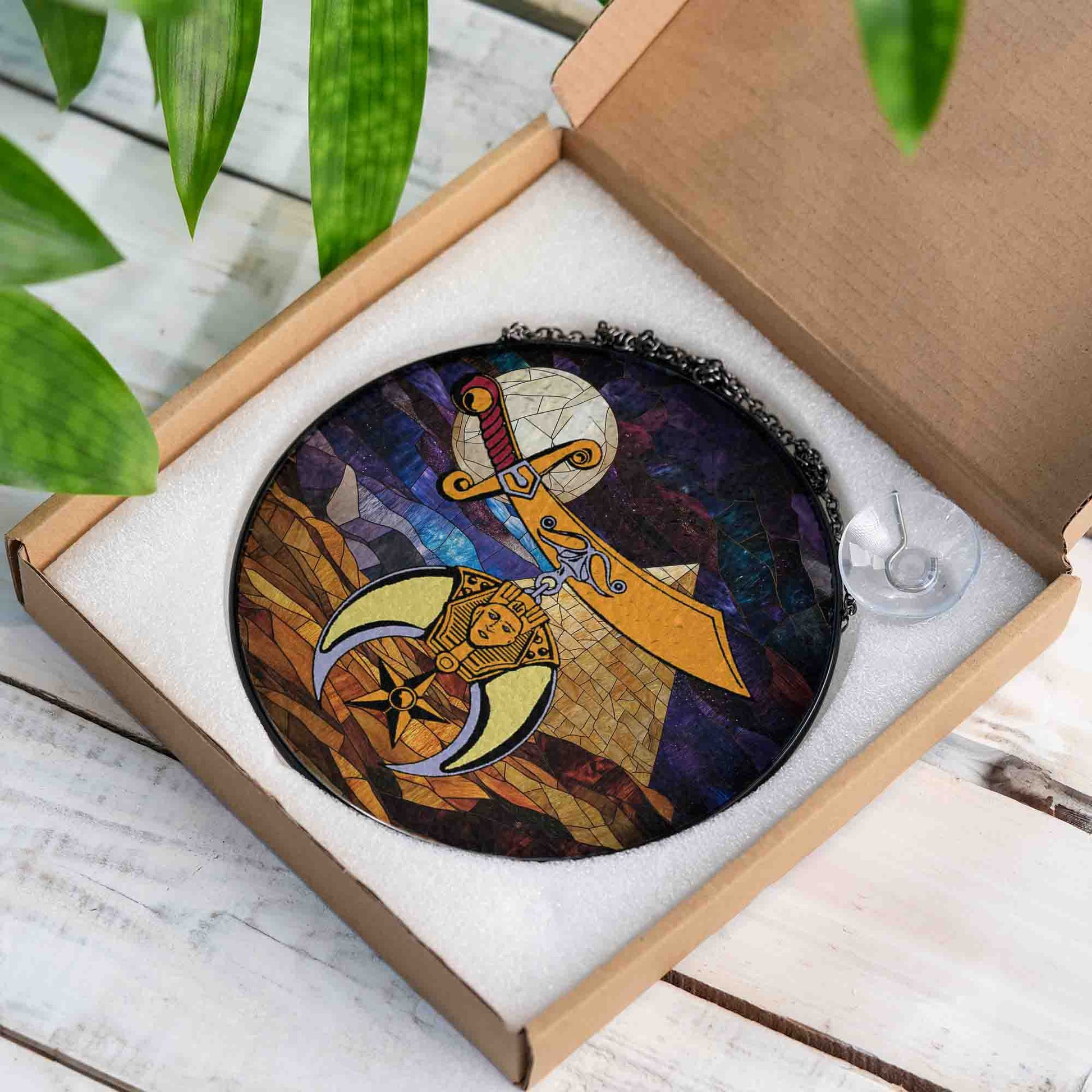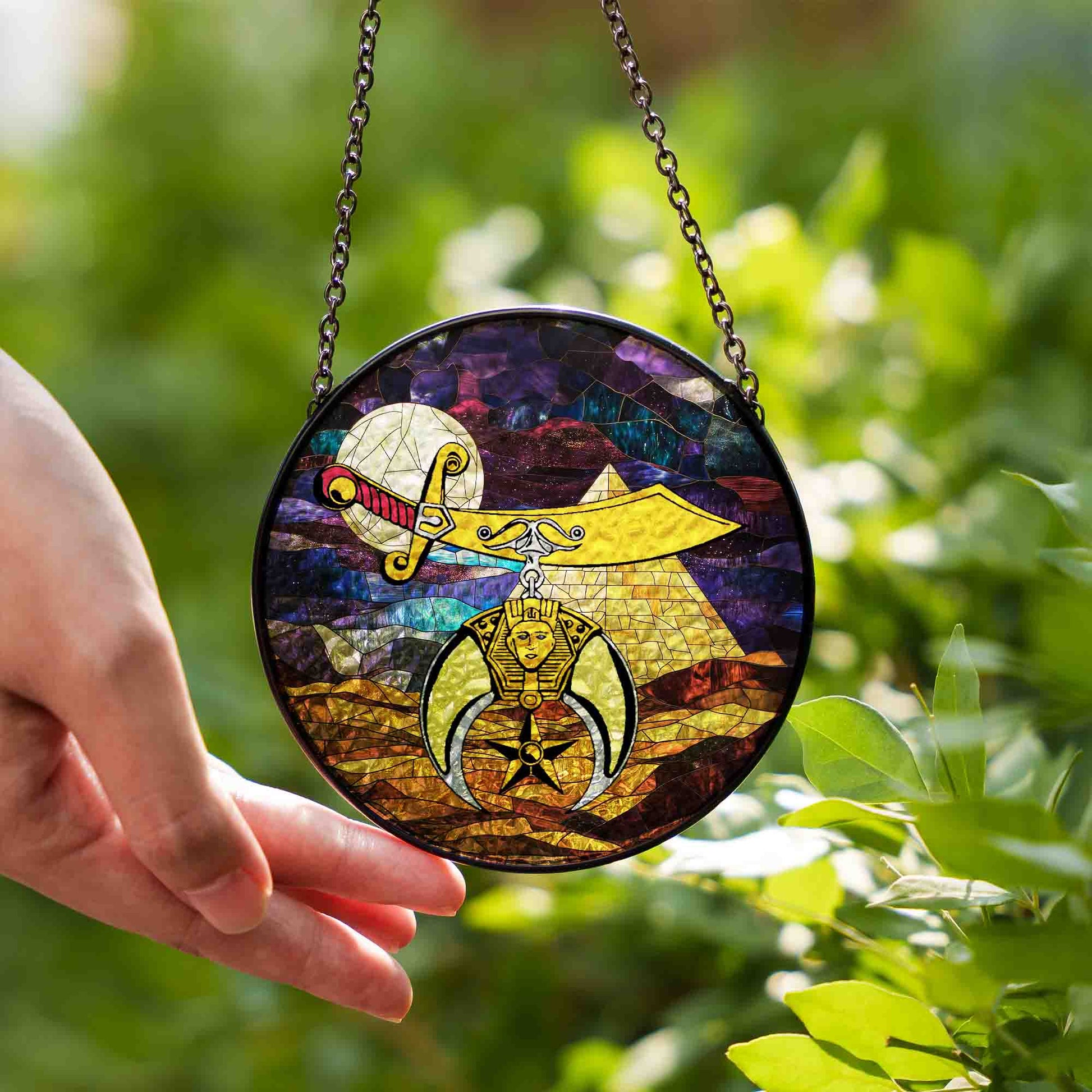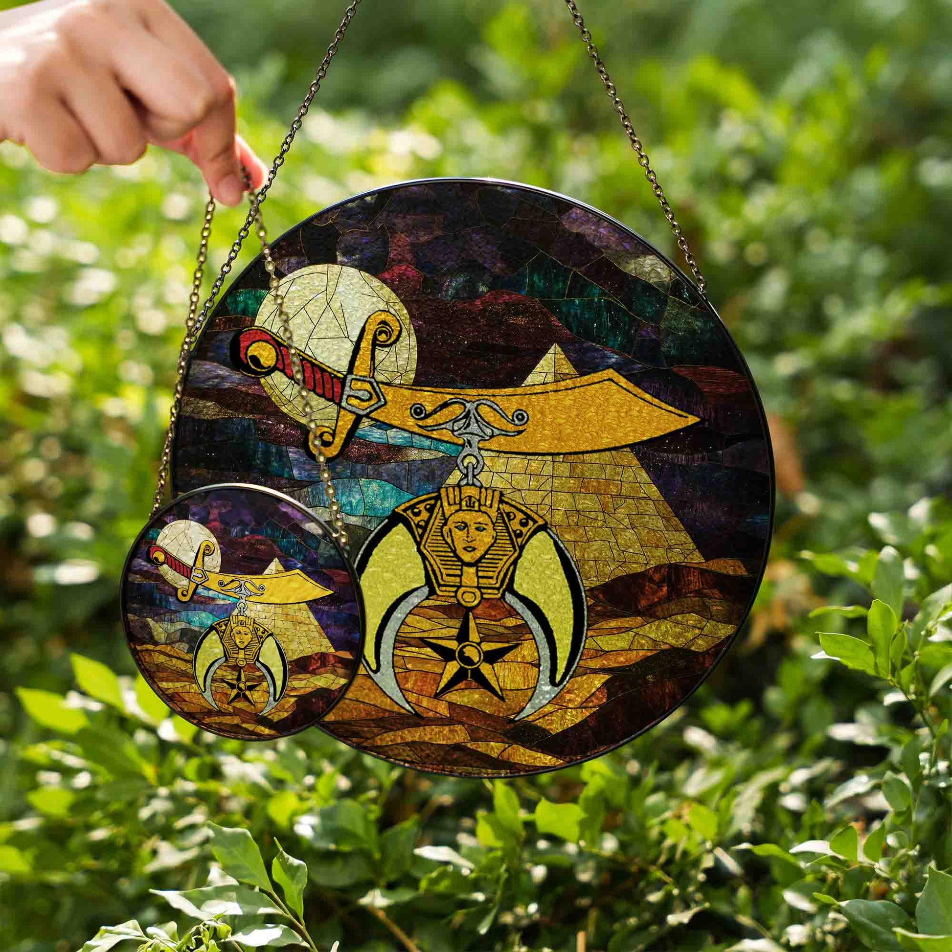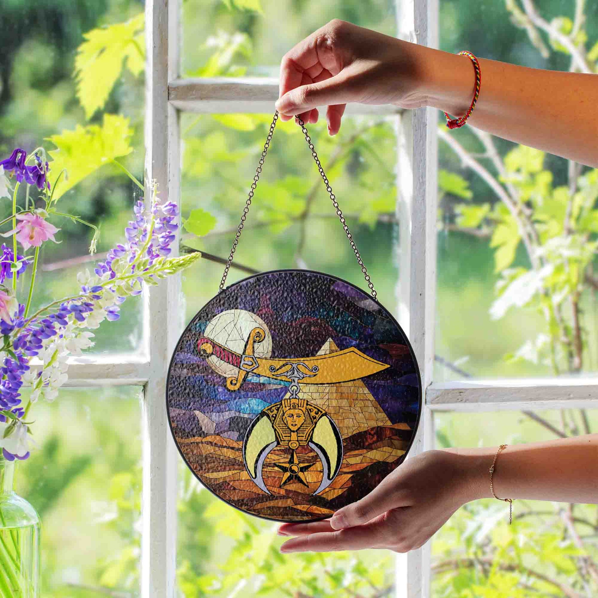 Moon Night Shriners Pyramid Sand Blue Masonic Suncatcher