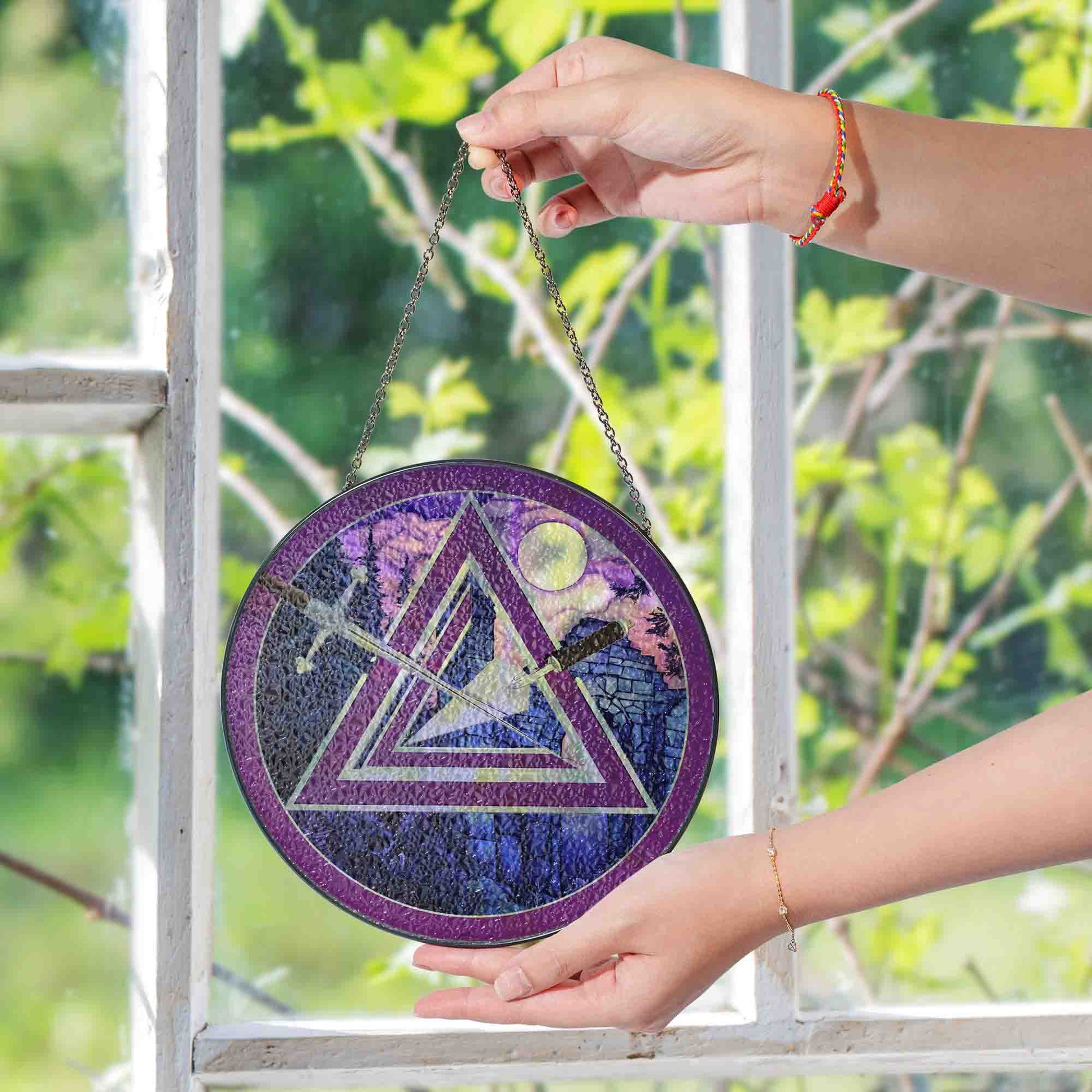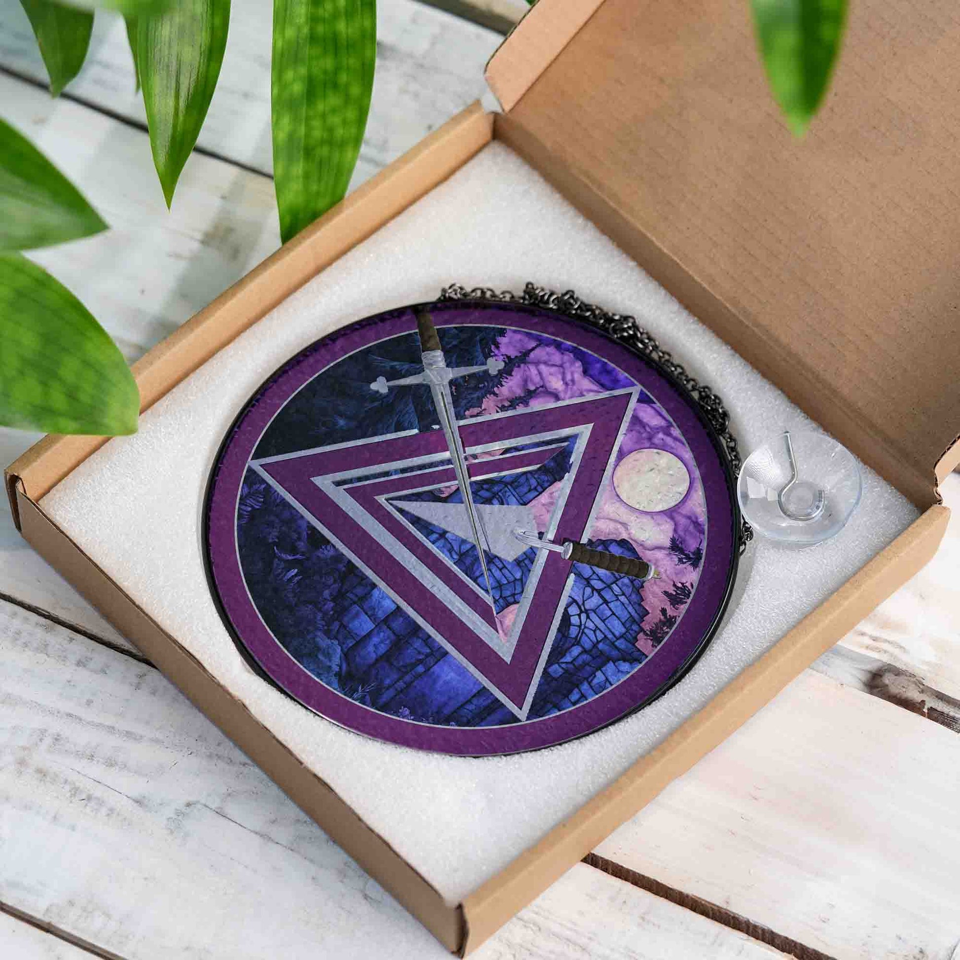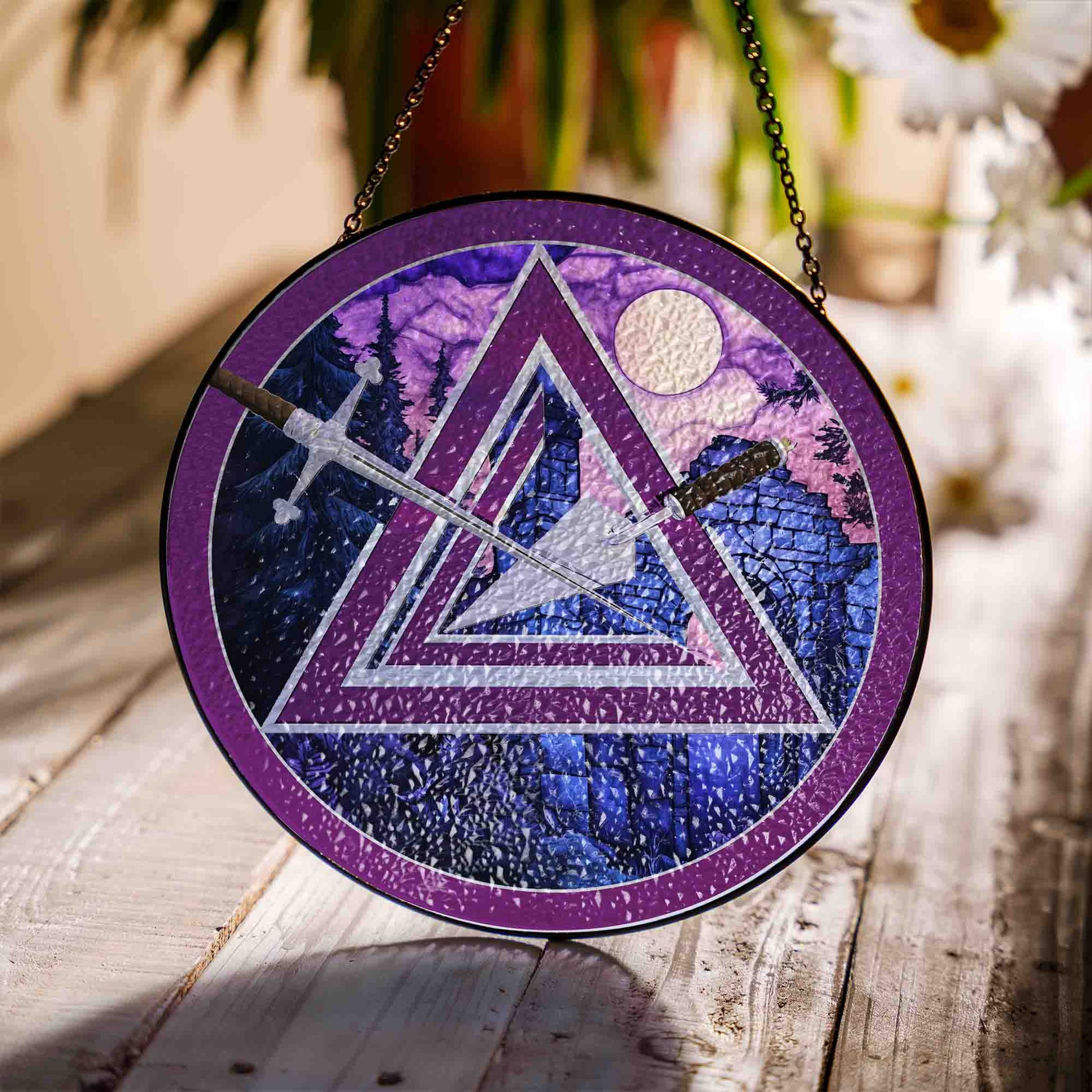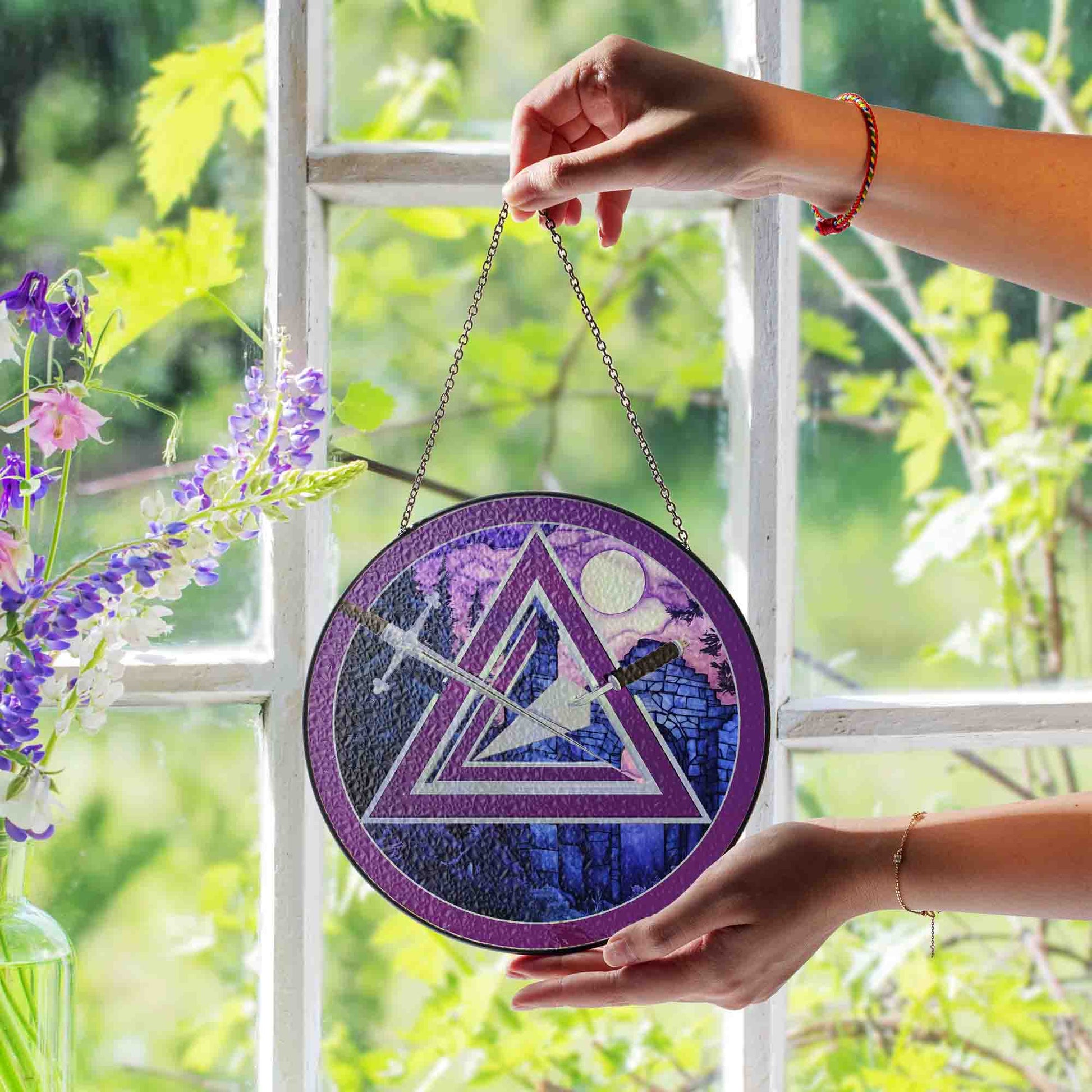 Night Stone Arch Cryptic Council Symbol Purple Glass Suncatcher
