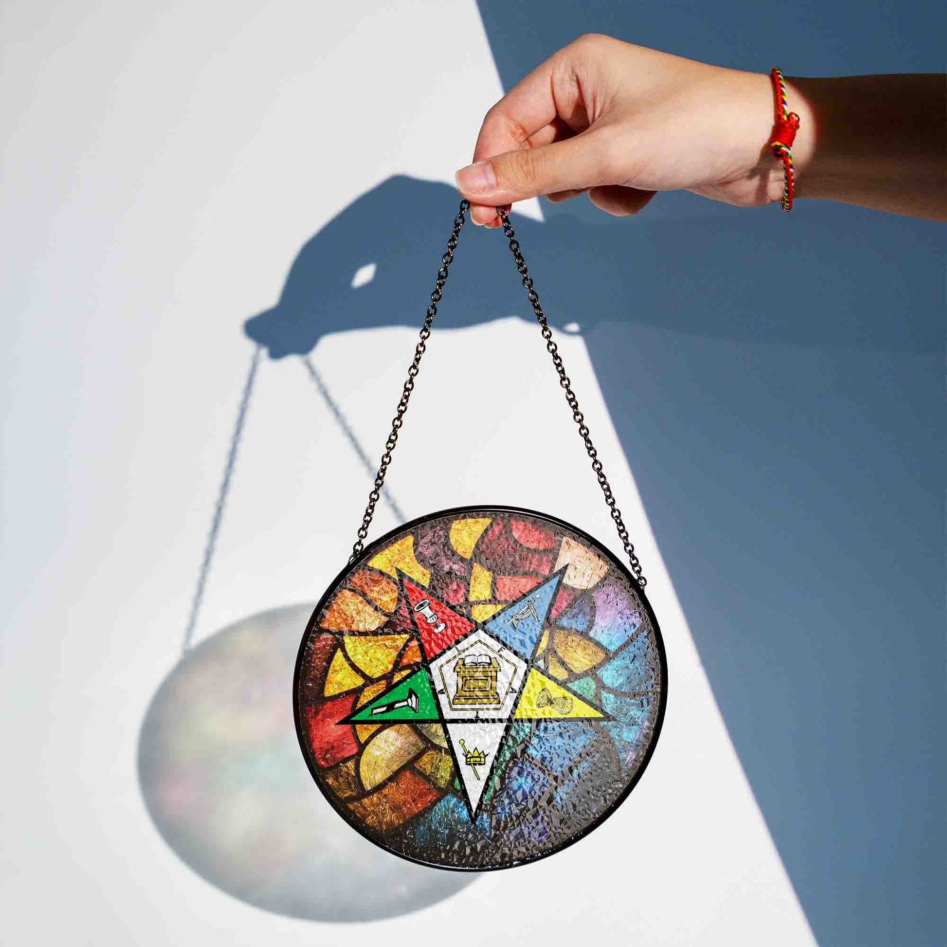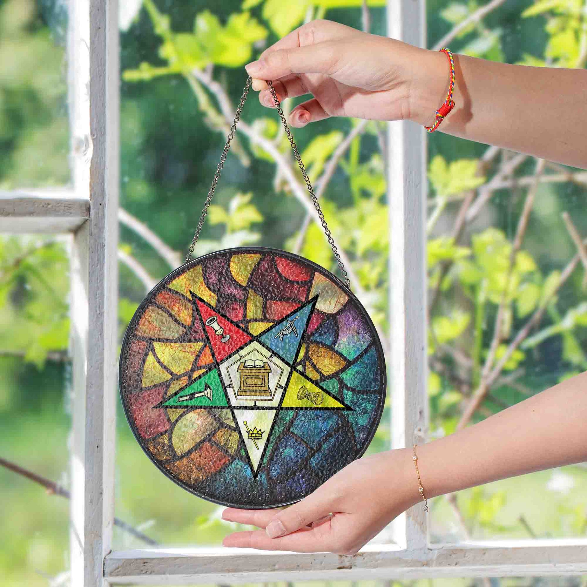 OES Mosaic Pattern Masonic Chapter Colorful Stained Glass Suncatcher