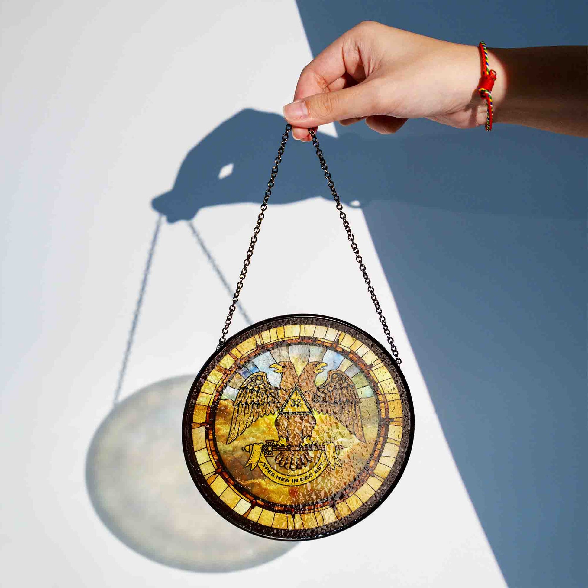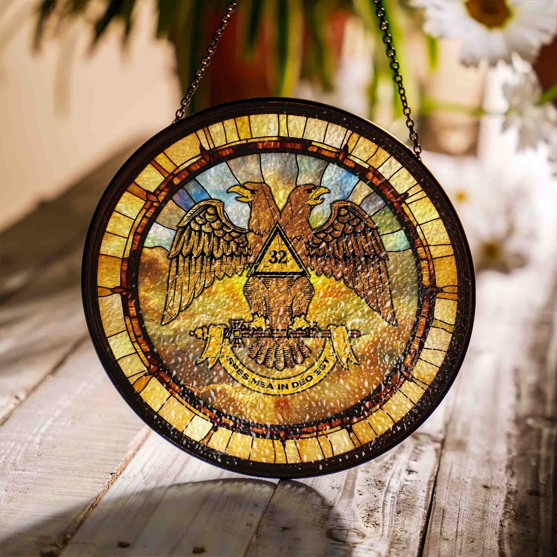 Scottish Rite 32nd Sunset Sky Yellow Masonic Glass Suncatcher