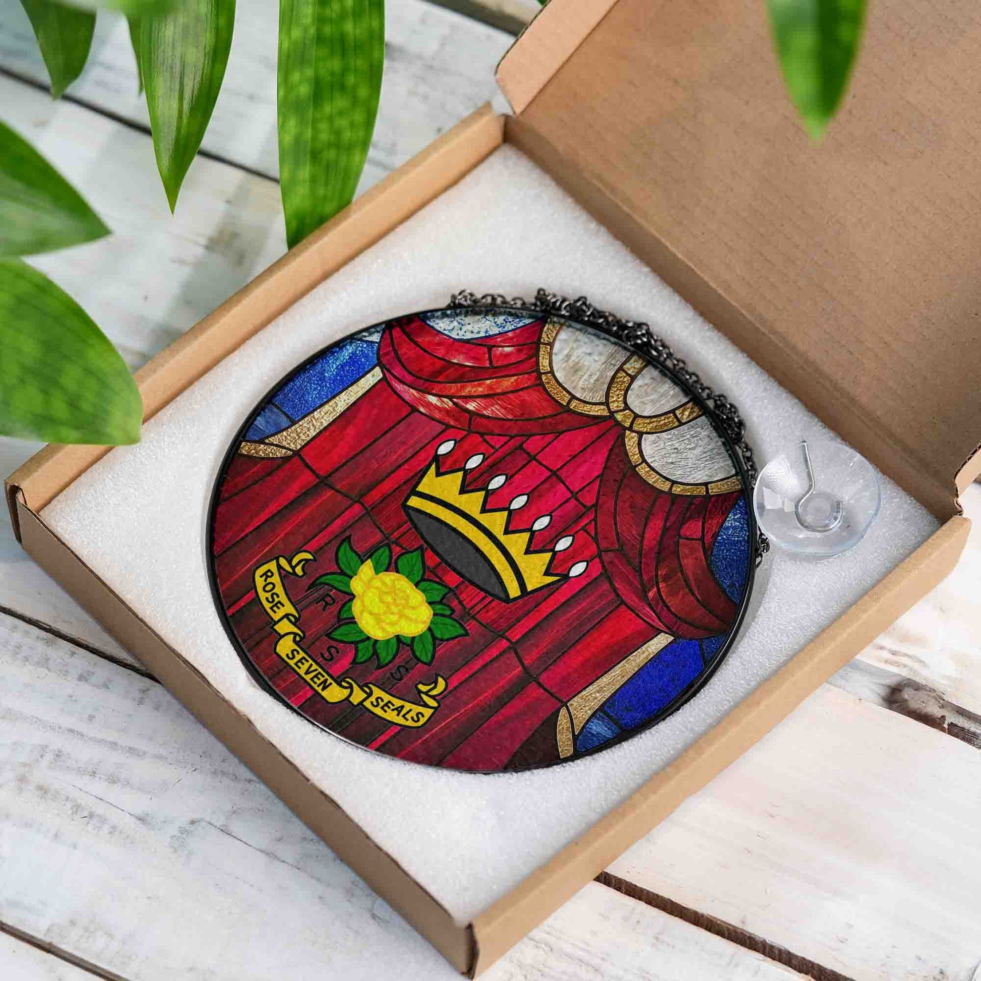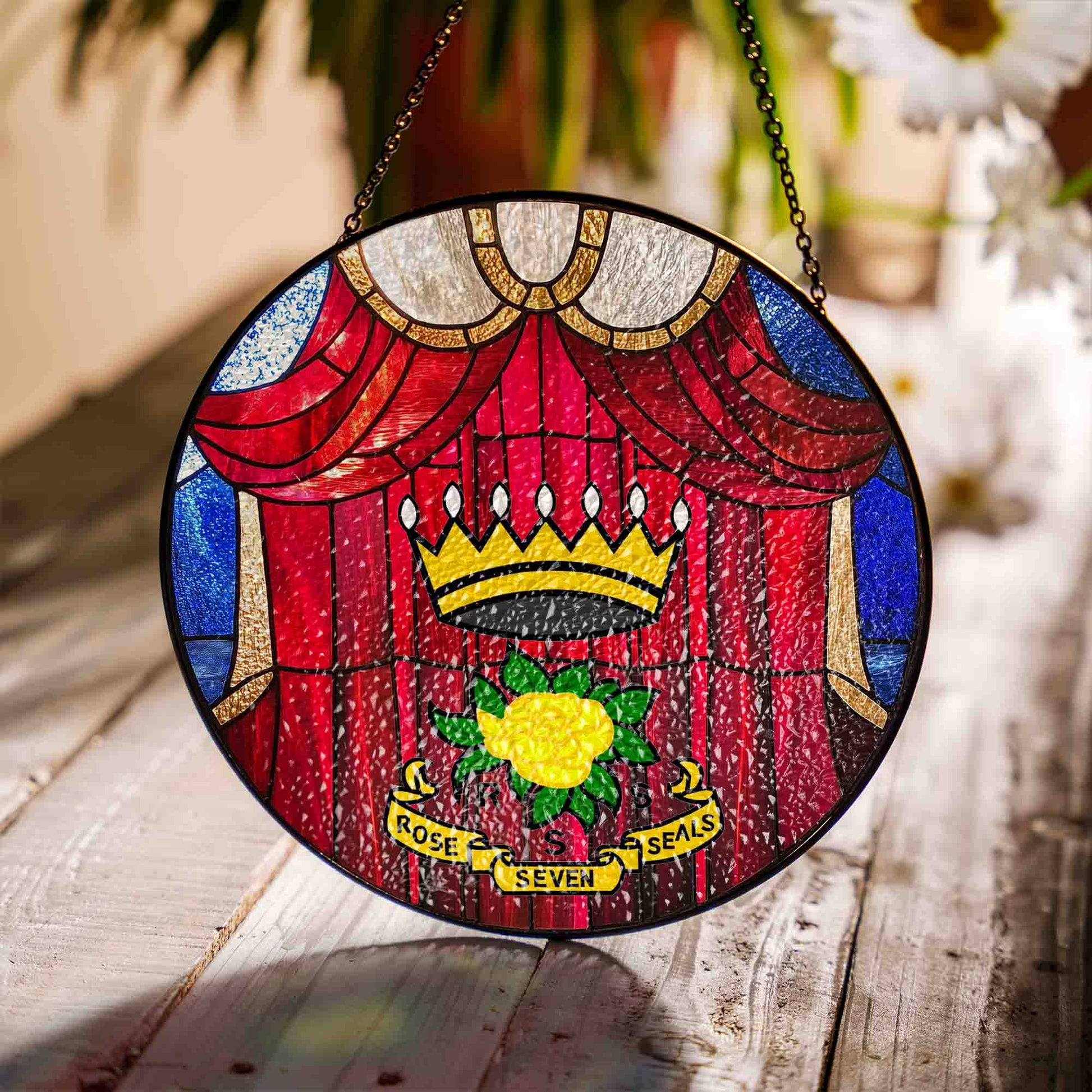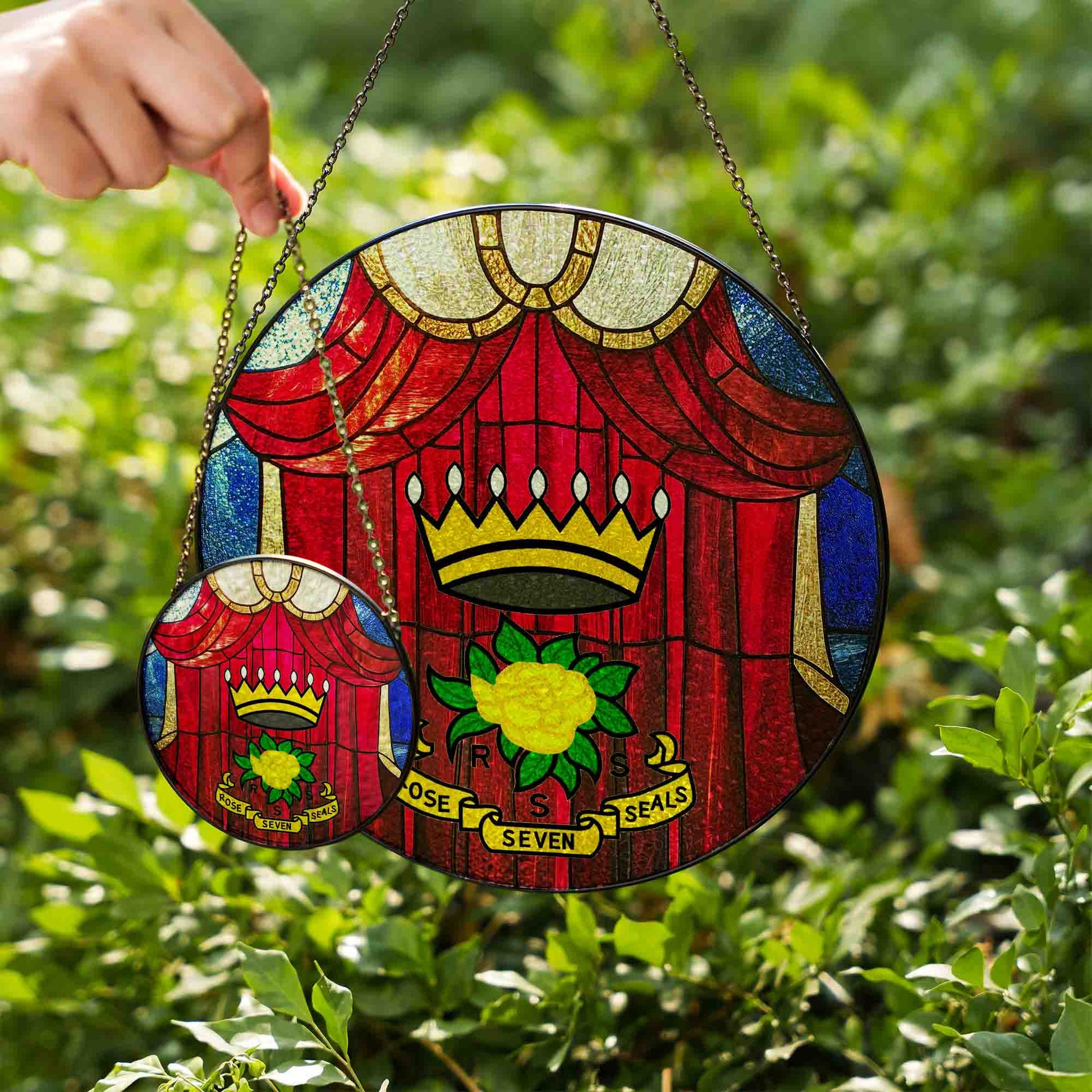 Rose of Seven Seals Red Curtain Masonic Stained Glass Suncatcher