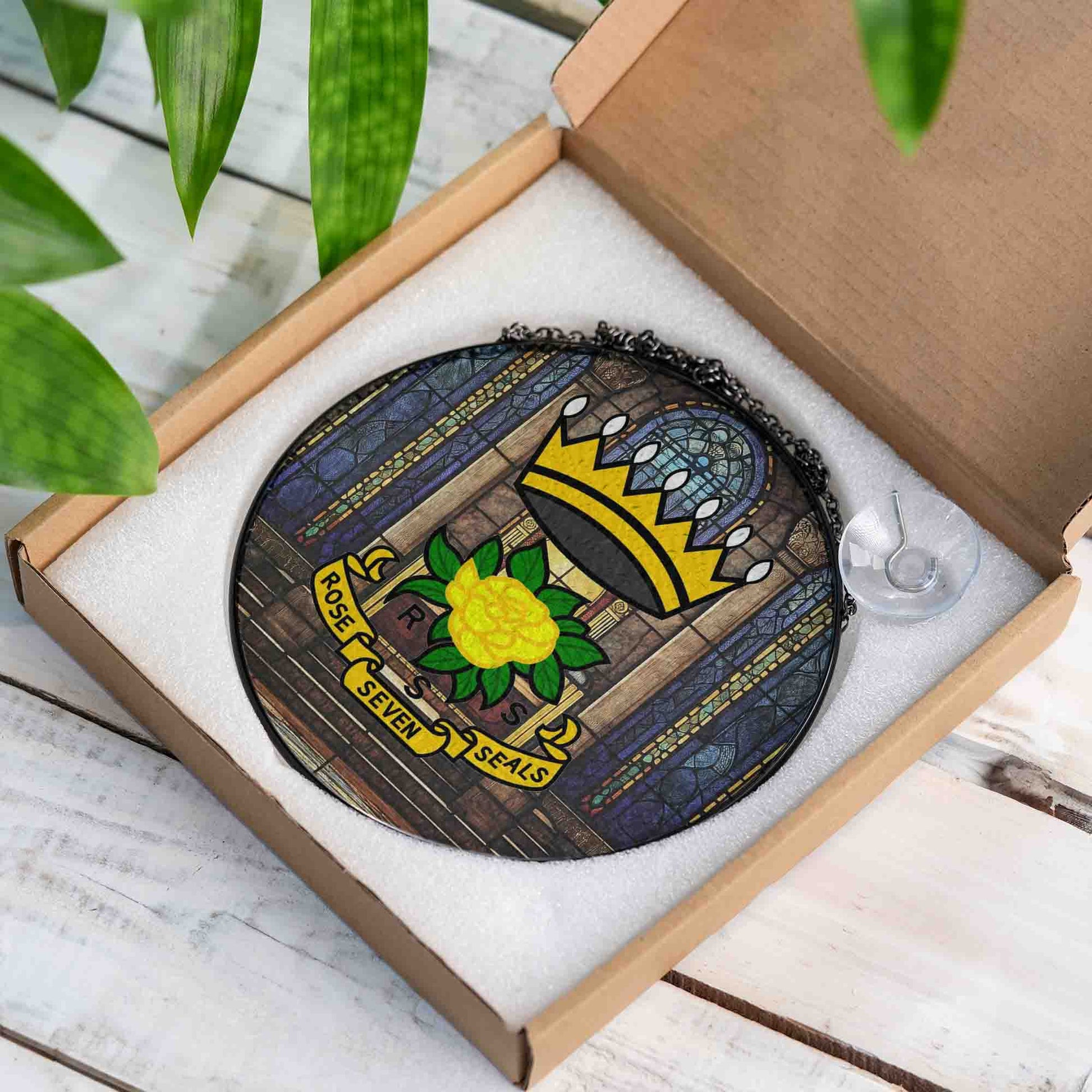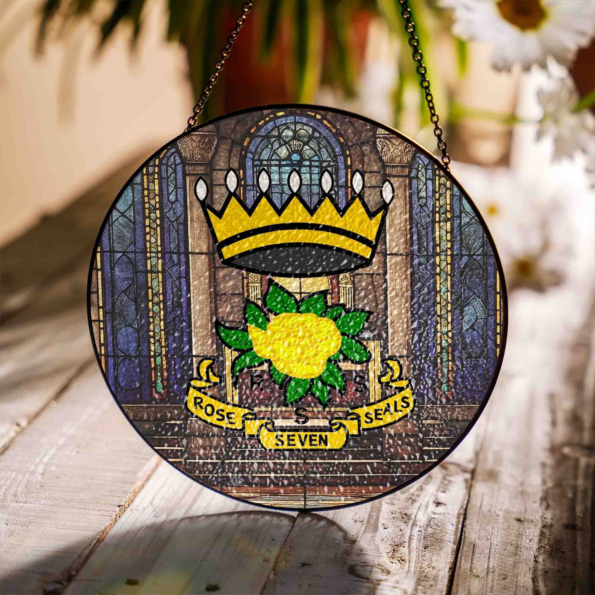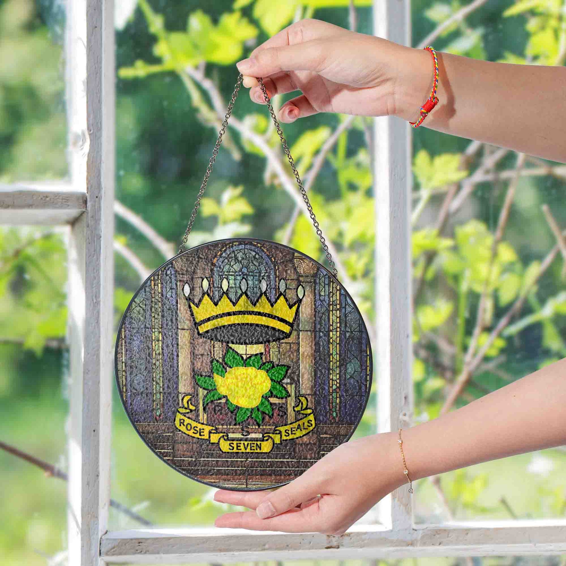 Rose of Seven Seals Throne Room Masonic Glass Suncatcher