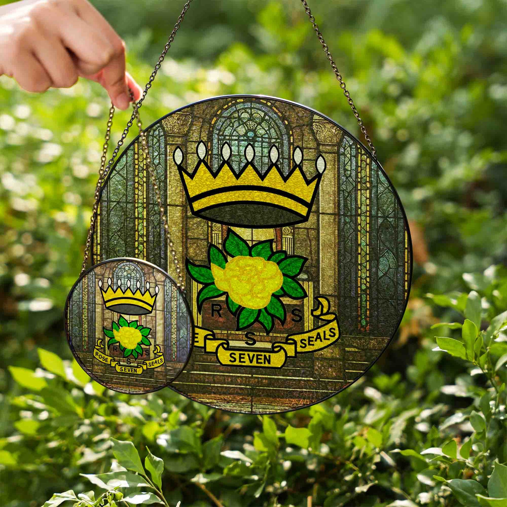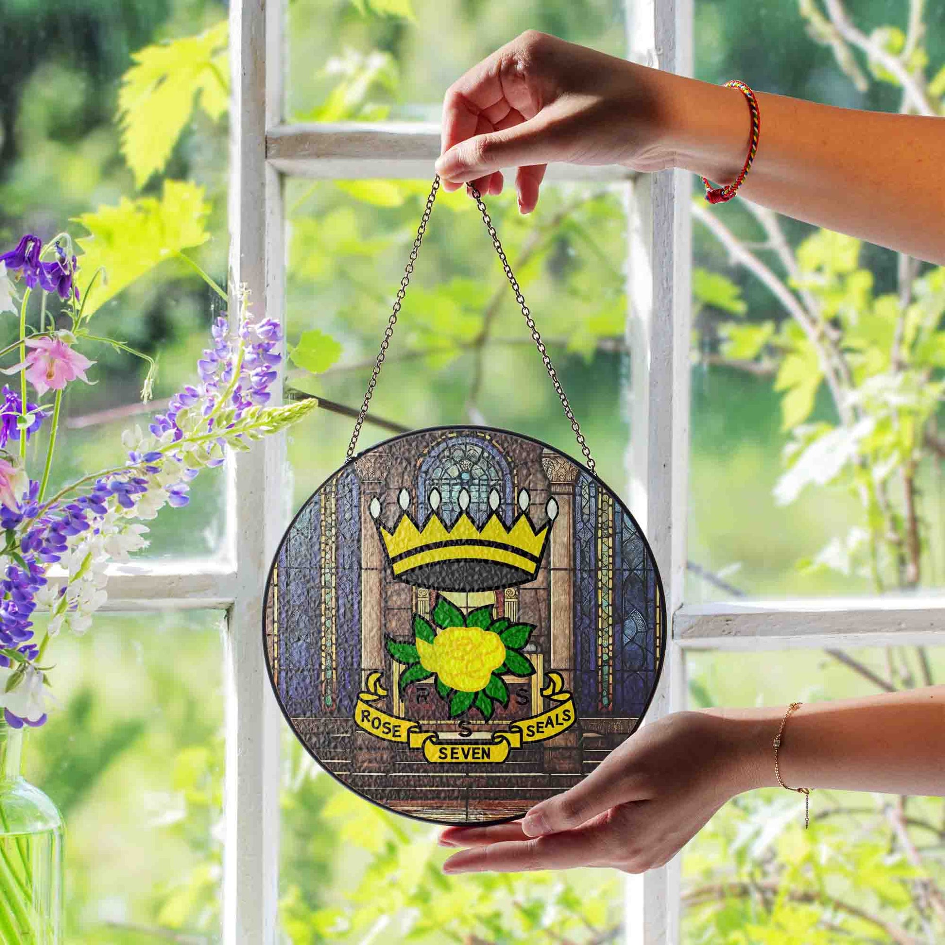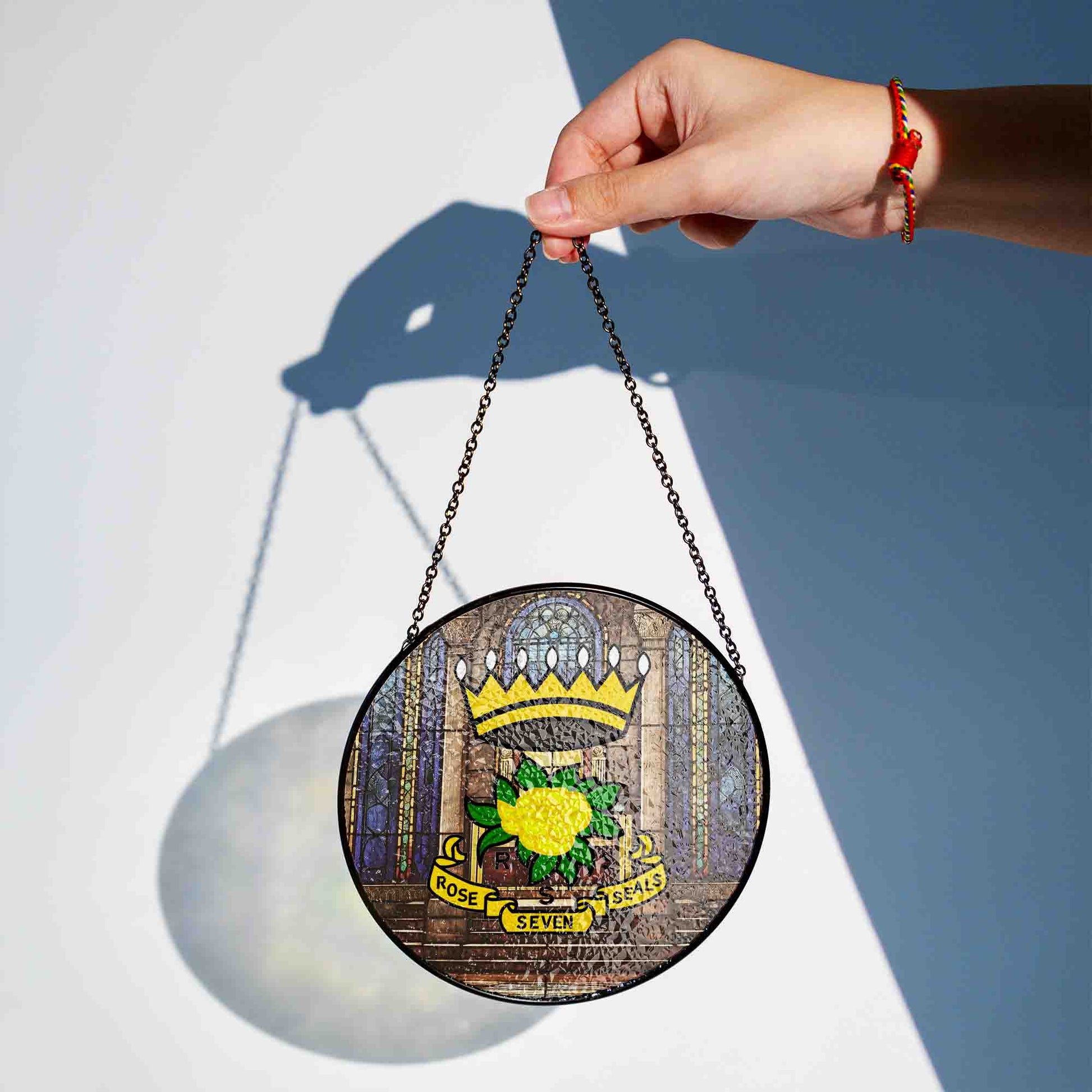 Rose of Seven Seals Throne Room Masonic Glass Suncatcher