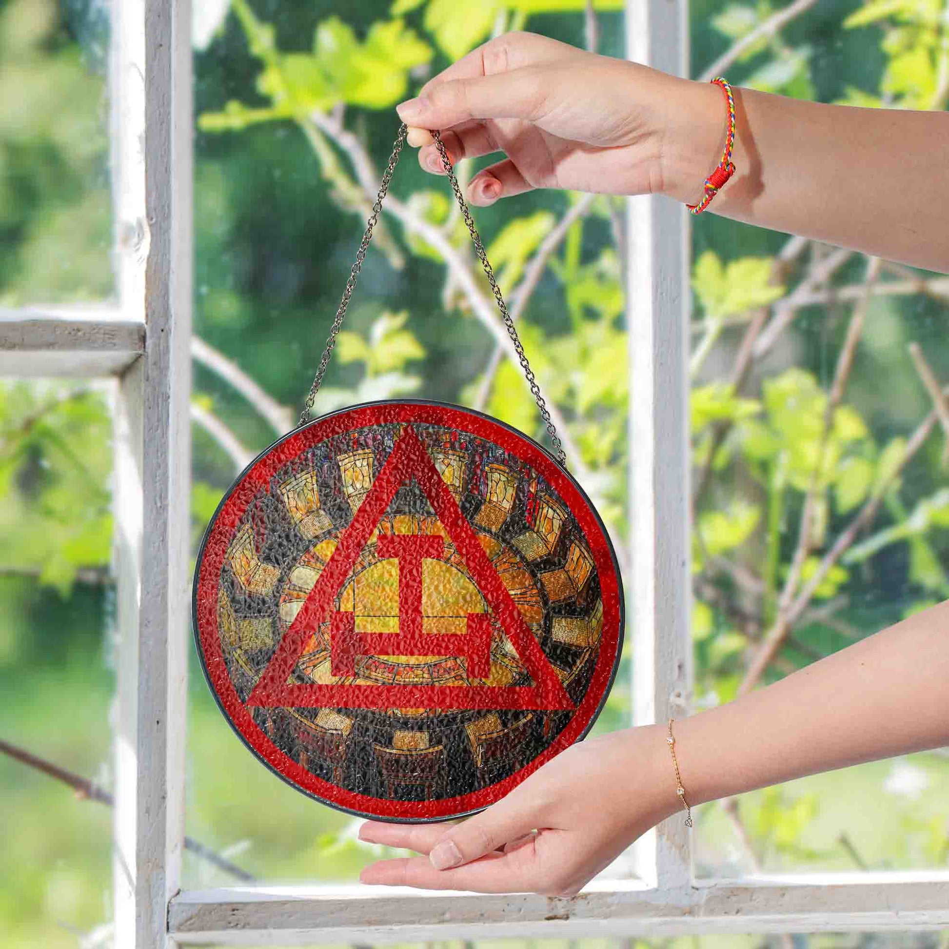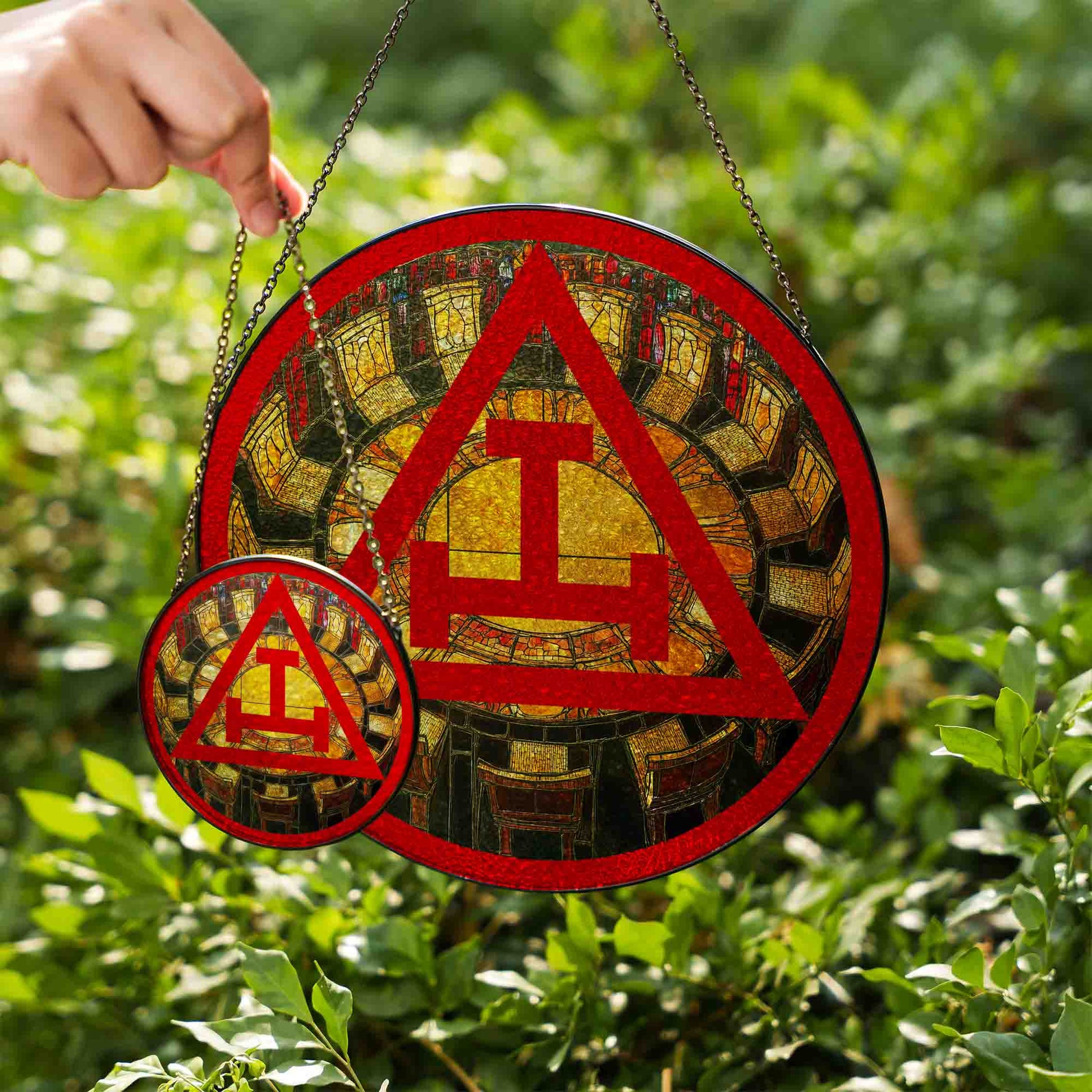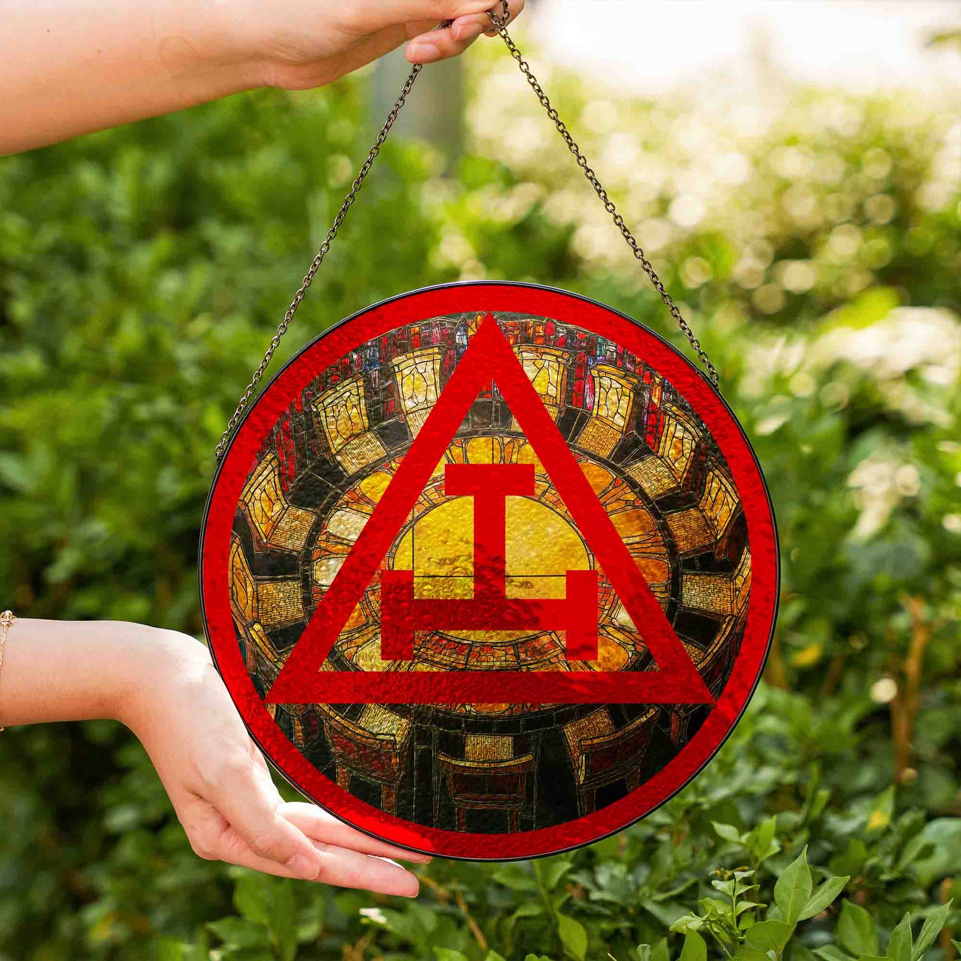 Royal Arch Round Table Red Yellow Masonic Stained Glass Gift