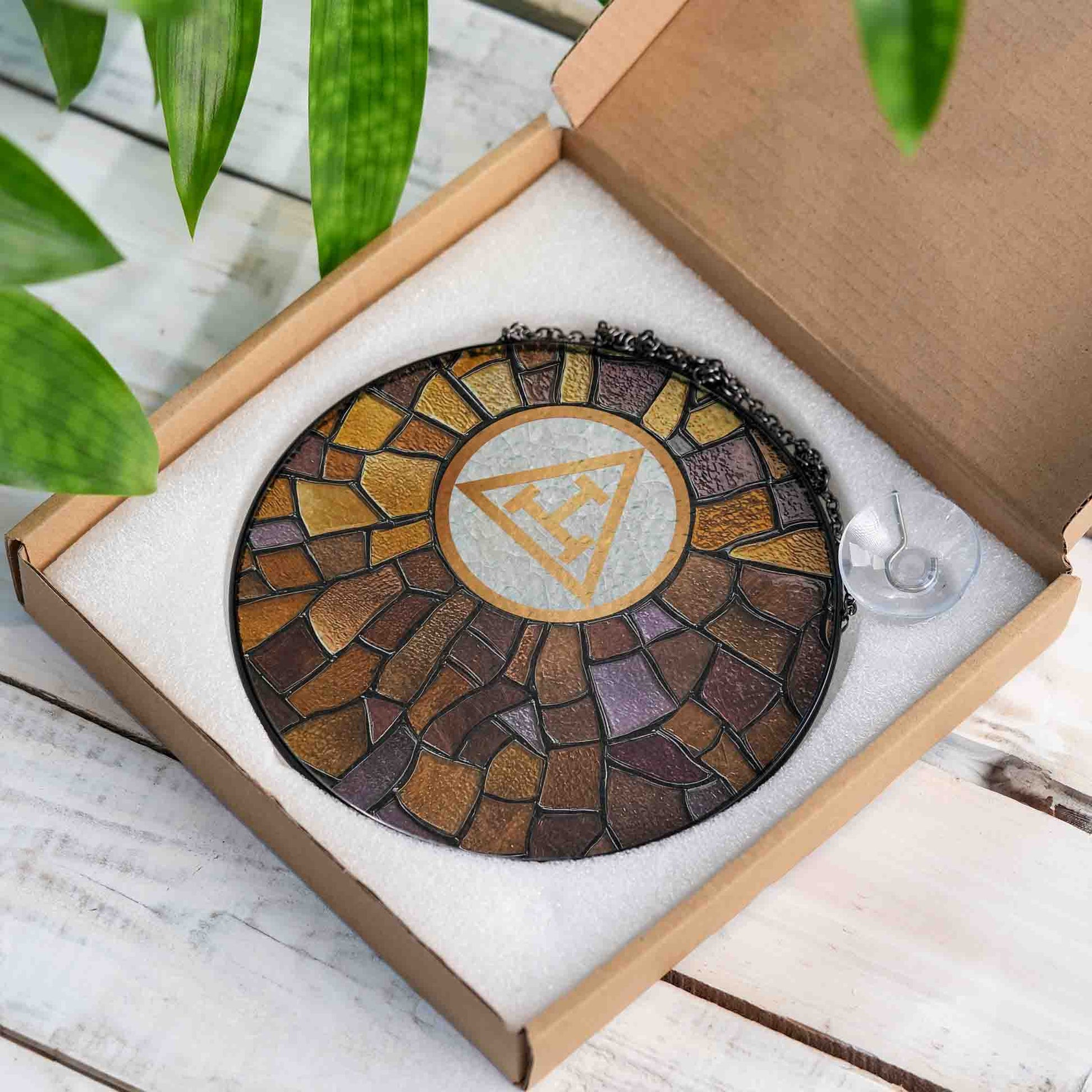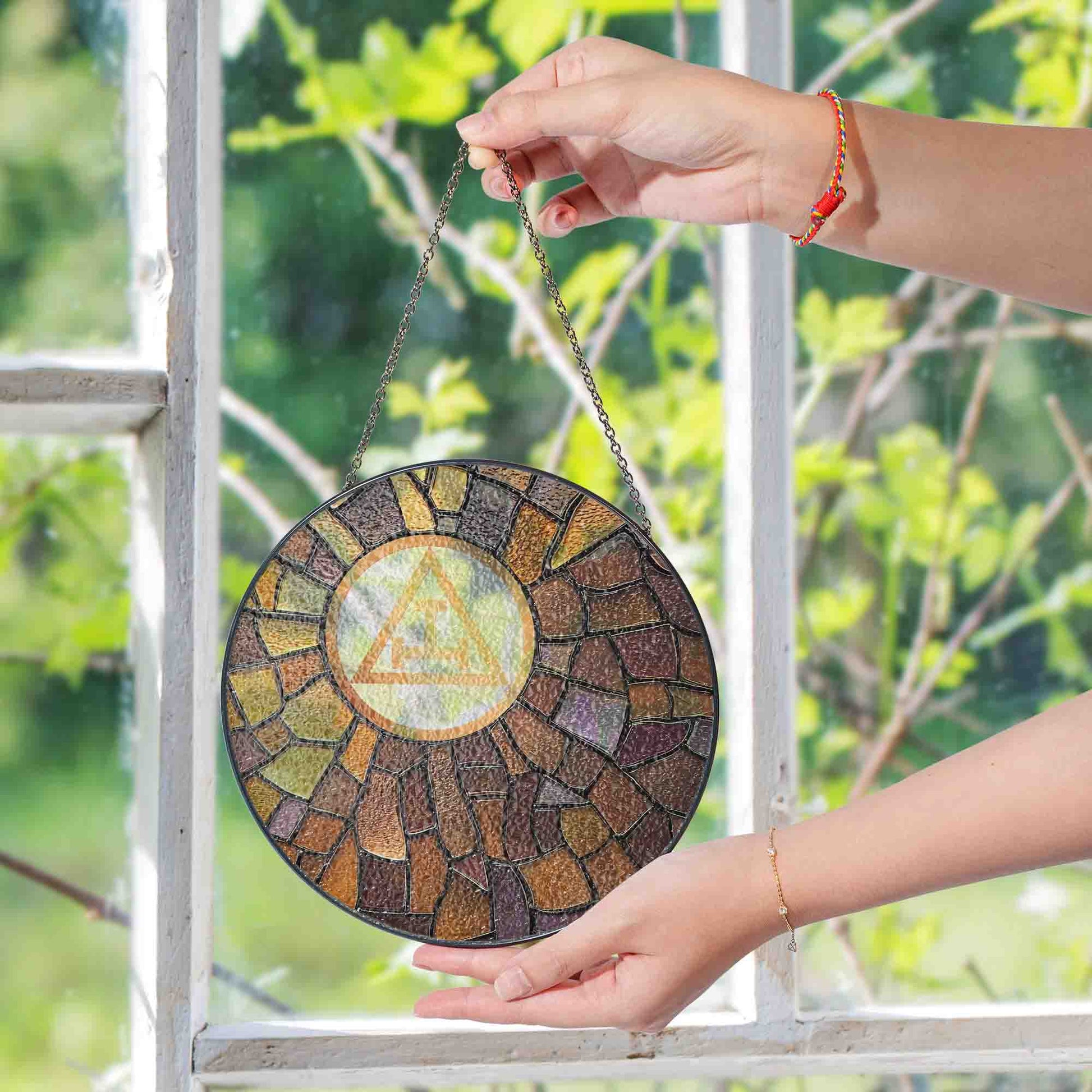 Royal Arch Symbol Burrowed Ground Brown Masonic Stained Glass