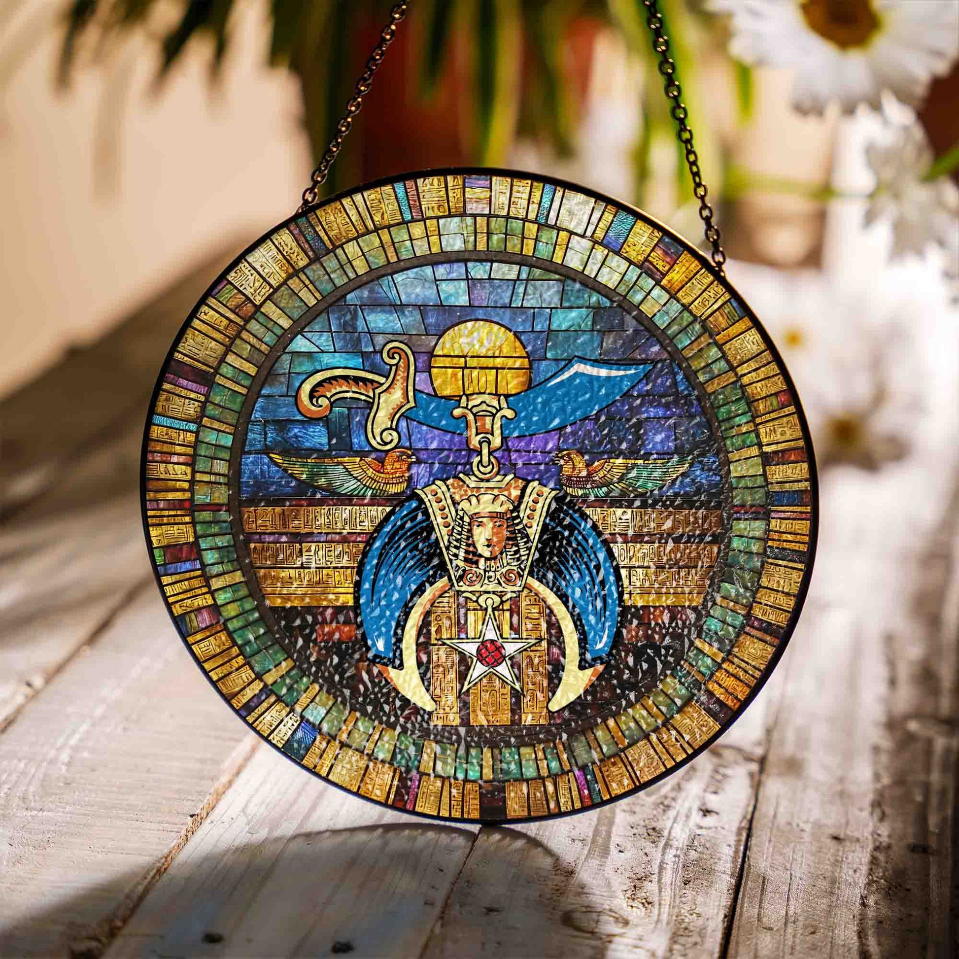 Shriners Symbol Egyptian Sun Altar Colorful Stained Glass Suncatcher