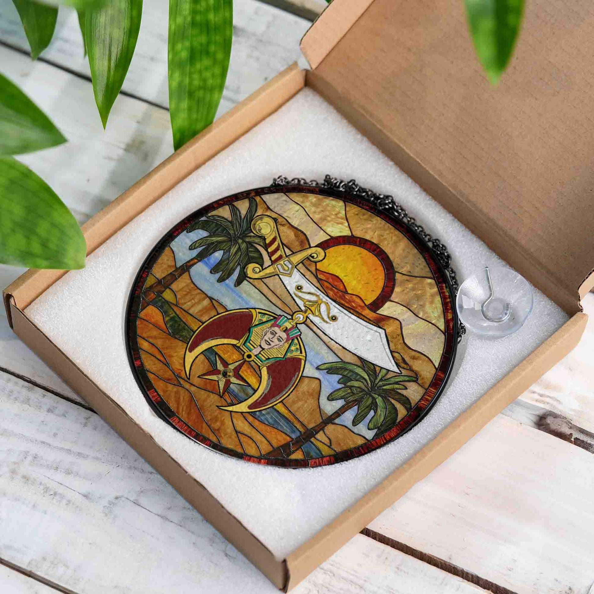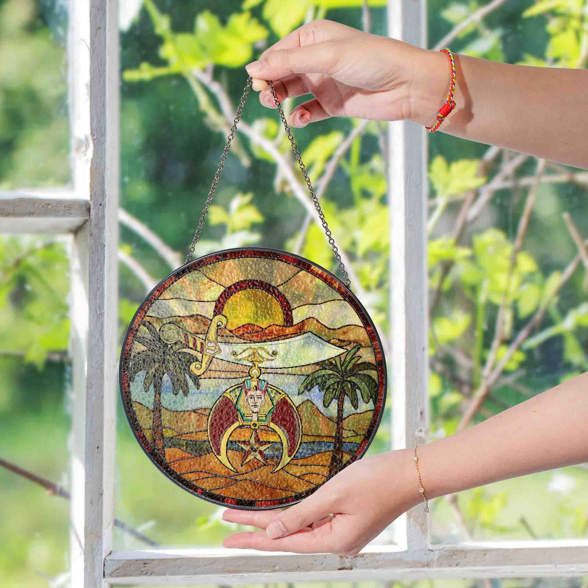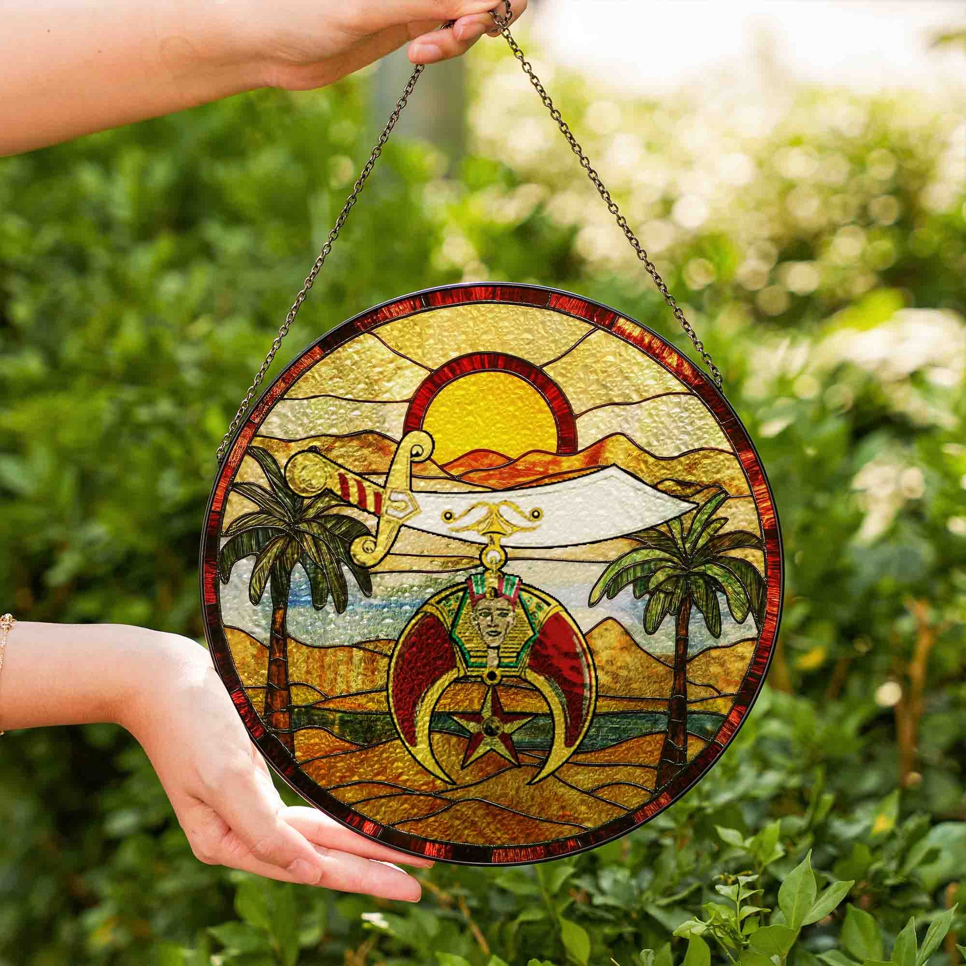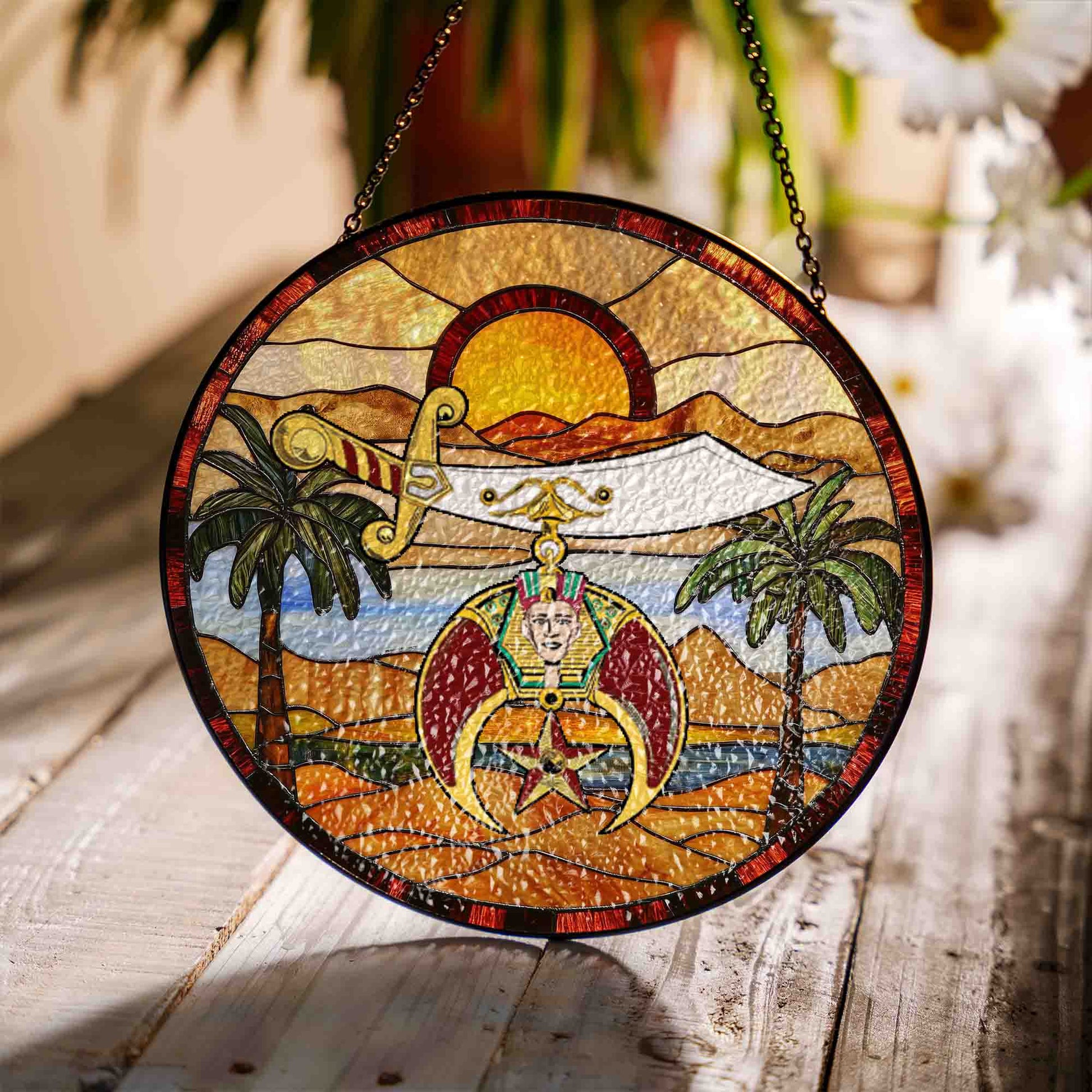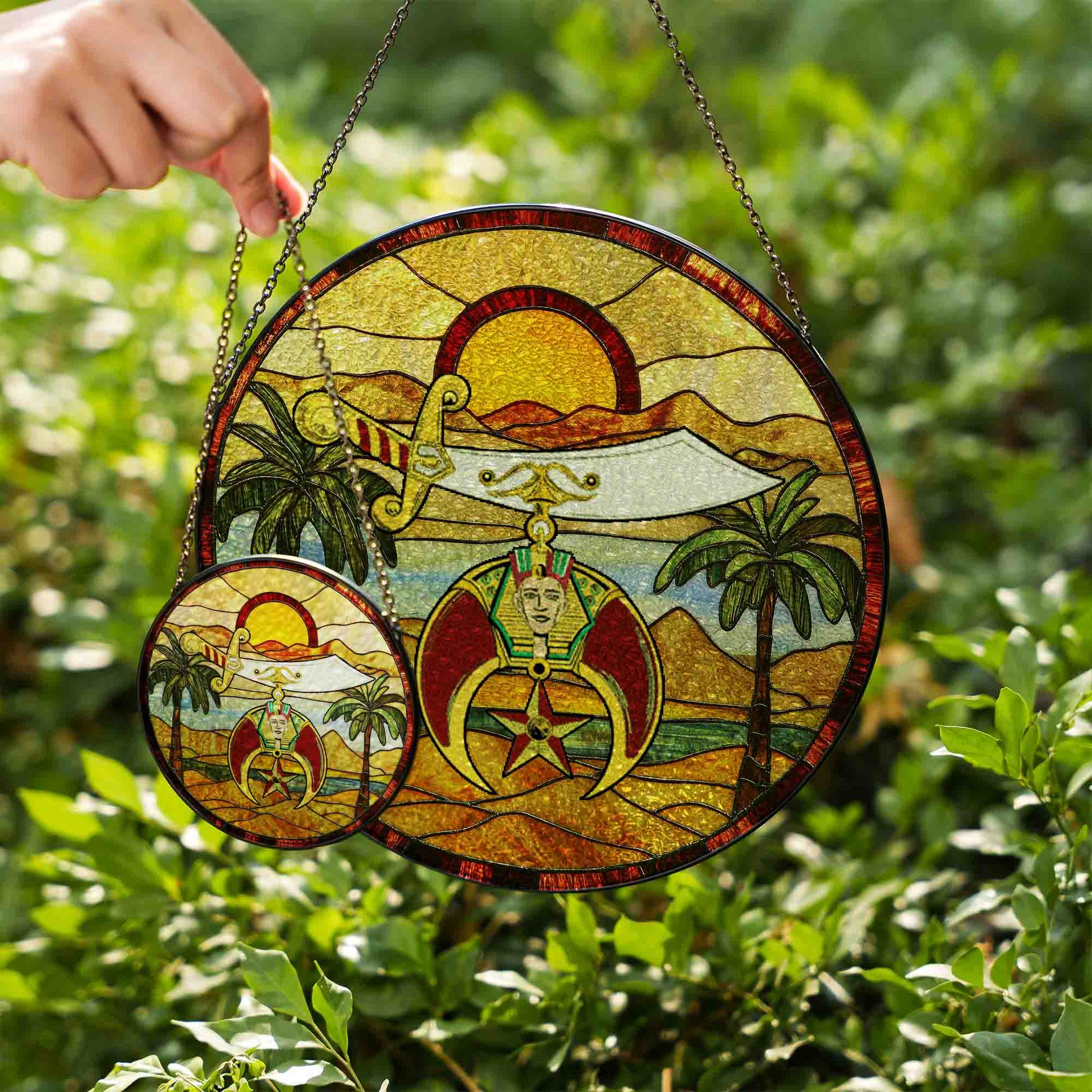Shriners Symbol Sun Desert Oasis Warm Tones Stained Glass Suncatcher