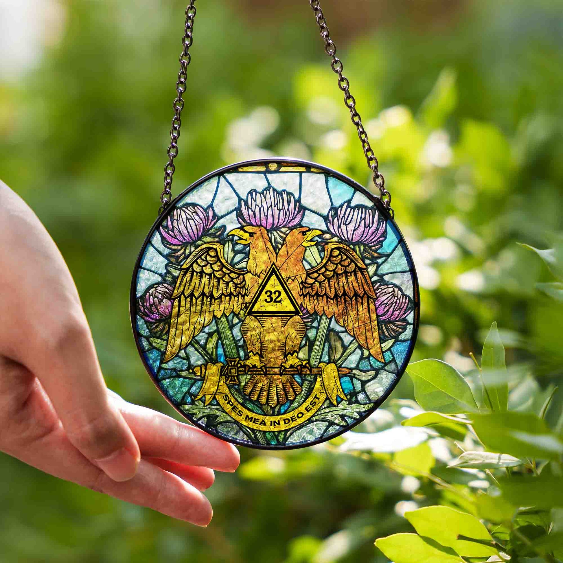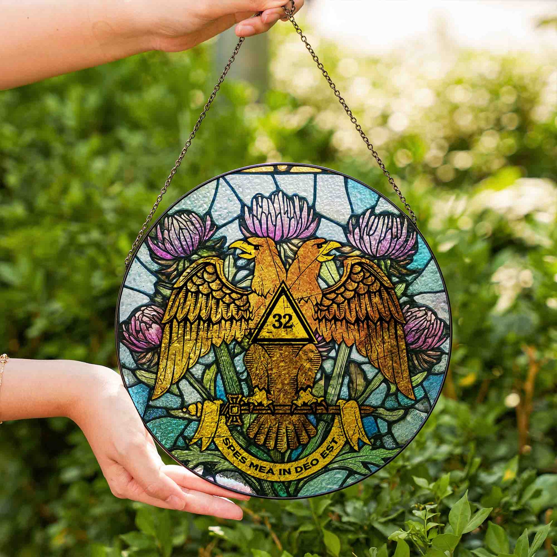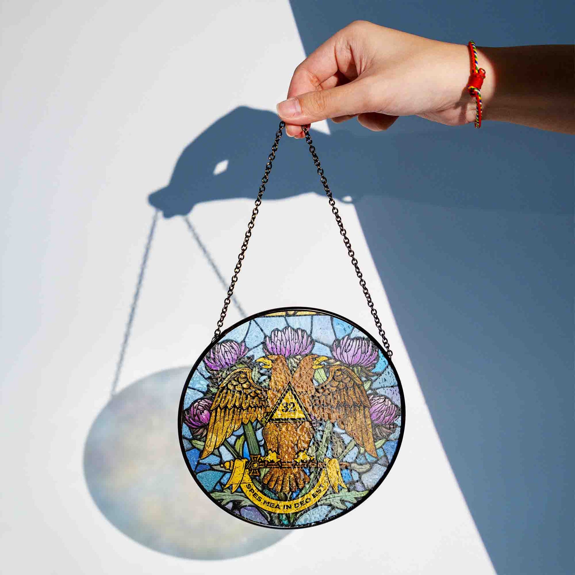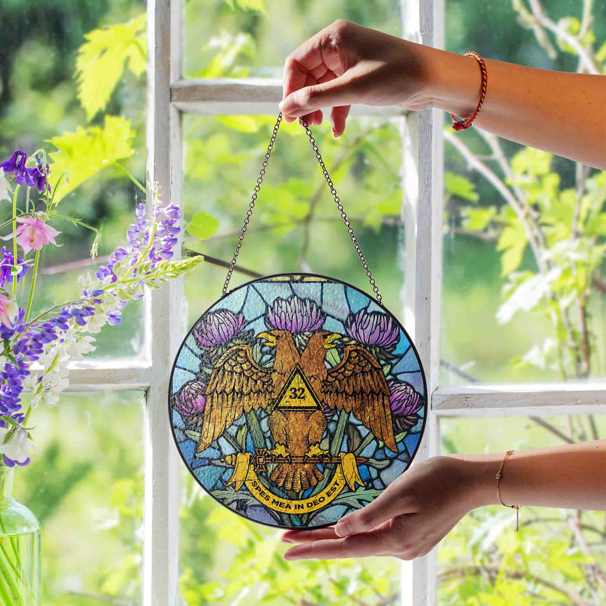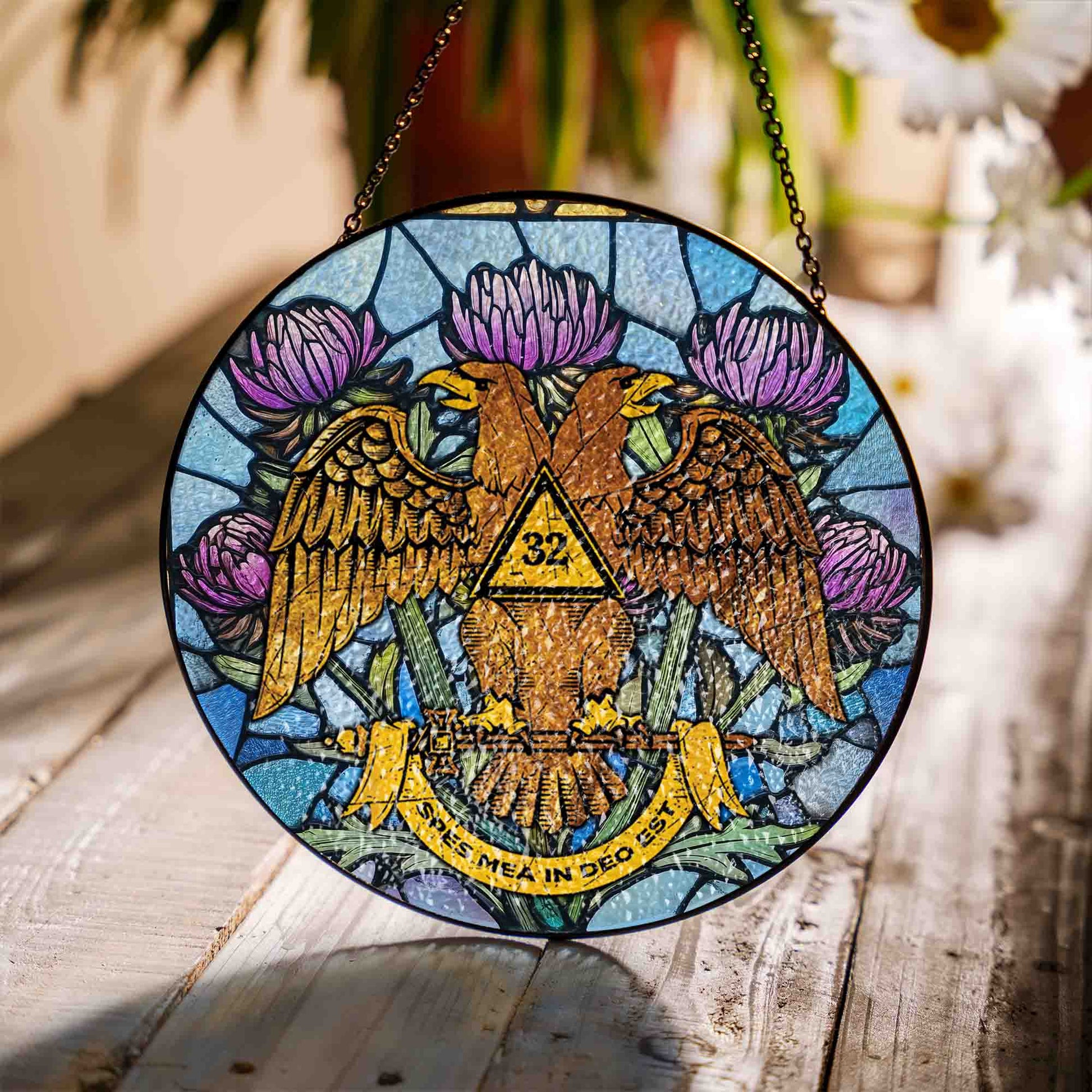 Thistle Wings Down Scottish Rite 32nd Masonic Glass Suncatcher