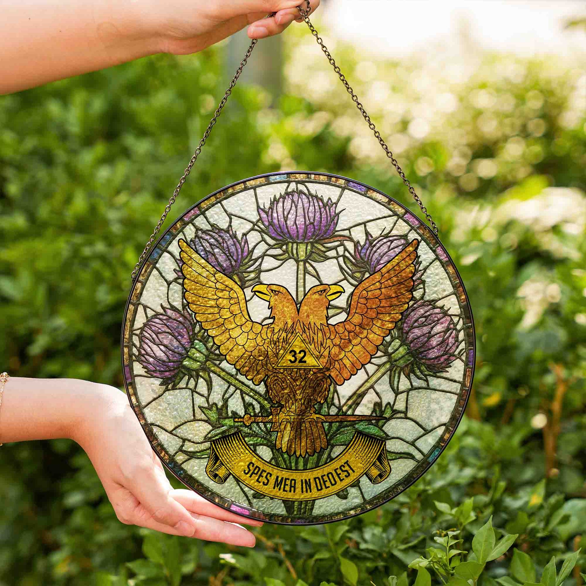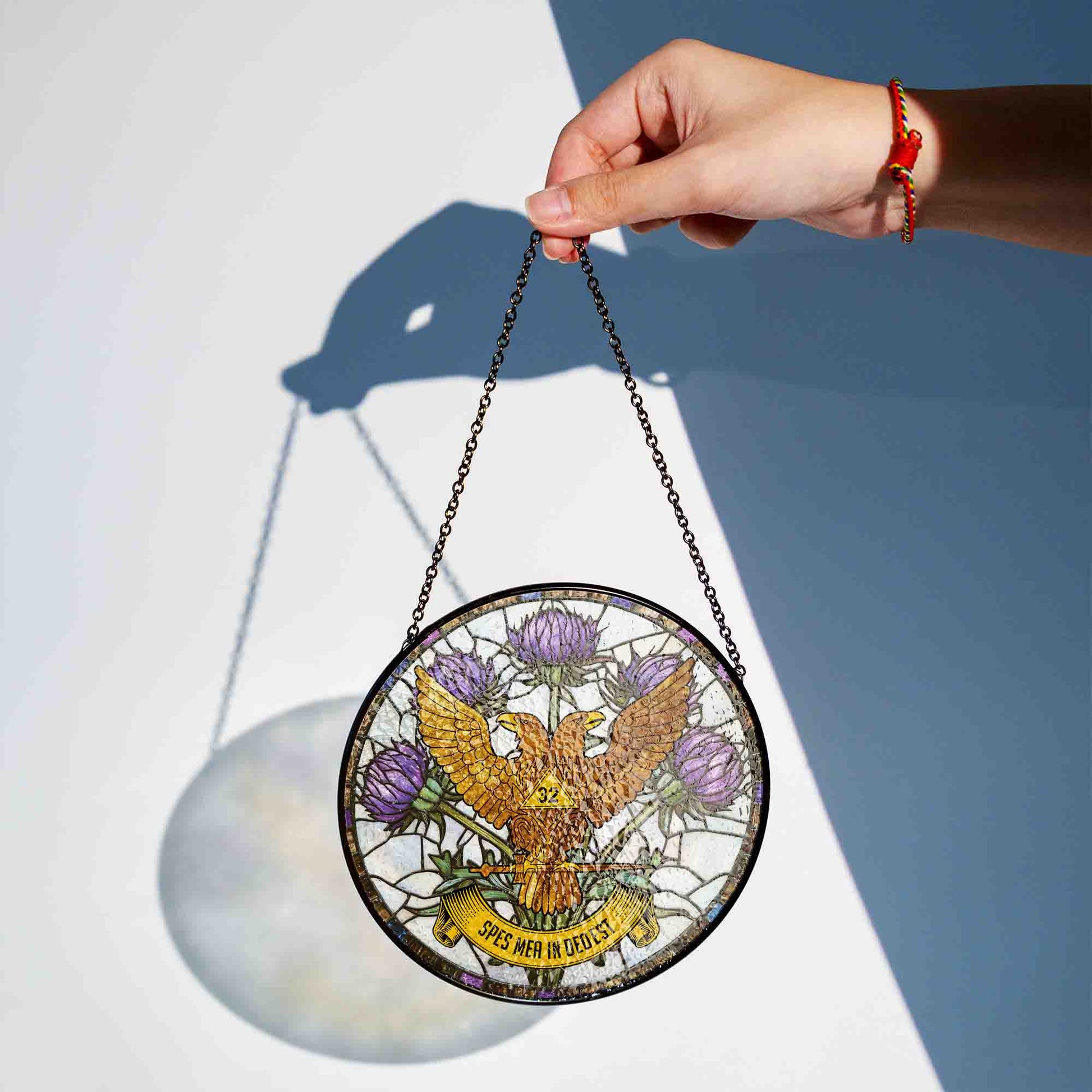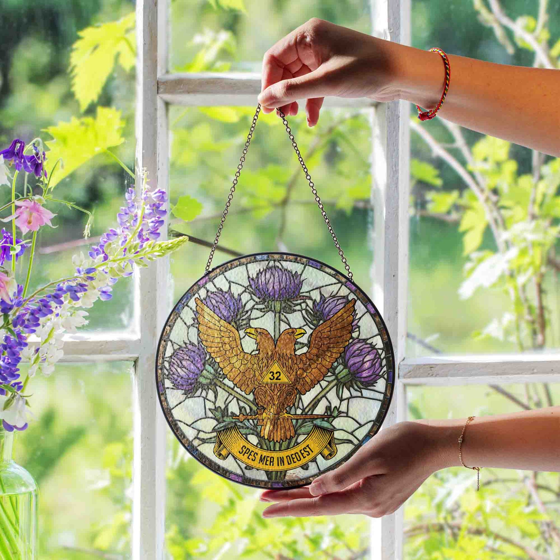 Thistle Wings Up Scottish Rite 32nd Masonic Glass Suncatcher