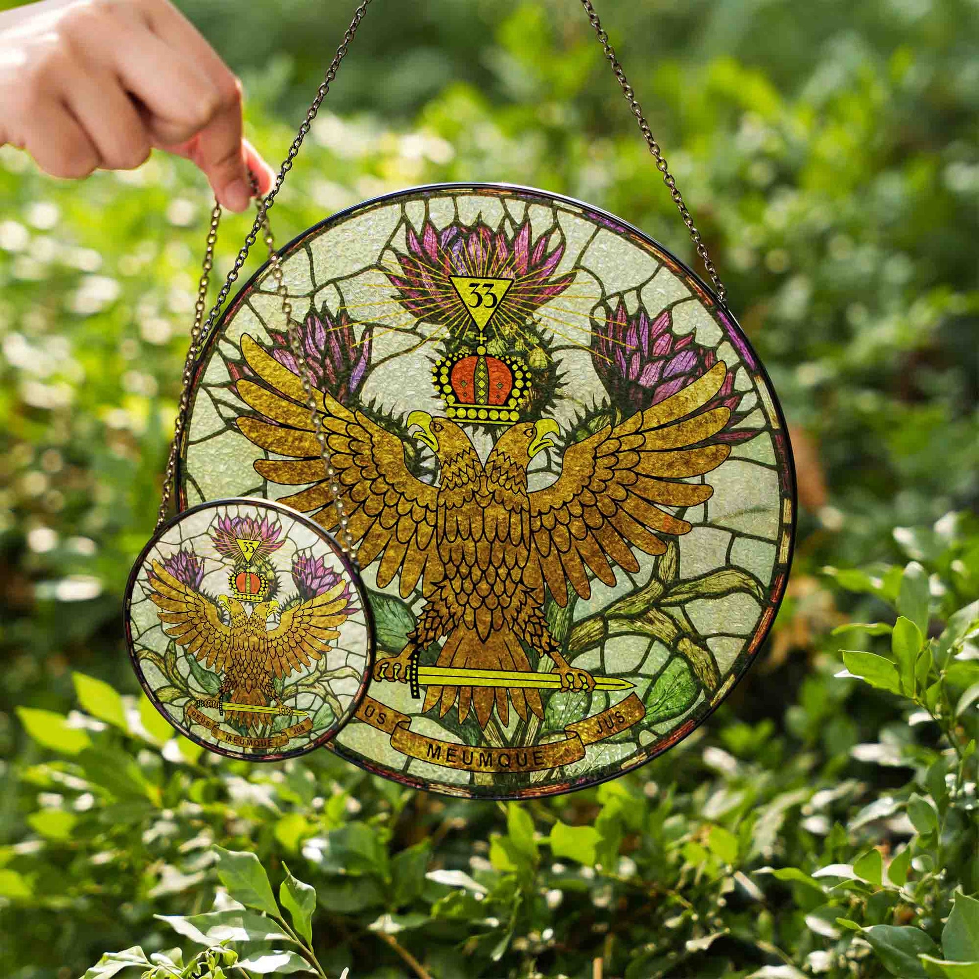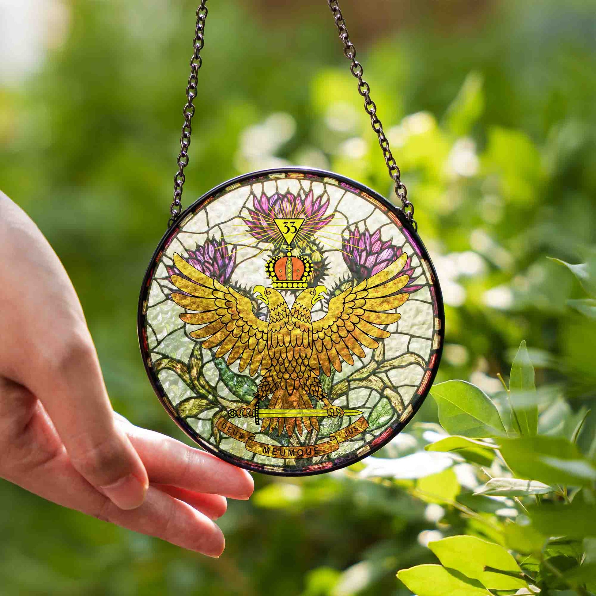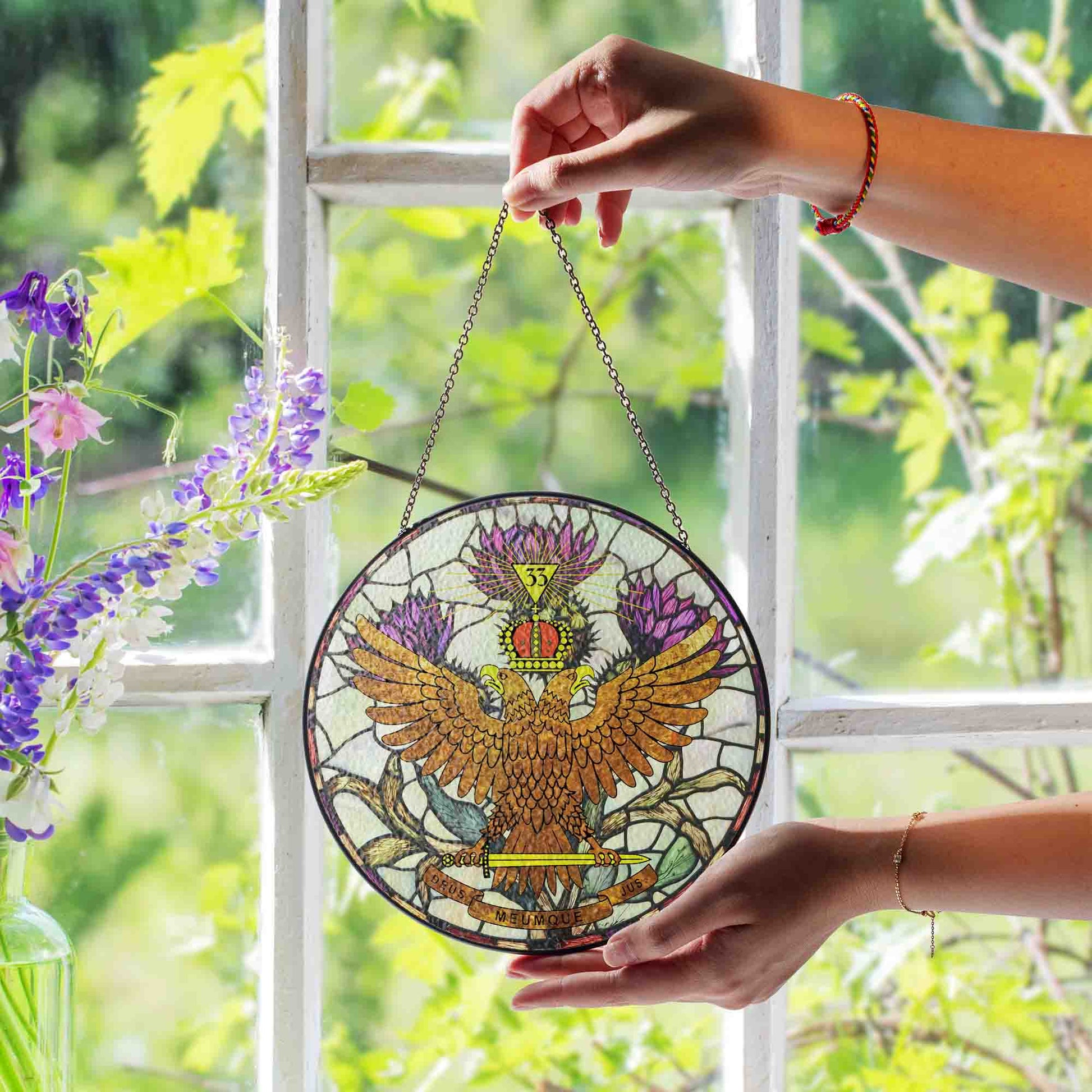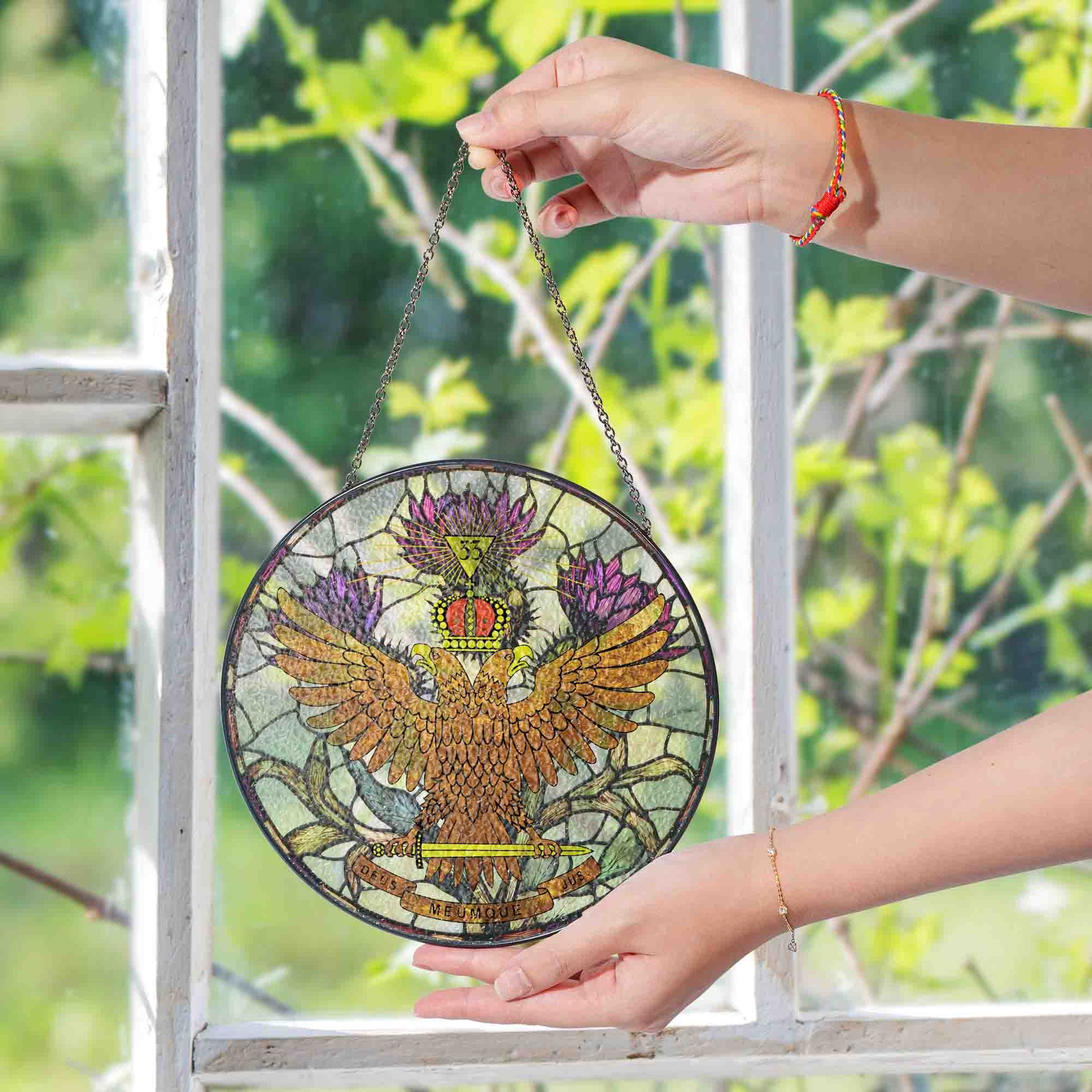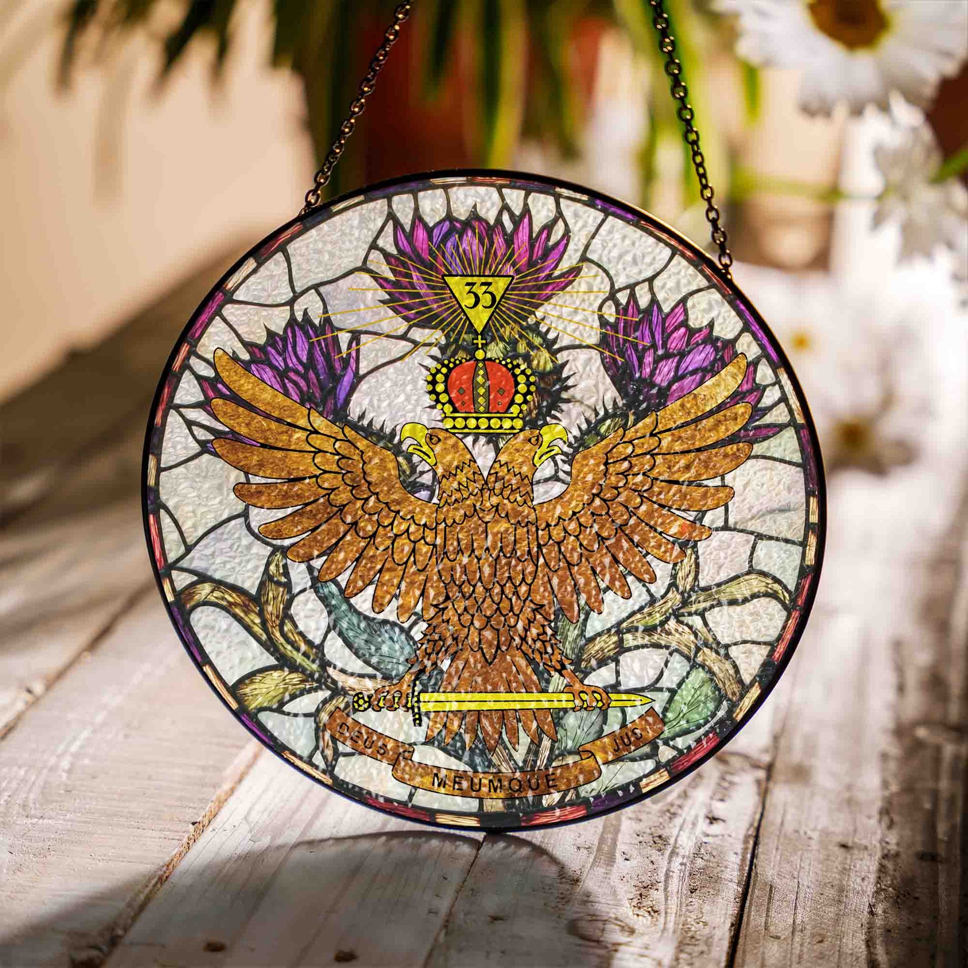 Thistle Wings Up Scottish Rite 33rd Masonic Glass Suncatcher